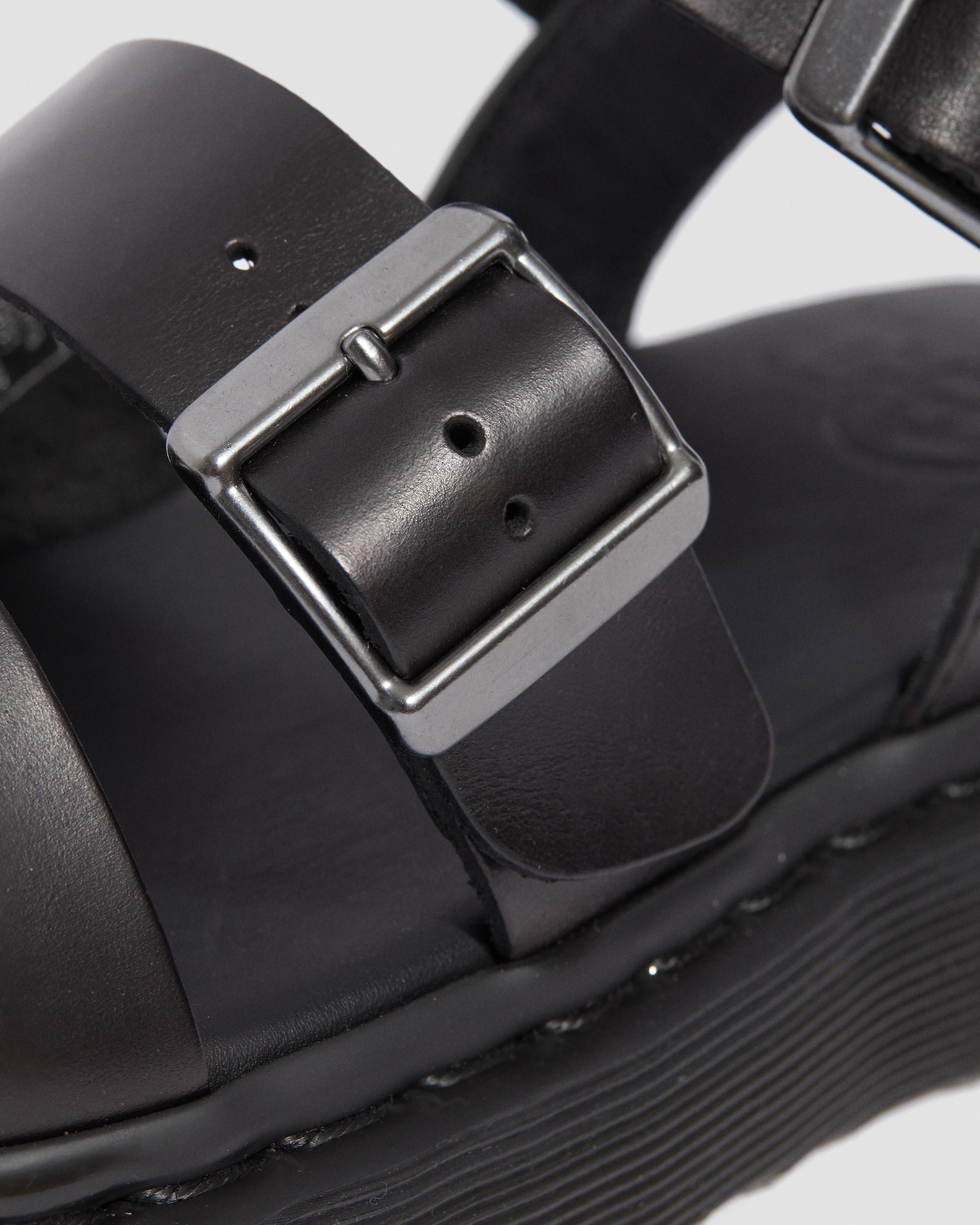 Reinventing the Open AirWair sandal from our archives, we created this bold, gladiator-inspired entry to our Shore collection. Featuring wide straps, two buckles for a perfect fit, silver stud rivets and our signature heel tab, it approaches warm weather dressing with a definite Dr. Martens attitude. Adjustable buckle fastening Built on our iconic air-cushioned sole Tons of Doc's DNA, like grooved edges, visible stitching and heel-loop Material Brando is a full-grain, waxy leather that is tough and durable, developing a worn-in vintage look over time. Care Instructions Wipe away dirt using a damp cloth. Apply Dr. Martens Wonder Balsam to the outside of your footwear to keep the leather supple, strong and smooth. Once dry, buff vigorously to desired shine using a clean Dr. Martens Shoe Brush . Repeat regularly to prolong the life of your footwear. Construction Goodyear Welted - the upper and sole are heat-sealed and sewn together, providing more comfort and durability for years to come. Product code 15695001 Men's Sandals