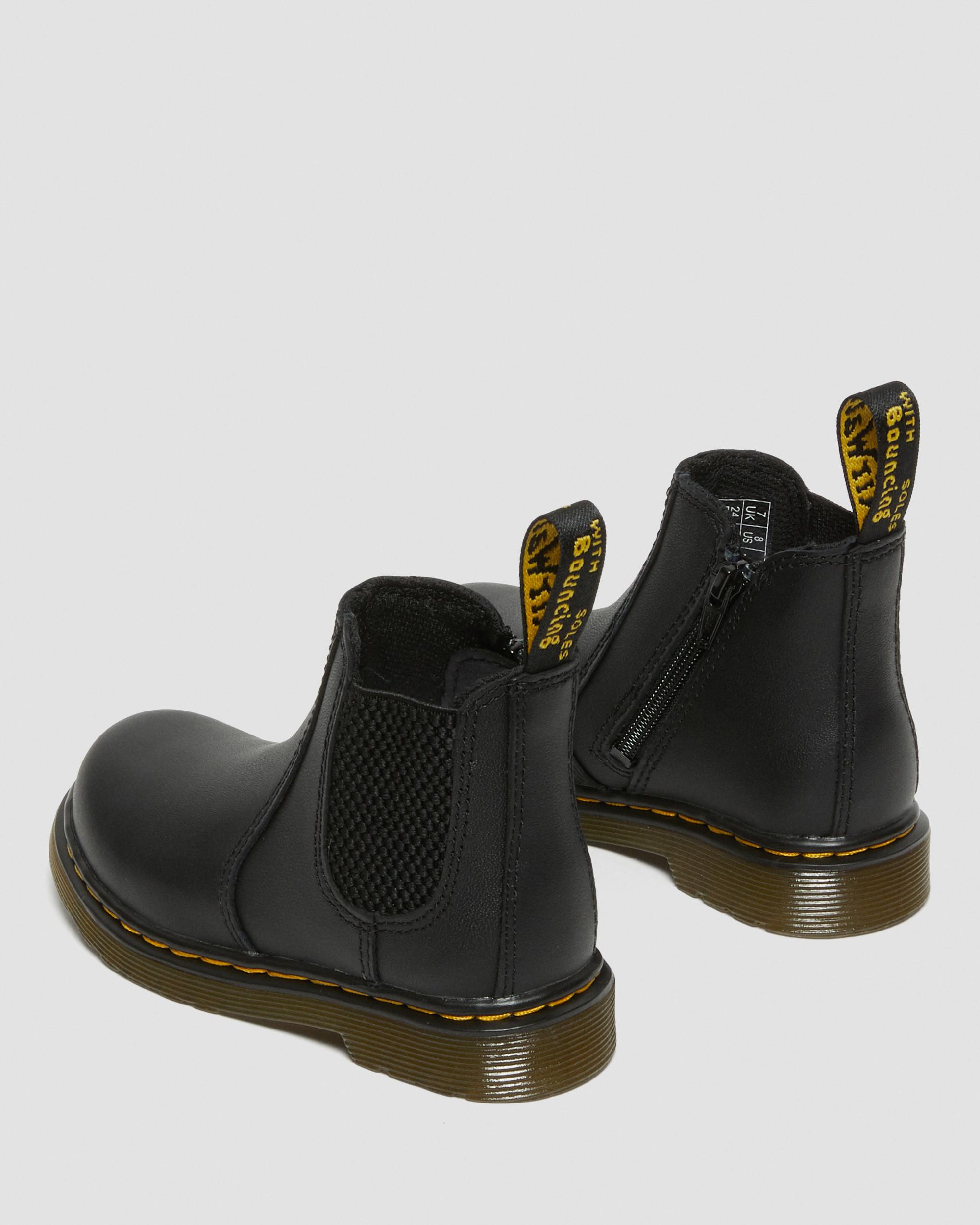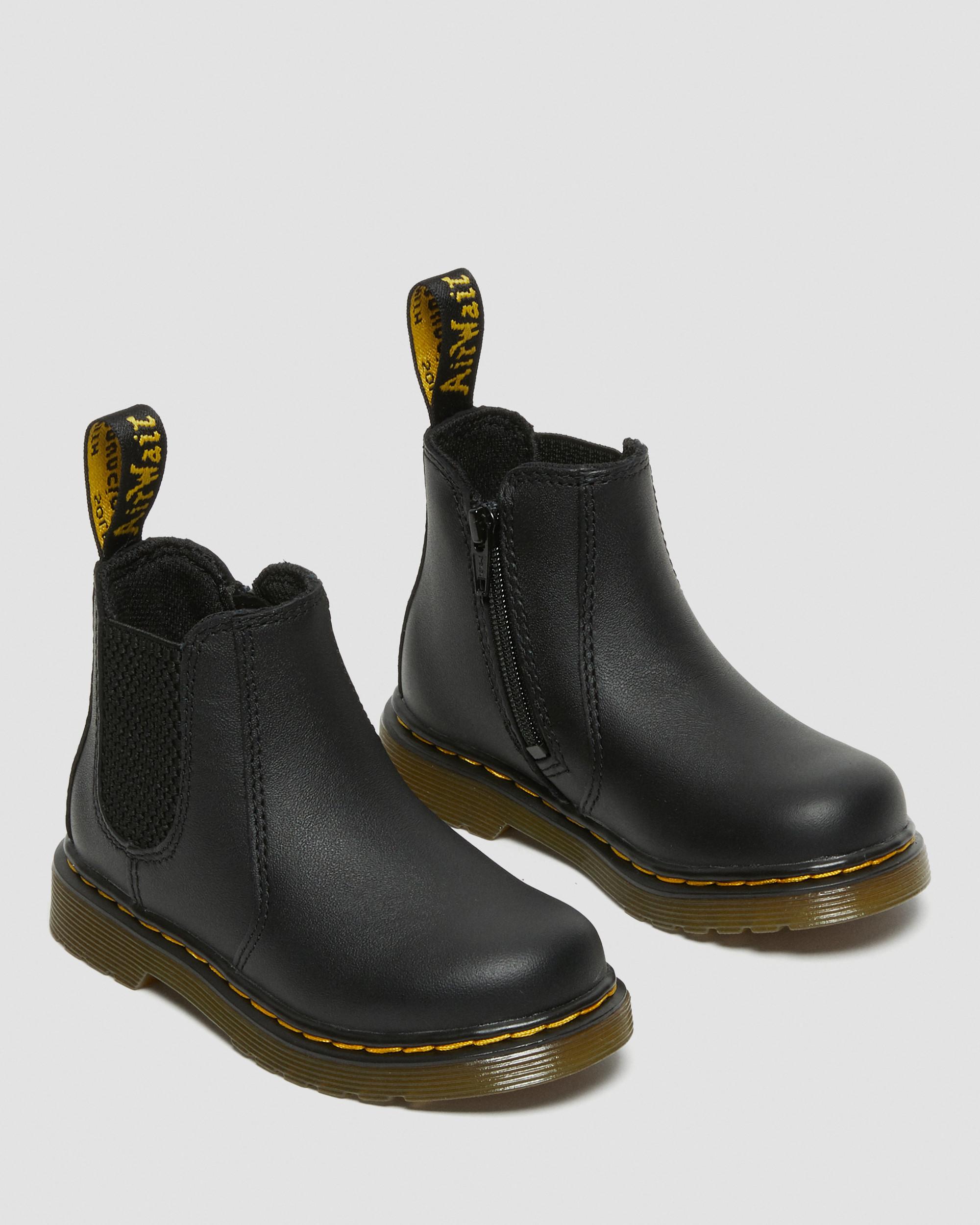 The toddler-sized 2976 Chelsea boot is a Docs classic made miniature — crafted in lightweight yet durable full-grain leather, with a soft feel. Great school style Air-cushioned sole is hard-wearing with good slip resistance Elastic gussets and inner ankle zip for easy-on, easy-off access Cushioned sock liner for extra comfort Retains classic Docs DNA, like grooved edges, yellow stitching, and heel-loop Material A lightweight, full-grain leather, with a soft feel. Care Instructions Wipe away dirt using a damp cloth. Apply a neutral or correct colored wax based shoe polish. Buff with a Dr. Martens Shoe Brush to restore shine as desired. " Construction Cemented - the sole is cemented to the upper, a durable and flexible construction for all day comfort. Product code 16704001 Baby & Infant Boots & Shoes