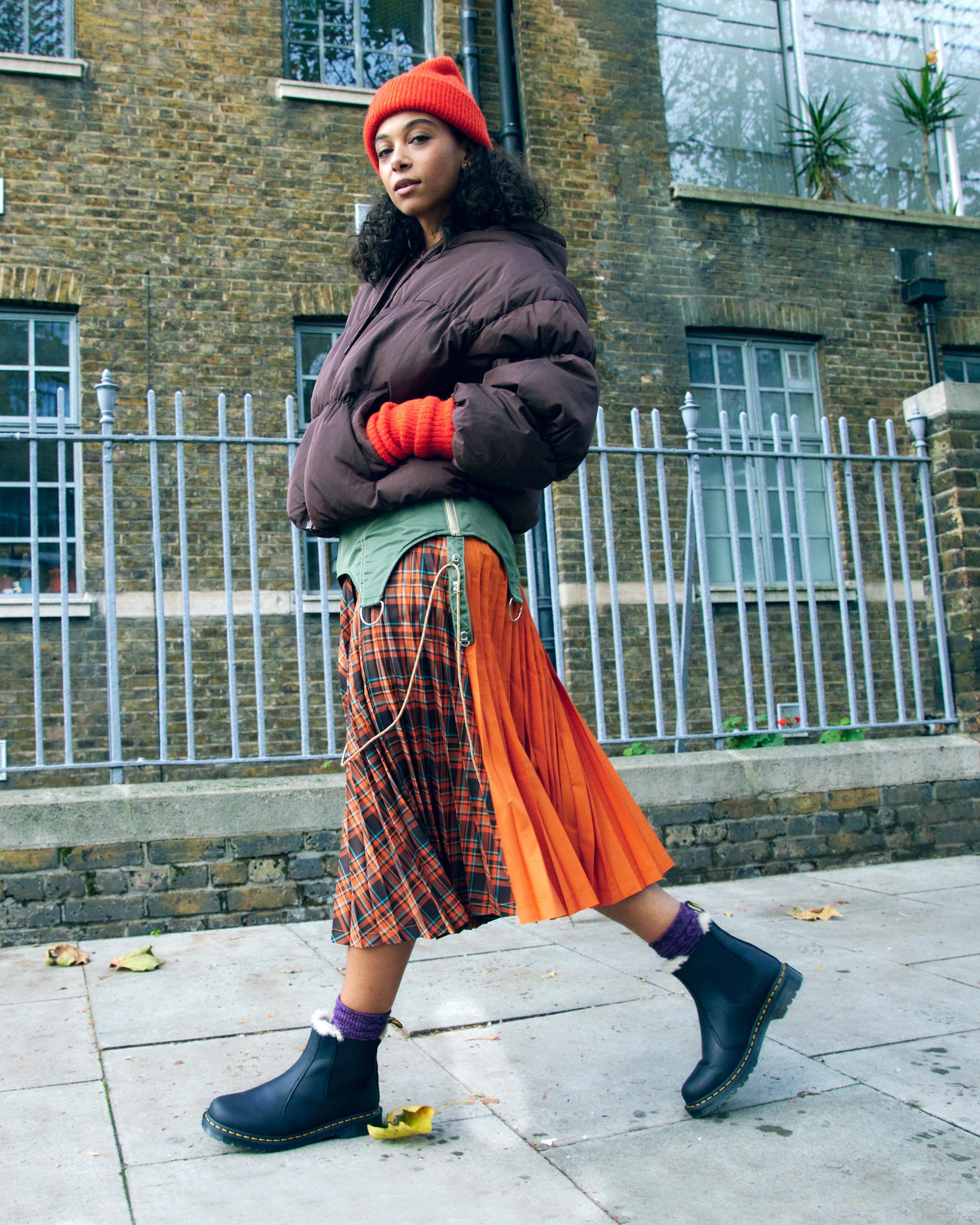 The Leonore Chelsea boot combines the androgynous elements of the style with a slender, feminine silhouette. In other words? An uncompromisingly fashion-forward look and feel. Then, we winterized it, lining it in soft, artificial white fur. Lined with soft faux fur Made with classic Doc's DNA, including grooved edges, visible stitching and heel-loop Built on the iconic Dr. Martens air-cushioned sole, which is oil and fat resistant with good abrasion and slip resistance Material Leather with a subtle grain feature and and oily surface - burnished to darken toe and counters of shoes. Care Instructions Wipe away dirt using a damp cloth. Apply Dr. Martens Wonder Balsam to the outside of your footwear to keep the leather supple, strong and smooth. Once dry, buff vigorously to desired shine using a clean Dr. Martens Shoe Brush . Repeat regularly to prolong the life of your footwear. Construction This is a Goodyear-welted product. The upper and sole are heat-sealed and sewn together, not merely glued like many footwear constructions. Product code 21045001 Women's Chelsea Boots