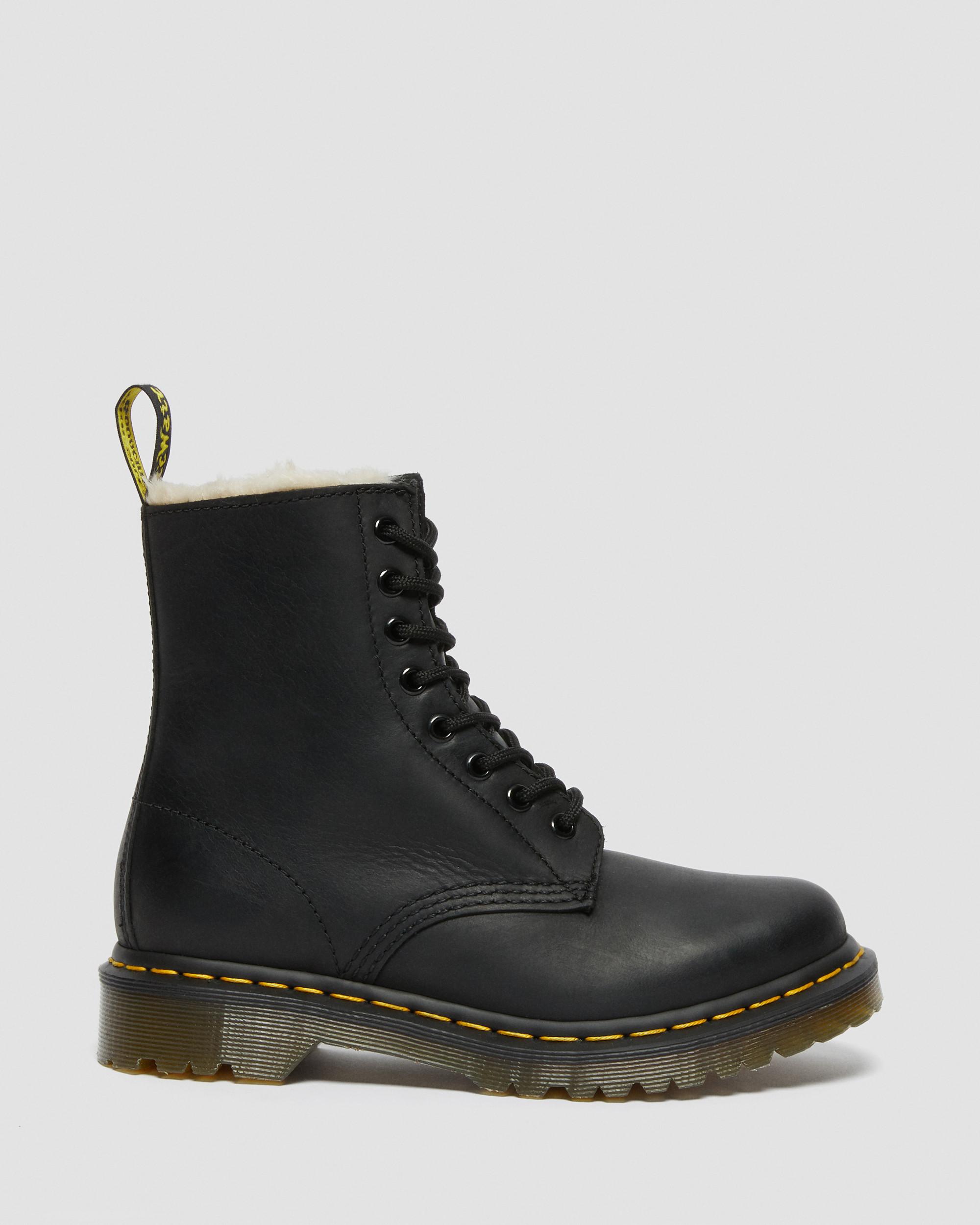 This is a winter twist on the classic Dr. Martens 8-eye boot, with an extra-tough sole with chunky grooves for solid footing — and comes lined with soft, rich artificial white fur. Winter never saw it coming. Lined with faux fur Made with classic Doc's DNA, including grooved edges, visible stitching and heel-loop Built on the iconic Dr. Martens air-cushioned sole, which is oil and fat resistant with good abrasion and slip resistance Material Leather with a subtle grain feature and and oily surface - burnished to darken toe and counters of shoes. Care Instructions Wipe away dirt using a damp cloth. Apply Dr. Martens Wonder Balsam to the outside of your footwear to keep the leather supple, strong and smooth. Once dry, buff vigorously to desired shine using a clean Dr. Martens Shoe Brush . Repeat regularly to prolong the life of your footwear. Product code 21797001 Gifts For All