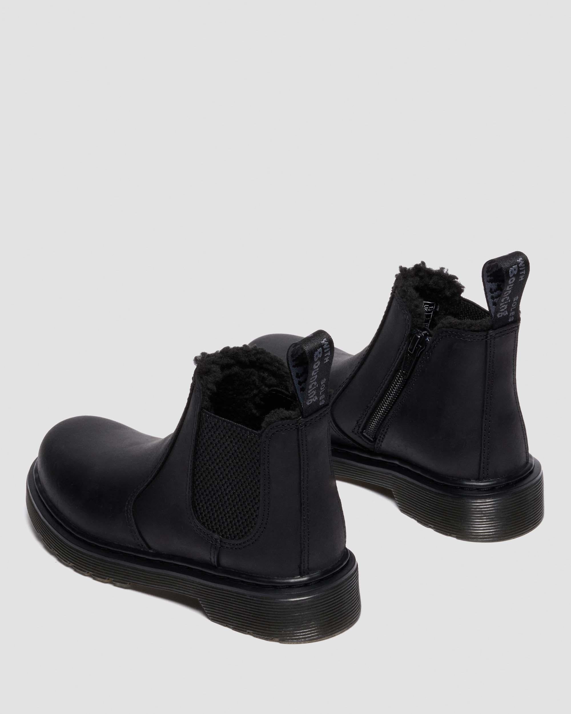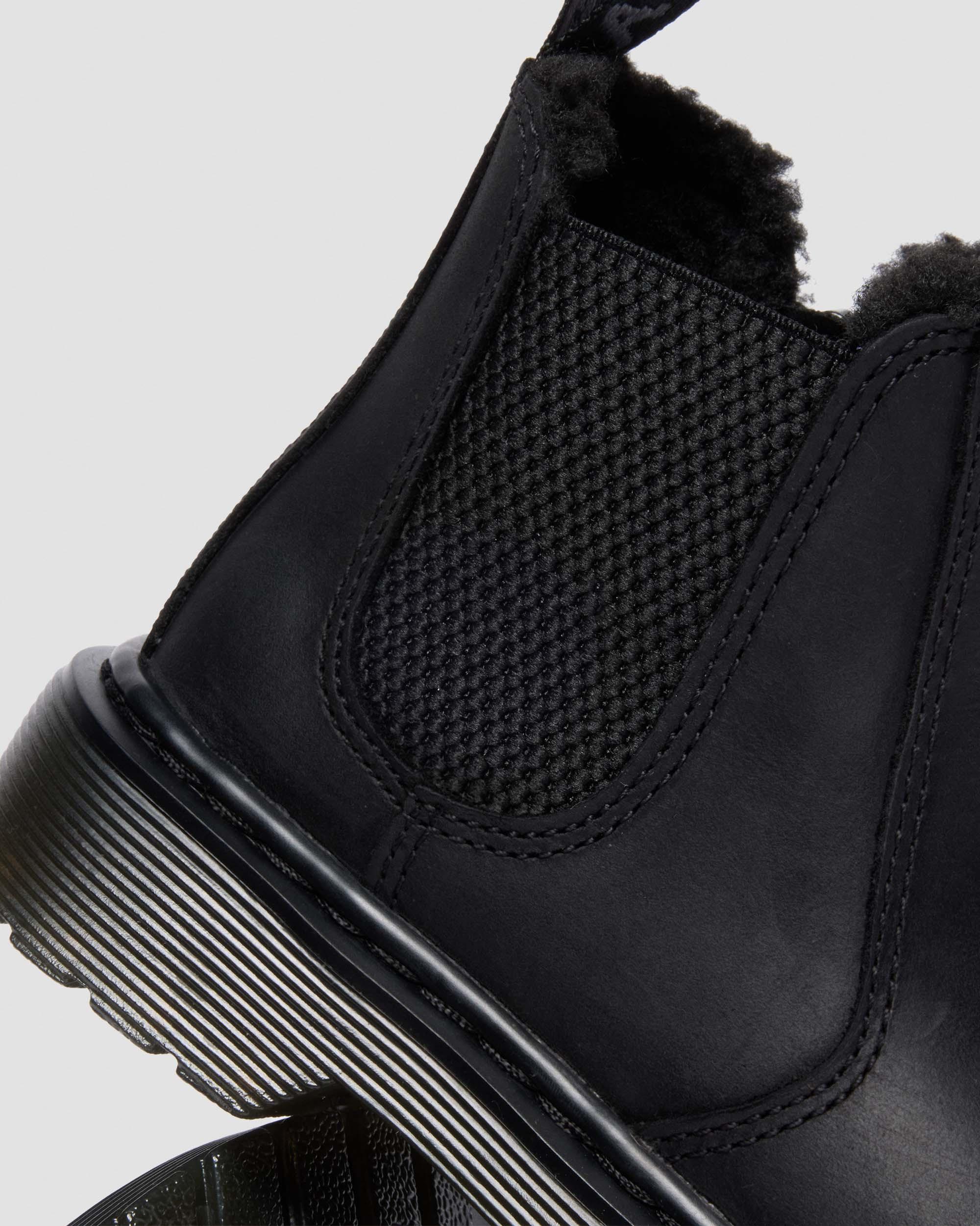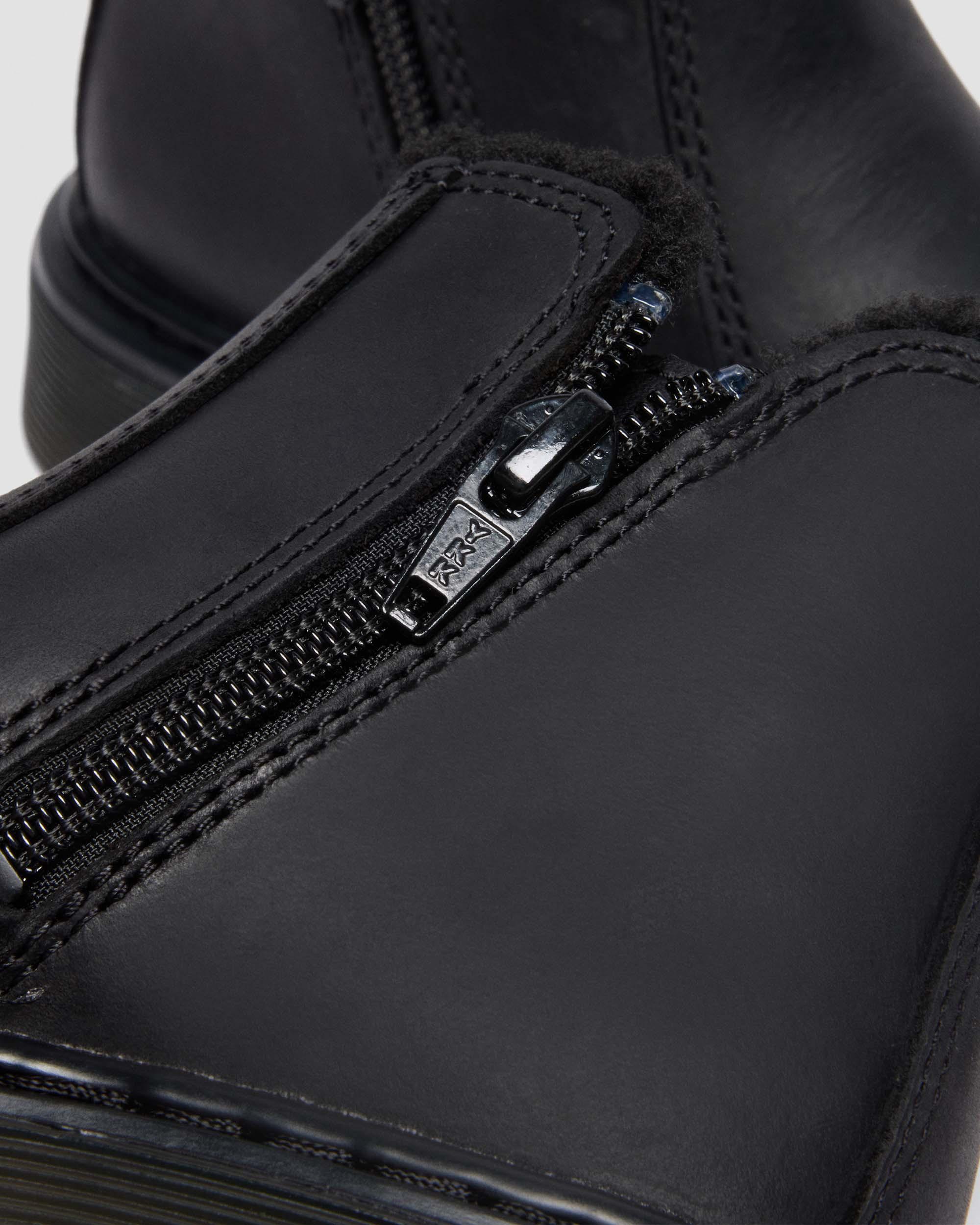 WarmWair, in upcoming rebel sizes. Made to keep little feet dry and comfortable, these boots are built from a waxy, water-repellent leather and lined with Sherpa faux fur. With black welt stitching, a smoke colored sole and a black charcoal heel loop, the monochrome boots are ready for whatever your little rebel throws at them. Warm, hardwearing and winter-proof: WarmWair is soft, insulated lining crafted from carefully selected materials The 2976 is the rugged Docs take on the classic Chelsea boot. Manufactured since the 70s Republic WP is a textured leather with waxy, oily finish and medium pull-up effect. Care with Dr. Martens Wonder Balsam Flexible cemented sole construction for growing feet Care Instructions Wipe away dirt using a damp cloth. We do not recommend the use of leather cleaners, as it could damage the finish. Construction Cemented - the sole is cemented to the upper, a durable and flexible construction for all day comfort. Product code 26042001 Junior Boots, Shoes & Sandals