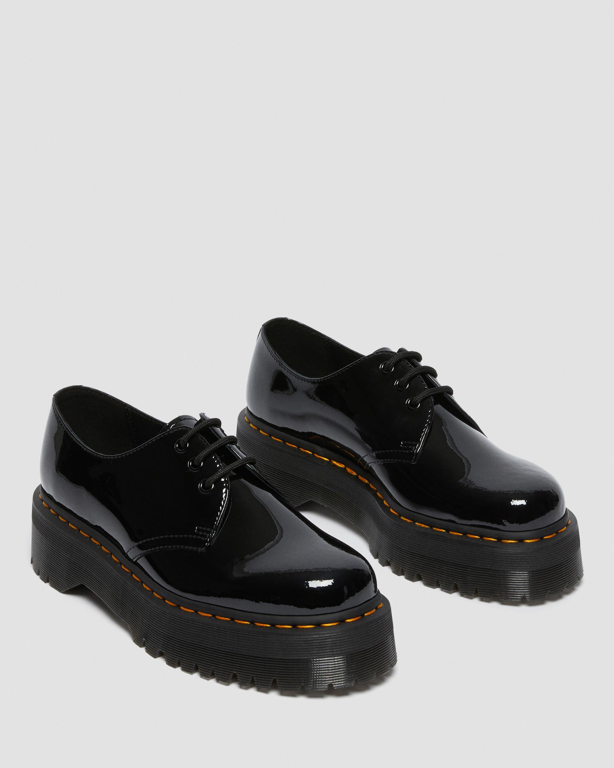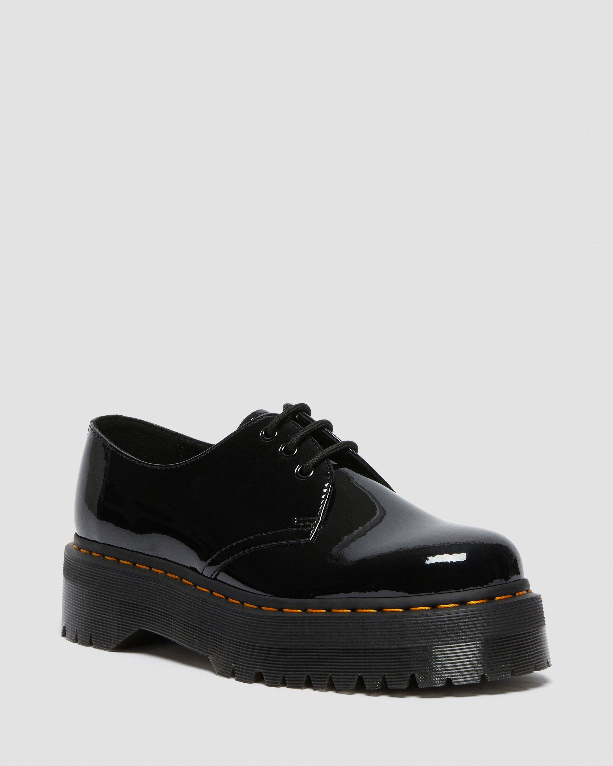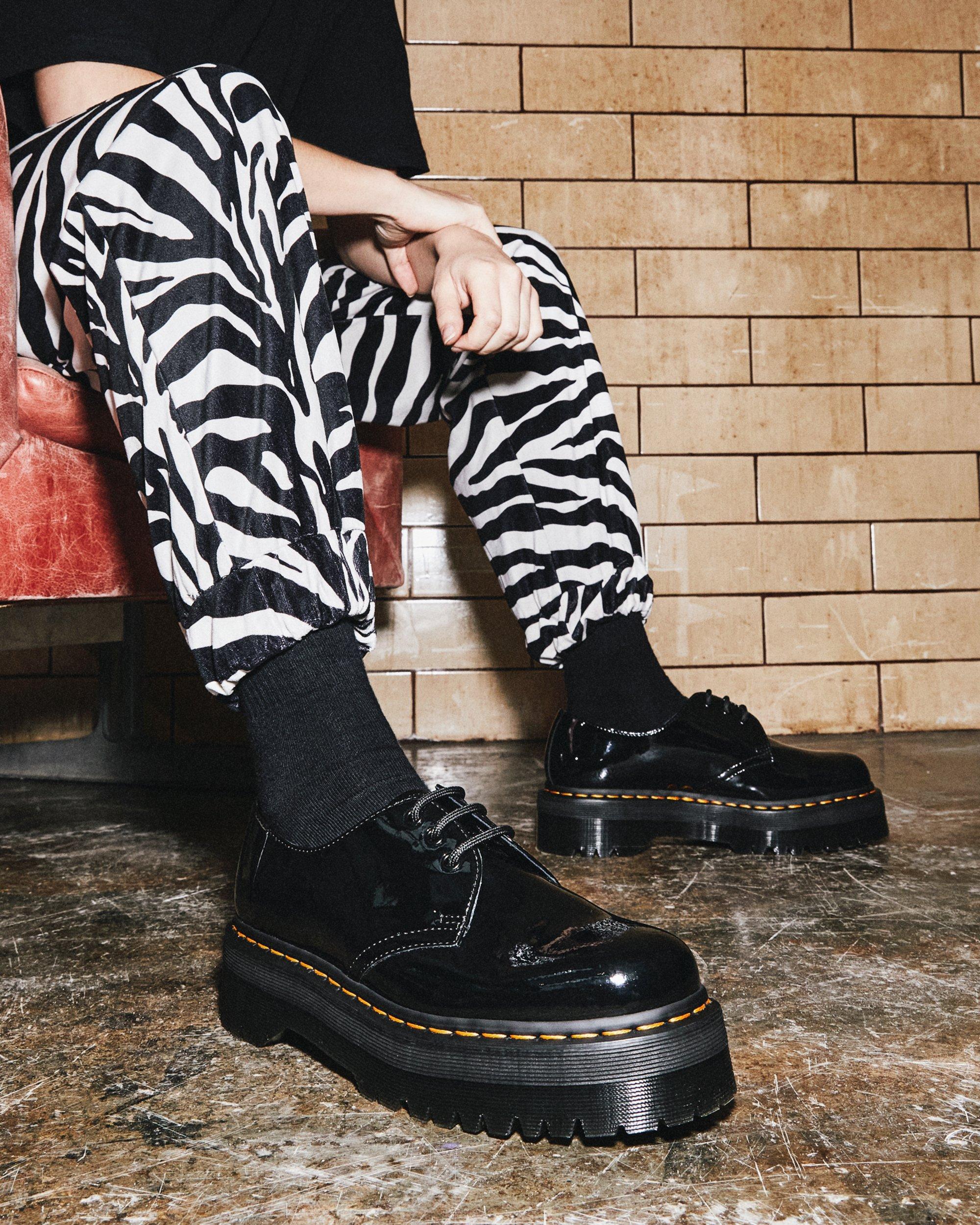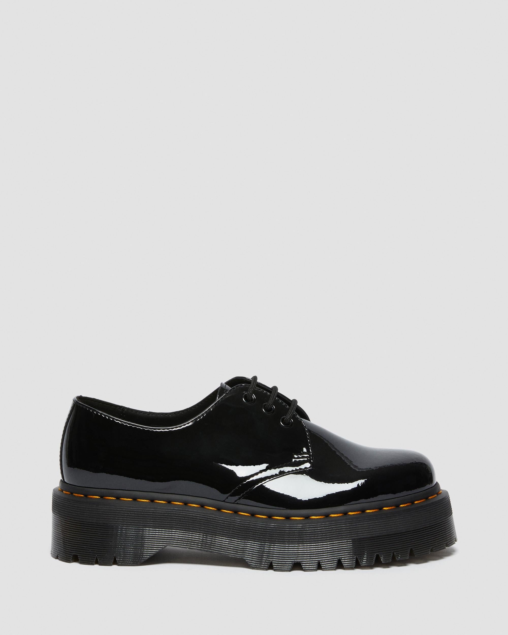 Taller. Tougher. This season, our Original 1461 shoe is amped-up with even more attitude. Set on a stacked Quad platform sole, the 3-eye shoe is built from high-shine Patent Lamper leather and marked with our unmistakable yellow welt stitching. Second off the DM’s production line, the 1461 is a 3-eye shoe championed for its versatility Patent Lamper is a fine-grained leather, coated to give a high shine, glossy finish. Clean with a damp cloth and restore its shine with Dr. Martens Patent Cleaner Platform height: 1 1/2 in; Heel height: 1 7/8 in Material A leather with a classic patent effect. Care Instructions Wipe away dirt with a damp cloth. Spray Dr. Martens Patent Leather Cleaner evenly on to footwear wiping off any excess with a clean cloth. Once dry, buff vigorously to desired shine with a Dr. Martens Shoe Brush. Construction Goodyear Welted - the upper and sole are heat-sealed and sewn together, providing more comfort and durability for years to come. Product code 26647001 Sale