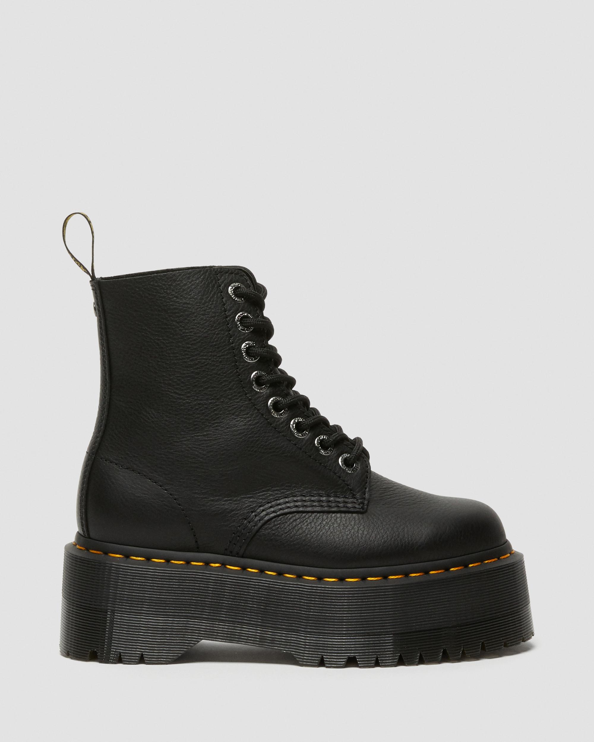Get taller. The 1460 Pascal Max boot stands on our tallest platform — a bouncing sole higher than ever. Crafted from supple Pisa leather, with a black and yellow heel loop and silver branded eyelets. We’ve secured the towering sole with our unmistakable yellow welt stitching, and it’s marked with our distinctive grooving pattern. Sole Height - Platform height: 1 7/8 in Heel height: 2 1/4 in Footbed - Slimmer and a more tapered toe shape Material Pisa - a medium-weight milled nappa leather with a super-soft tumbled handle and richly pigmented waxy finish. Care Instructions Wipe away dirt using a damp cloth. Apply a neutral or correct colored wax based shoe polish. Buff with a Dr. Martens Shoe Brush to restore shine as desired. Construction Goodyear Welted - the upper and sole are heat-sealed and sewn together, providing more comfort and durability for years to come. Product code 26925001 Women's Lace Up Boots