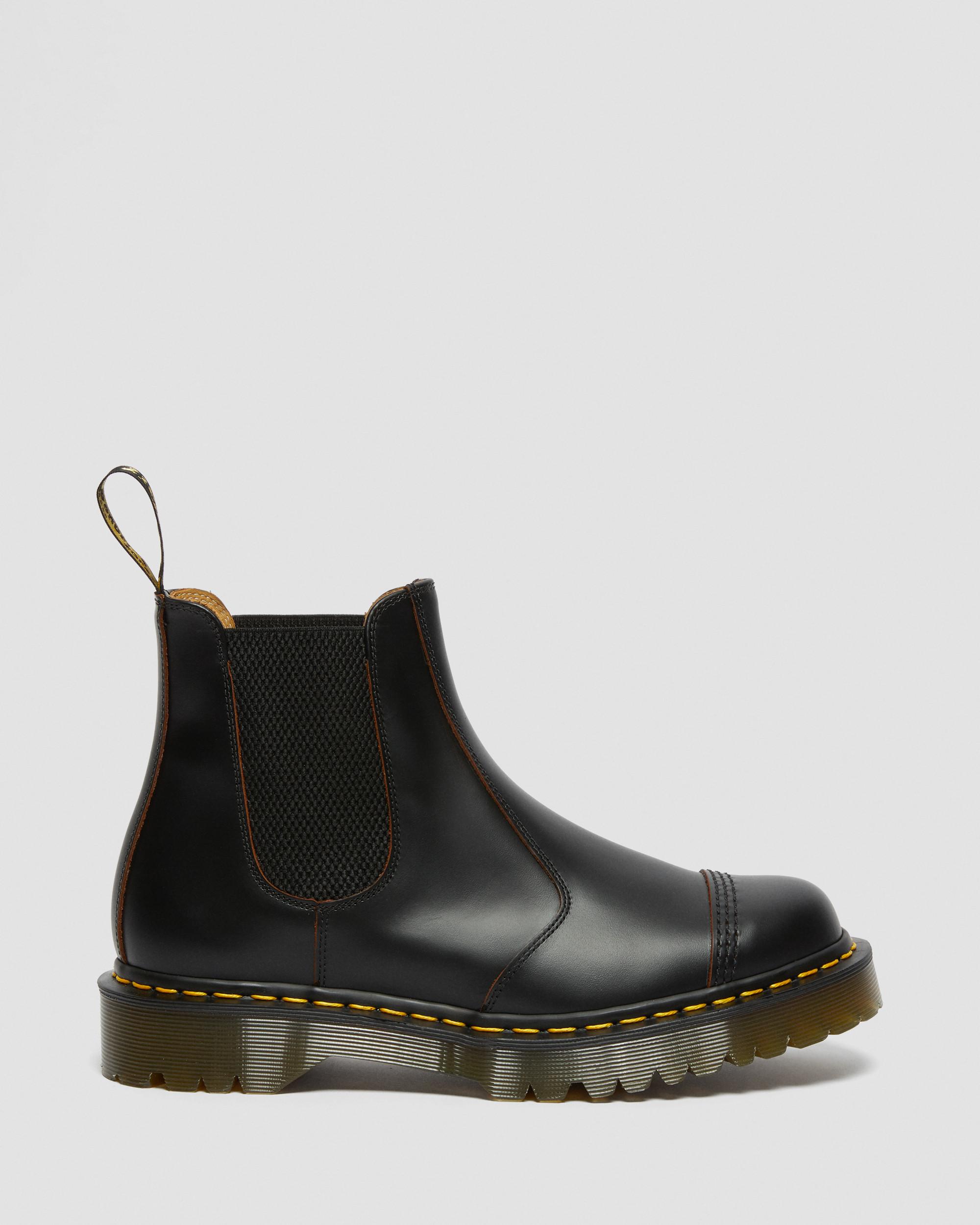 Our classic Chelsea boot silhouette reworked with double-height sole and triple-stitch toe cap for a disruptive edge. Handcrafted in Wollaston from traditional Quilon leather with contrast base color for a two-tone finish. Set on an extra rugged Bex sole with a rugged tread. Fitted with a gold foiled leather footbed as well as our unmistakable yellow welt stitching. Signed with a gold-scripted heel loop. The 2976 is the rugged Docs take on the classic Chelsea boot. Manufactured since the 70s Quilon leather is crafted using a traditional method and features contrast base color for a two-tone finish Pull-on style, with elastic gussets Made in England at our original Wollaston factory Construction - Made with a Goodyear-welted lines that are heat-sealed at 700˚C and reinforced with our signature welt stitch Sole Height - Platform height: 1 in; Heel height: 1 3/8 in Footbed - Slimmer and a more tapered toe shape Material Quilon - a leather crafted using traditional processes, featuring a contrast base color for a two-tone finish. For tips on how to break in your Docs visit our Guide . Care Instructions Wipe away dirt using a damp cloth. Apply a neutral or correct colored wax based shoe polish. Buff with a Dr. Martens Shoe Brush to restore shine as desired. Construction Goodyear Welted - the upper and sole are heat-sealed and sewn together, providing more comfort and durability for years to come. Product code 27387001 Made In England