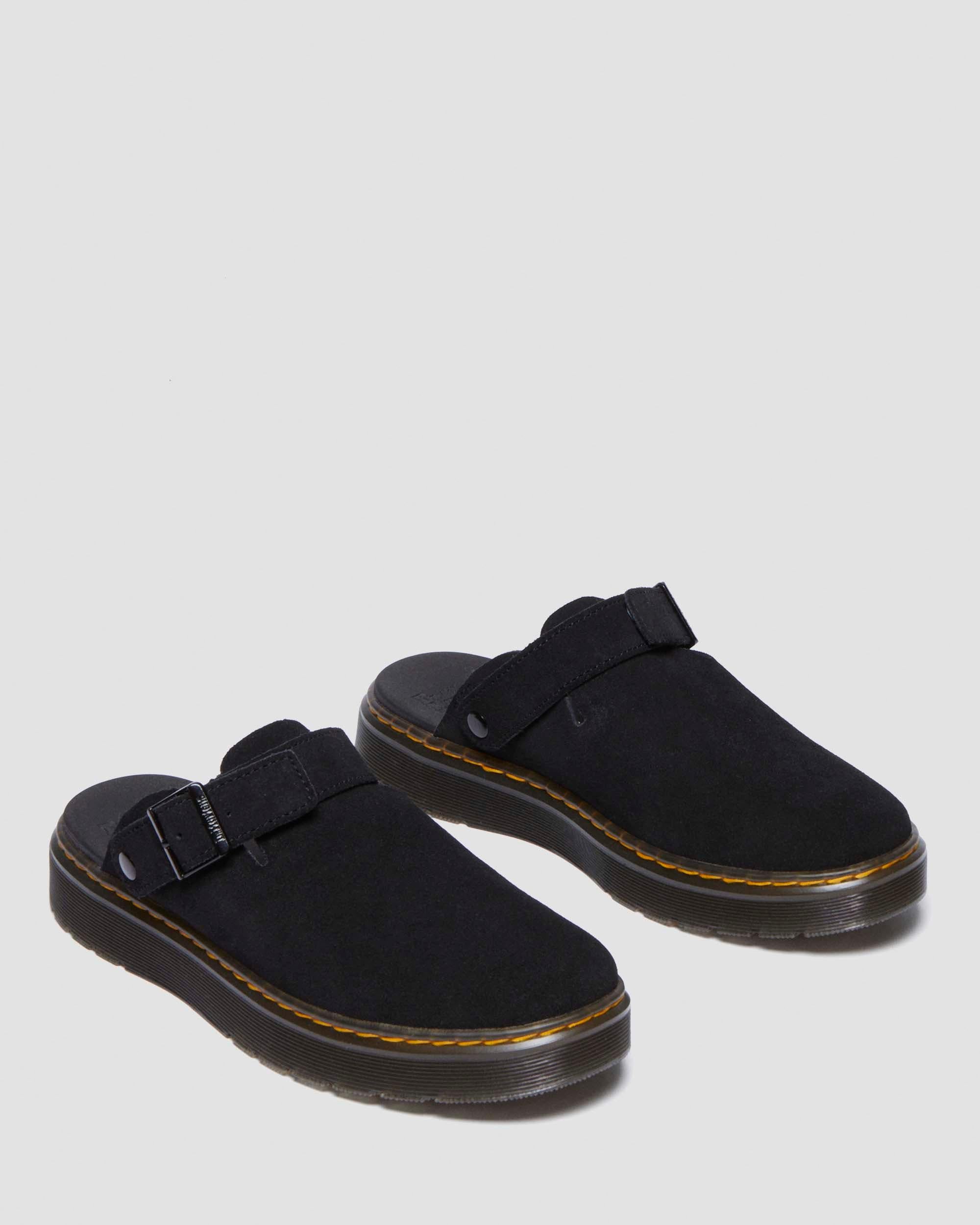Perfect for summer. Built for every season. Take it easy with our Carlson sandals. Easy on and easy off with a moveable strap, so can be worn as a slip-on or around the ankle. A flat Vibe sole keeps things on the level for total comfort wherever you go. Soft E.H. Suede leather completes the look with a silky texture. EH Suede is a classic leather with a silky to touch texture Our mules run a little small, we recommend sizing up Footbed - Wider and a more rounded toe shape HOW IT FITS Suede material for a more flexible fit. We recommend you size down. Material E.H. Suede - a classic leather with a silky to touch texture. Care Instructions Clean by brushing with a suede or stiff bristle brush. Product code 27410001 Mules, Slingbacks & Clogs