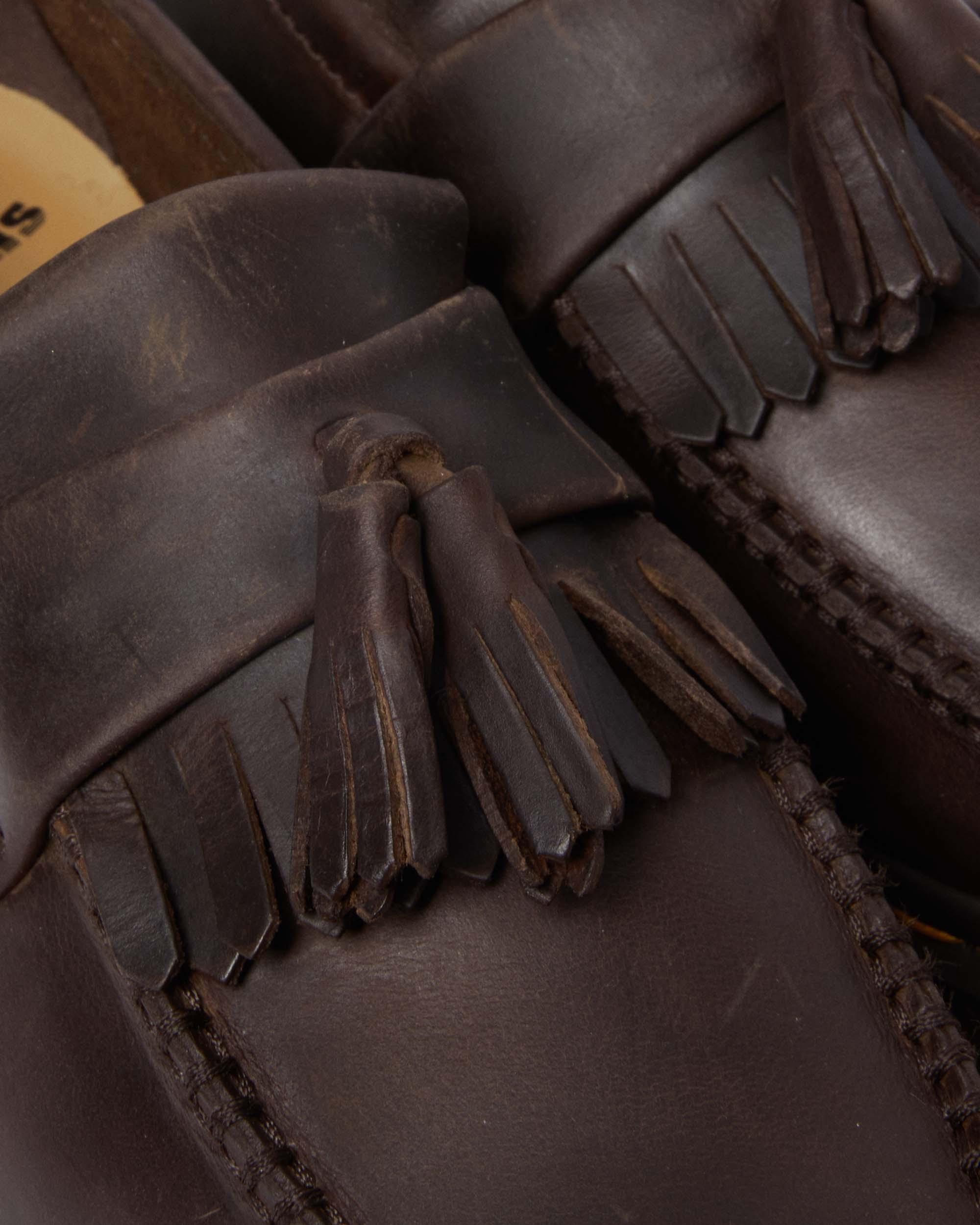 Crazy Horse leather is a well-worn DM's classic and a mainstay of our most iconic silhouettes. A heavyweight leather that looks beaten up and worn in from the first step — and only gets better with age. We've rebuilt our Adrian loafer from Crazy Horse leather, detailed with a double tassel and kiltie fringe. Welted on our rugged air-cushioned sole and marked with our signature yellow welt stitching. The first Docs shoe inspired by subcultures. The Adrian loafer rolled off the production line in the 70s – fusing mod-like smartness with DM’s-level durability Crazy Horse is a heavyweight leather with a tough, textured appearance — designed to look worn in from the first step The DMS sole is a pillar of Dr. Martens construction — renowned for its comfort and stability. A two-tone appearance with distinctive grooving and an unmistakable tread pattern Construction - Made with a Goodyear-welted lines that are heat-sealed at 700˚C and reinforced with our signature welt stitch Footbed - Slimmer and a more tapered toe shape Material Crazy Horse - a natural-type oil finished leather, with a worn, distressed appearance. Care Instructions Wipe away dirt using a damp cloth. Apply Dr. Martens Wonder Balsam to the outside of your footwear to keep the leather supple, strong and smooth. Once dry, buff vigorously to desired shine using a clean Dr. Martens Shoe Brush . Repeat regularly to prolong the life of your footwear. Construction Goodyear Welted - the upper and sole are heat-sealed and sewn together, providing more comfort and durability for years to come. Product code 30917201 Originals Shoes