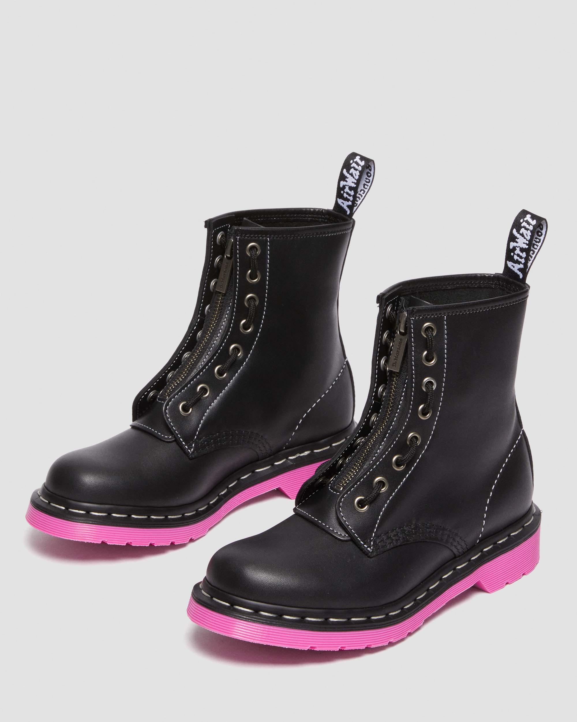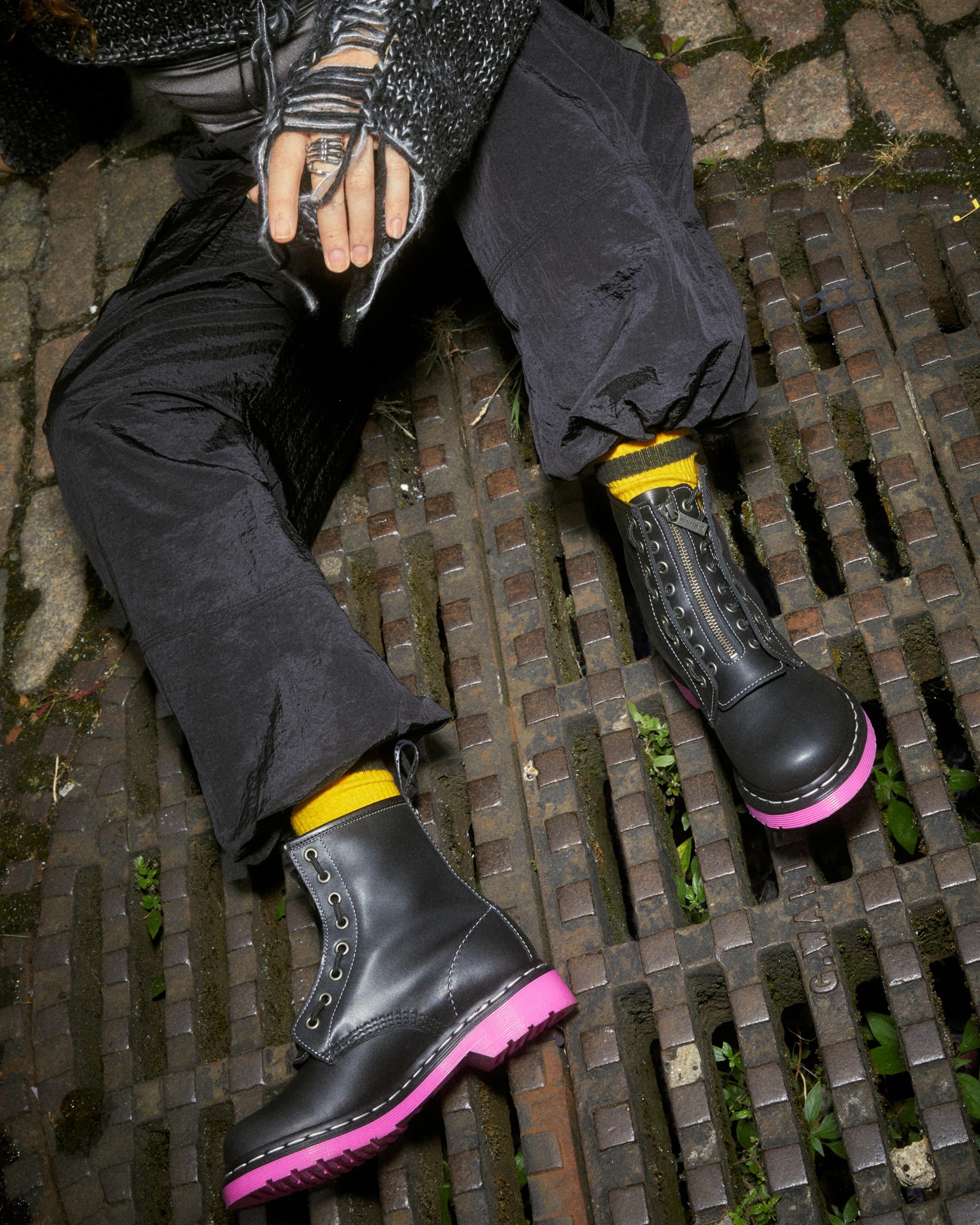 Ready for center stage. A vibrant, playful rework of the classic 1460 boot. Built from supple black Wanama leather on a statement pink outsole detailed with a white upper and welt stitching. Fitted with a removable jungle zip for the choice between lace or zip fastening. Finished with antique silver hardware. Tagged with a monochrome version of our scripted AirWair heel loop. Born on 01.04.60. Named the 1460 boot. Over six decades, our 8-eye work boot has become inconic Wanama is a lightweight leather with a satin-sheen finish The DMS sole is a pillar of Dr. Martens construction — renowned for its comfort and stability. A two-tone appearance with distinctive grooving and an unmistakable tread pattern Construction - Made with a Goodyear-welted lines that are heat-sealed at 700˚C and reinforced with our signature welt stitch Footbed - Wider and a more rounded toe shape Material A lightweight, natural-looking leather with a satin-sheen finish. Care Instructions Wipe away dirt using a damp cloth. Apply a neutral or correct colored wax based shoe polish. Buff with a Dr. Martens Shoe Brush to restore shine as desired. " Construction Goodyear Welted - the upper and sole are heat-sealed and sewn together, providing more comfort and durability for years to come. Product code 30925001 1460 Lace-Up Boots