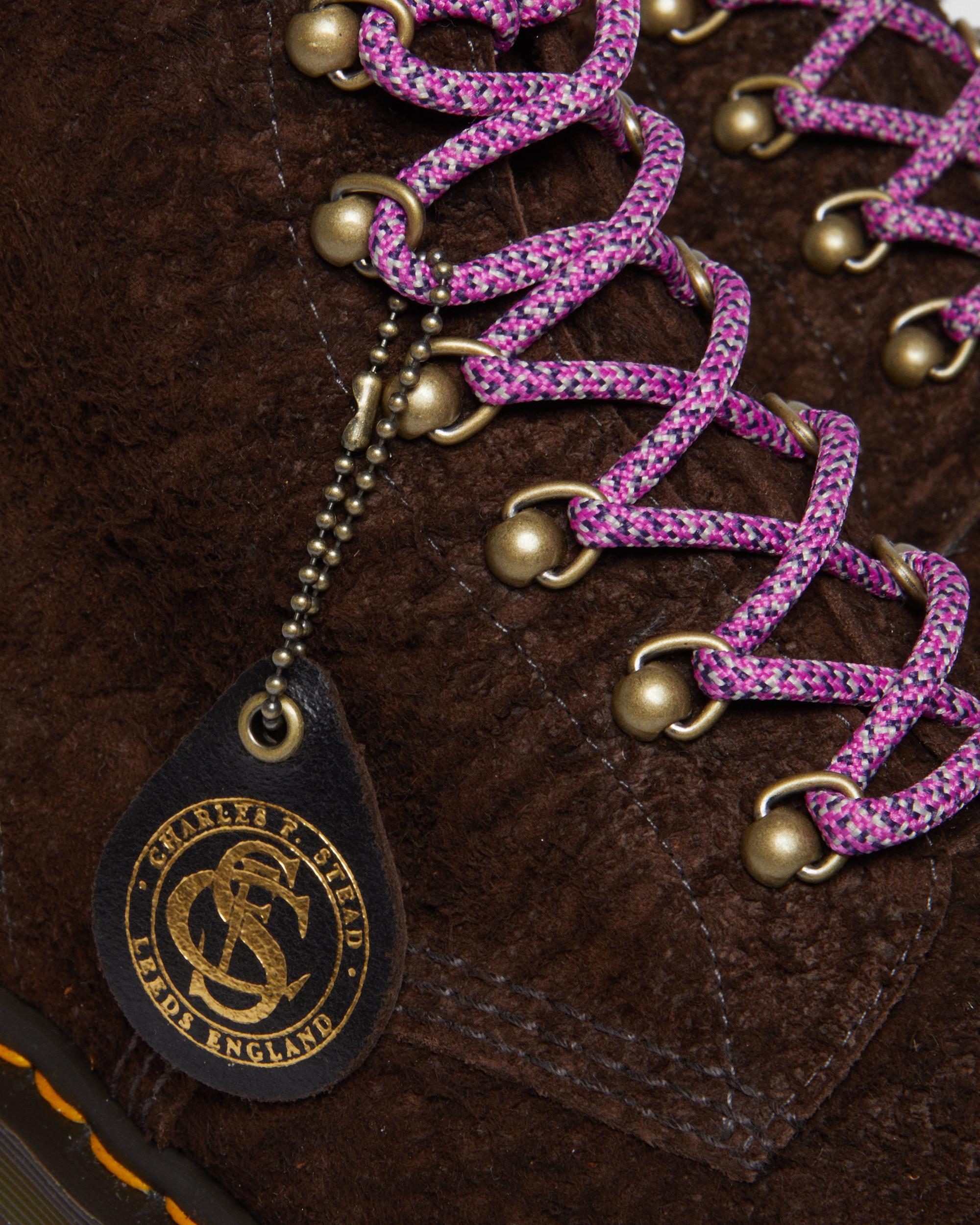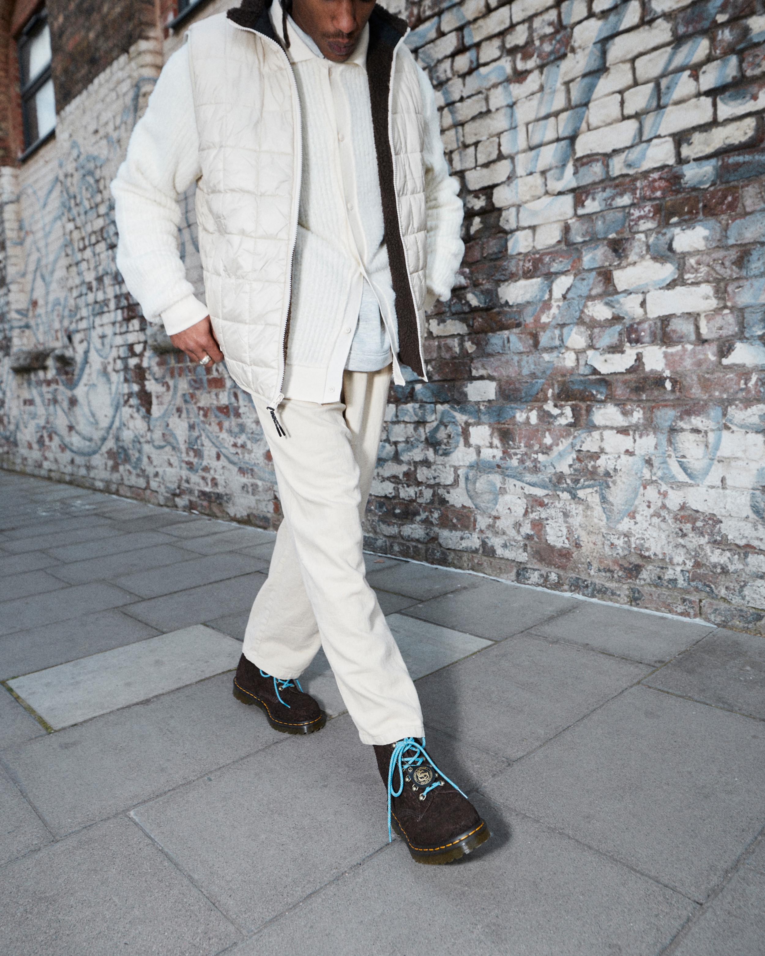 Expertly handcrafted in our Wollaston factory, our 101 6-eye boot provides a versatile canvas for new material. Rough Finish suede from Leeds-based tannery C. F. Stead has a rugged, natural texture with a long, hairy nap. The boot is fitted with contrast hiker laces anchored by antique gold D-rings. Our lugged BEN outsole is secured with a bitter choc welt and signature DM’s yellow welt stitching. The 6-eye boot is finished with a tannery swing tag and a black and gold heel loop. Made in England at our original Wollaston factory Made for workers. Subverted by rebels. The 101 boot packs all our unmistakable DNA into a sleek 6-eye silhouette Rough Finish suede has a rugged, natural texture with a long, hairy nap Construction - Made with a Goodyear-welted lines that are heat-sealed at 700˚C and reinforced with our signature welt stitch Footbed - Slimmer and a more tapered toe shape Dark Brown only comes with pink laces. Construction Goodyear Welted - the upper and sole are heat-sealed and sewn together, providing more comfort and durability for years to come. Product code 30946201 Made In England