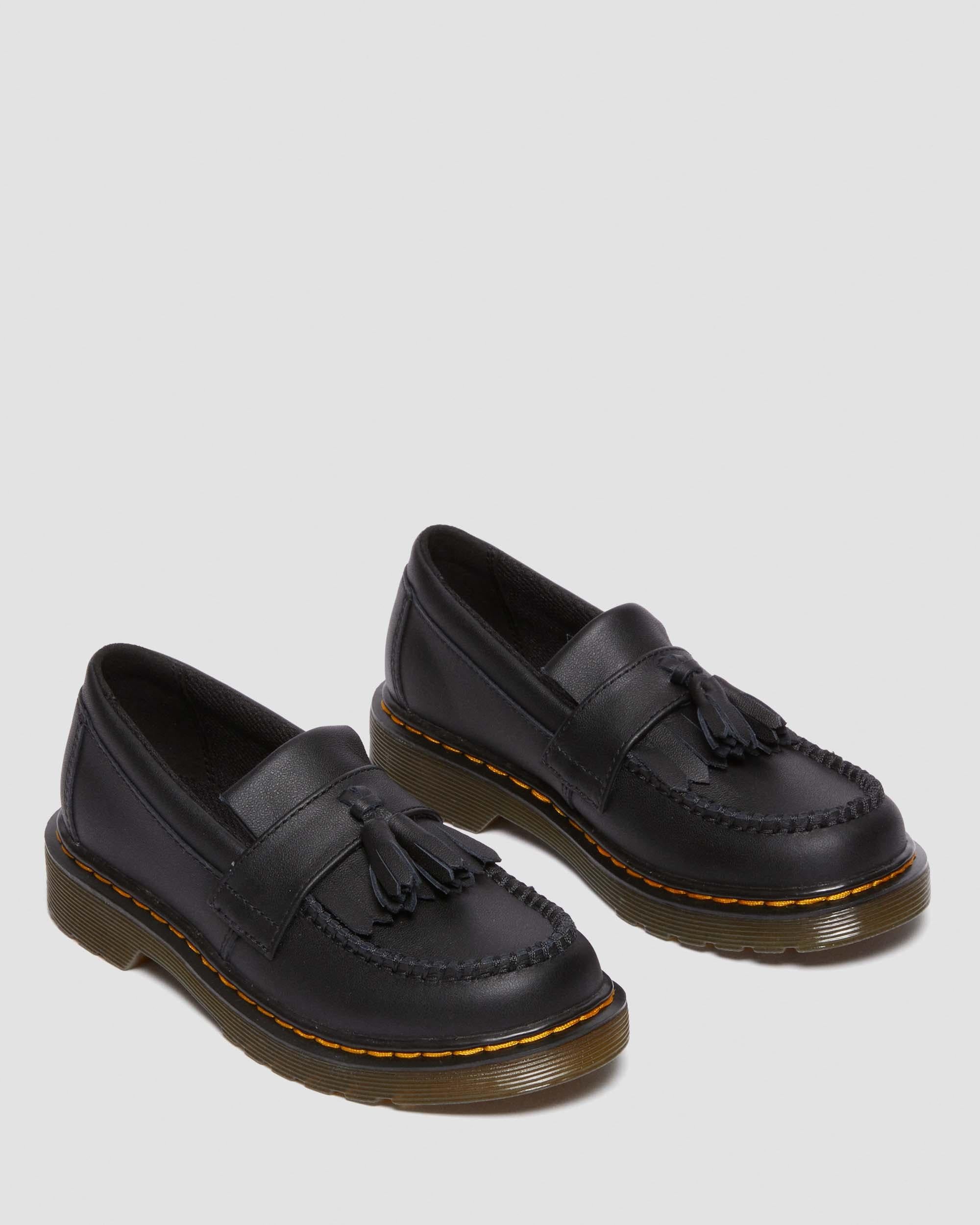 Another mini icon: this takedown of our classic Adrian loafer packs decades of subcultural heritage into upcoming rebel sizes. Made from soft, supple, leather it's decked out with a fringed tassel, tonal stitching and our legendary air-cushioned sole. Starting them off young has never been easier. The Adrian is our rugged take on the iconic tassel loafer. Born in the 1980's and championed by subcultures ever since Softy T is a lightweight, full-grain leather with a soft and supple feel. Clean with a damp cloth and care with Dr. Martens Shoe Polish Flexible cemented sole construction for growing feet Material A lightweight, full-grain leather, with a soft feel. Care Instructions Wipe away dirt using a damp cloth. Apply a neutral or correct colored wax based shoe polish. Buff with a Dr. Martens Shoe Brush to restore shine as desired. " Construction Cemented - the sole is cemented to the upper, a durable and flexible construction for all day comfort. Product code 30963001 Gifts For All