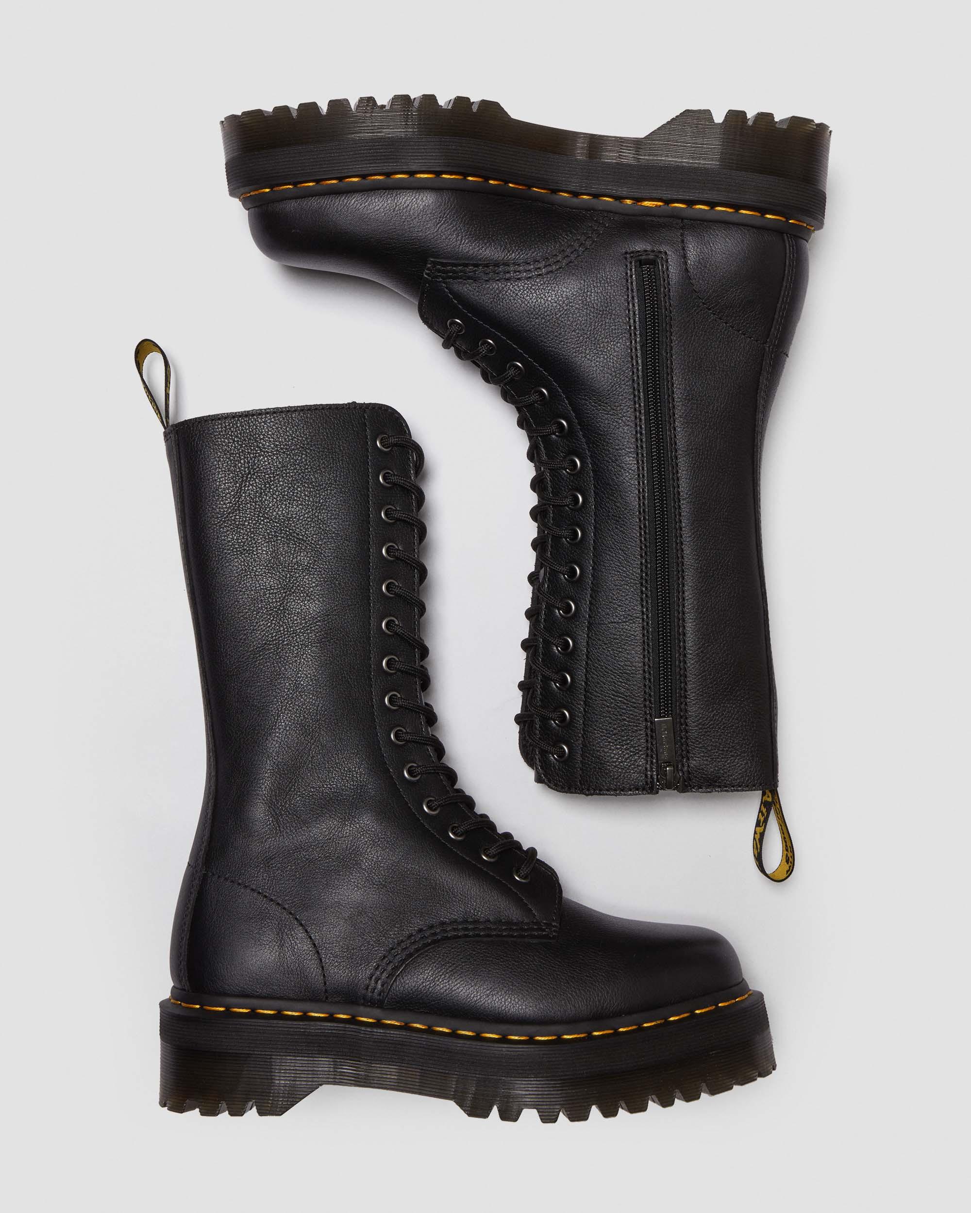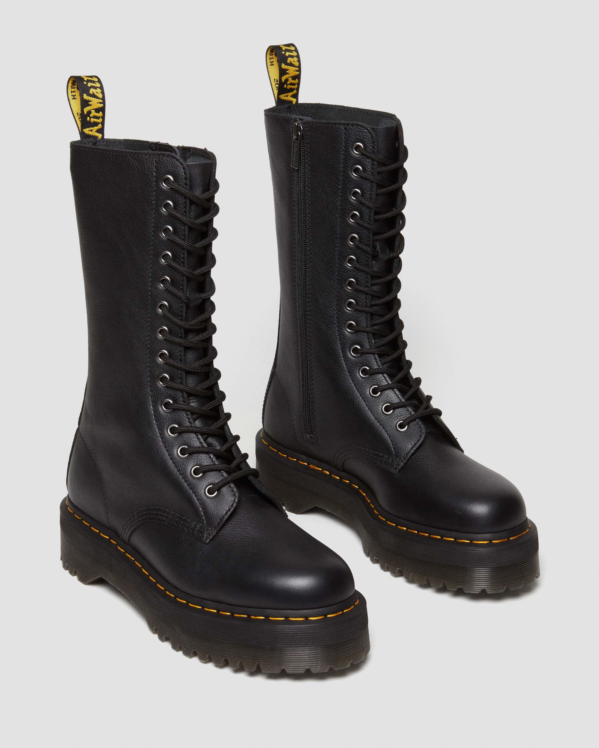 A tall boot with a big attitude. The 1B99 Quad boot is an amped-up rework of our classic 14-eyelet silhouette — rebuilt in supple Pisa leather and stacked on our formidable Quad sole. The boot has an inside zip with gunmetal eyelets and black upper stitching. Our unmistakable DNA runs from top to bottom, with a black and yellow heel loop, grooved outsole and yellow welt stitching. Pisa is a medium-weight milled Nappa leather with a soft tumbled handle and richly pigmented waxy finish Built to embolden. Our towering platform sole takes our silhouettes to new heights — for people who aren't afraid to stand tall Construction - Made with a Goodyear-welted lines that are heat-sealed and reinforced with our signature welt stitch Sole Height - Platform height: 1 1/2 in: Heel height: 2 in Footbed - Slimmer and a more tapered toe shape Material Pisa - a medium-weight milled nappa leather with a super-soft tumbled handle and richly pigmented waxy finish. Care Instructions Wipe away dirt using a damp cloth. Apply a neutral or correct colored wax based shoe polish. Buff with a Dr. Martens Shoe Brush to restore shine as desired. Construction Goodyear Welted - the upper and sole are heat-sealed and sewn together, providing more comfort and durability for years to come. Product code 31426001 Best Sellers