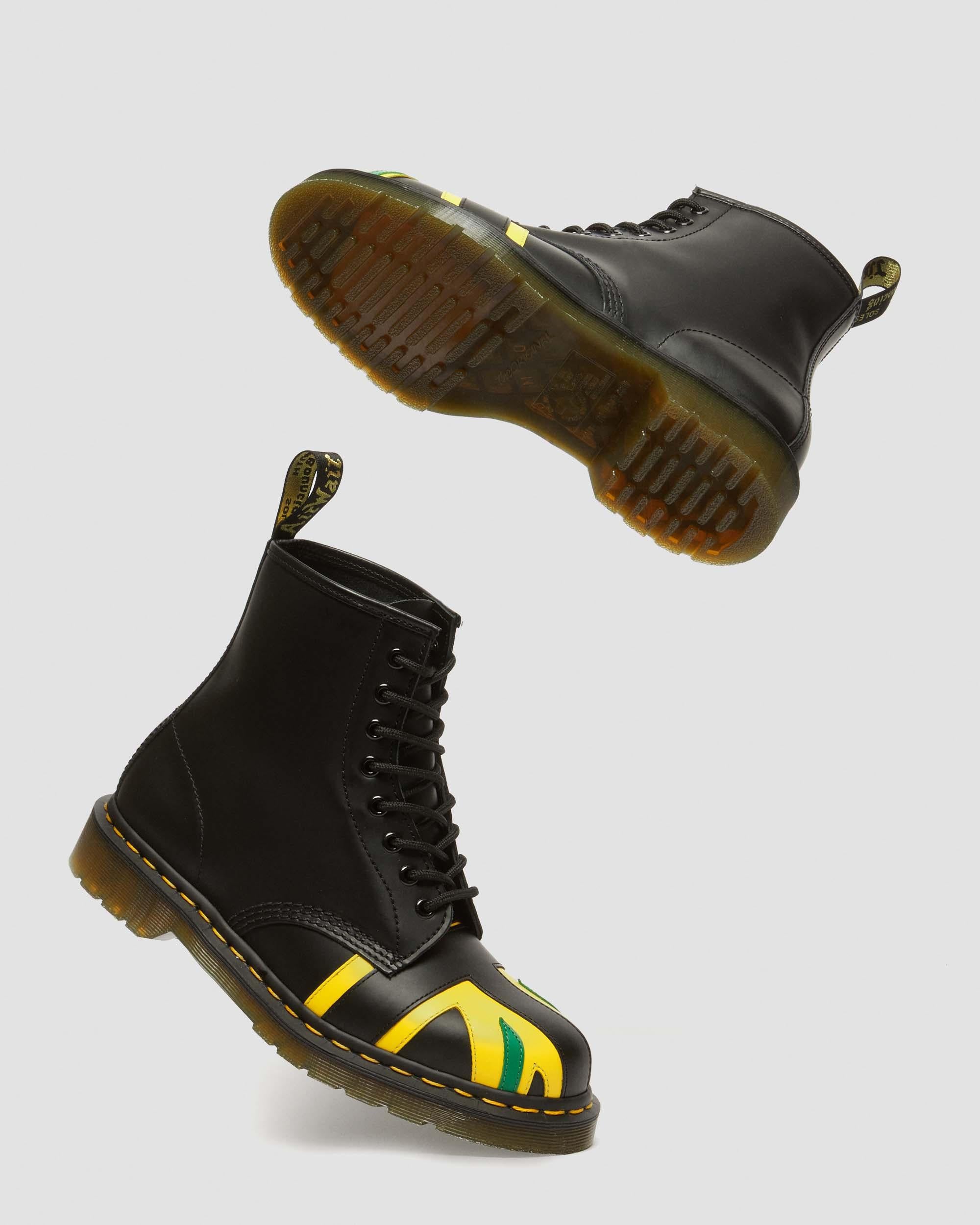 Our first collaboration with Tremaine Emory’s Denim Tears celebrates the transformational legacy of the Windrush generation. Subverting the Union Jack with the colours of the Jamaican flag, our 1460 boot represents the infusion of Caribbean culture into British heritage. Handcrafted in England from rugged Smooth leather, the boots are welted on a traditional DMS sole secured with our signature welt stitch. Made in England at the original DM’s factory Born on 1st April 1960. Named the 1460 boot. Our 8-eye work boot is unmistakable. Remixed and redefined — never replicated Hardwearing and famously tough, our Smooth leather can be polished to shine or scuffed-up Our Goodyear-welted lines are heat-sealed and reinforced with our signature welt stitch Material Smooth - durable and famously stiff to start, this leather can be polished to a dapper shine or artfully scuffed-up depending on your preference. For tips on how to break in your Docs visit our Guide . Care Instructions Wipe away dirt using a damp cloth. Apply a neutral or correct colored wax based shoe polish. Buff with a Dr. Martens Shoe Brush to restore shine as desired. Construction Goodyear Welted - the upper and sole are heat-sealed and sewn together, providing more comfort and durability for years to come. Product code 31743038 1460 Lace-Up Boots