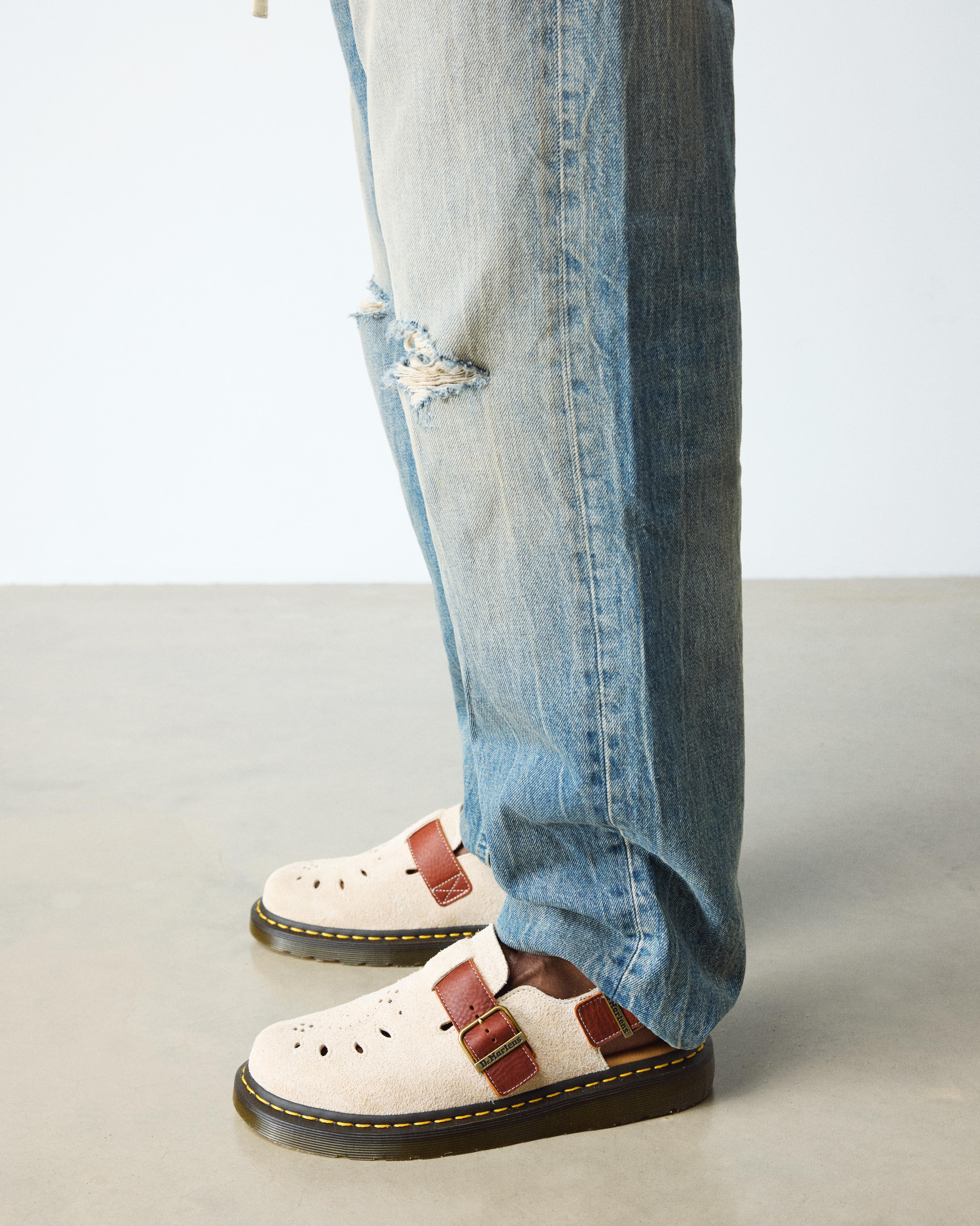 A heritage in creativity. And evolving every step of the way. Our early sandals featured embroidery and cut-out details for an extra dose of personality. The new late-summer version of our Jorge slip-on mule in mid-tan and light fawn is marked with the same detailing and punch-through holes on the vamp. Built from Desert Oasis Suede and standing on our durable Shore sole, the mule is secured with our signature yellow welt stitching. A nod to the past with a step towards the future. Made in England at our original Wollaston factory. Natural Tumble is a full grain leather with a soft handle. Desert Oasis Suede is made in England by Leeds tannery C. F. Stead with a pronounced nap for a premium look and feel. Clean by carefully brushing with a Natural Bristle Brush. Our Goodyear-welted lines are heat-sealed and reinforced with our signature welt stitch. Material Classic Suede made in England with a higher than usual nap level & a fully Aniline heavy weight, natural tumbled leather. Care Instructions Wipe away dirt with a damp cloth. Construction Goodyear Welted - the upper and sole are heat-sealed and sewn together, providing more comfort and durability for years to come. Product code 31854795 Made In England