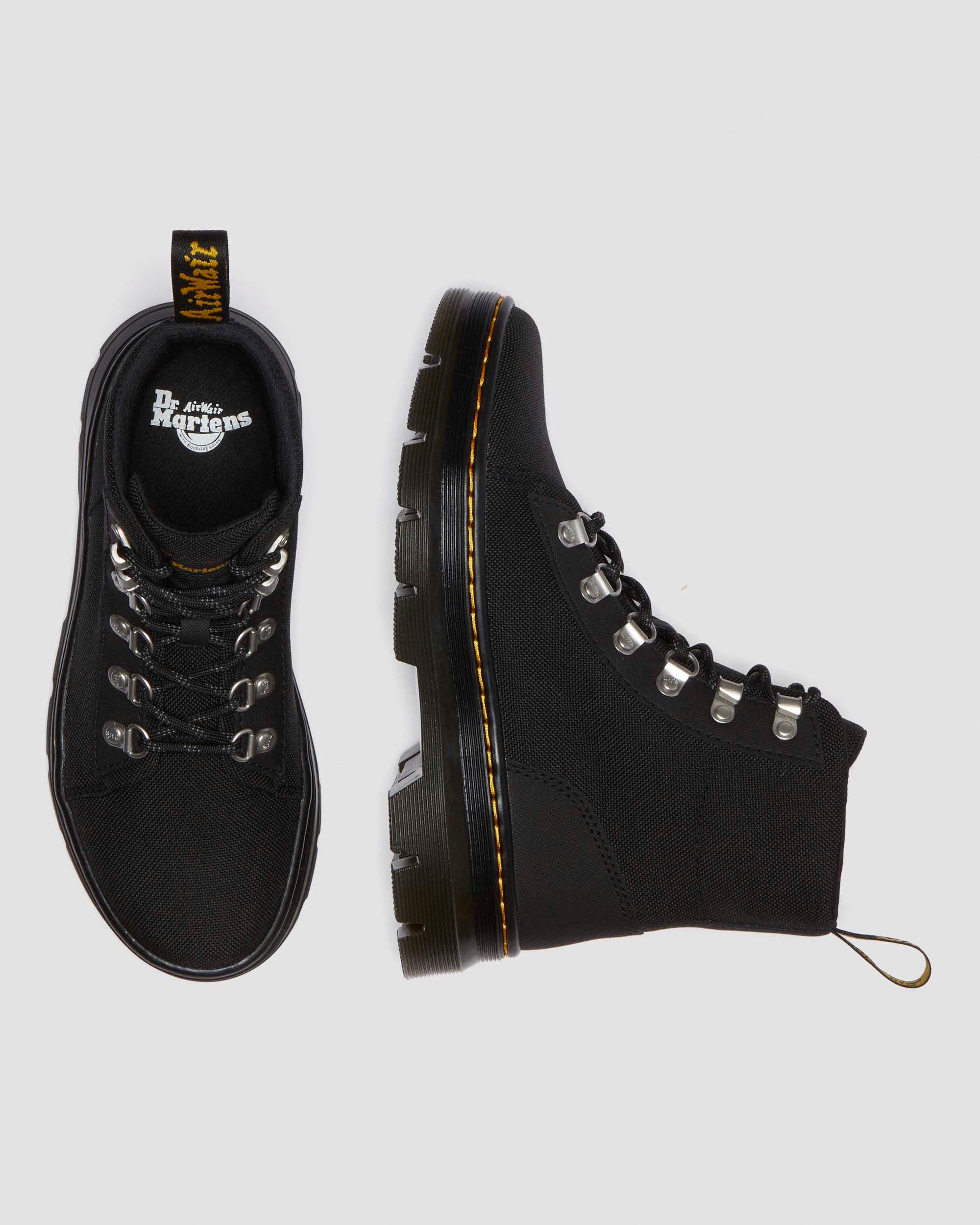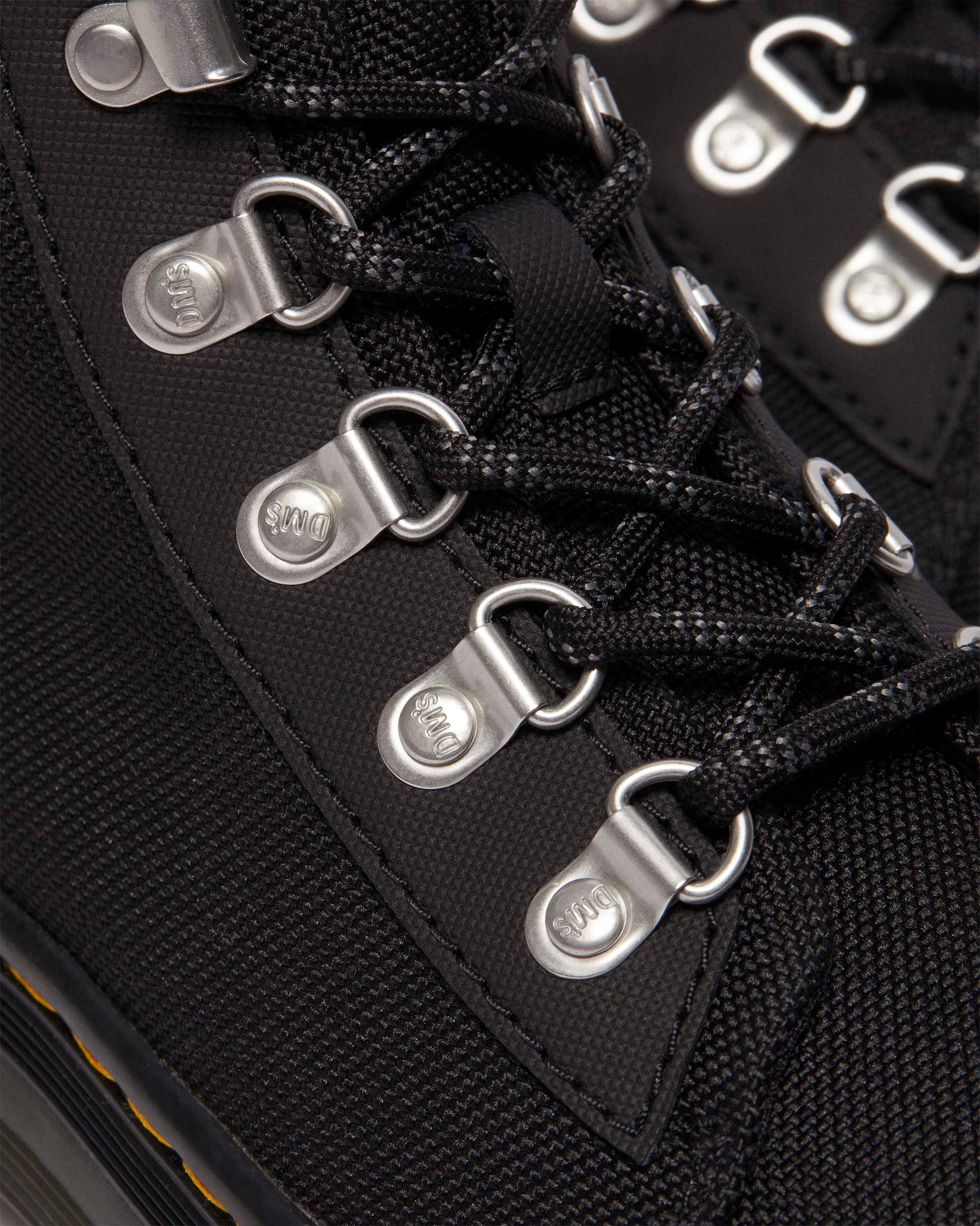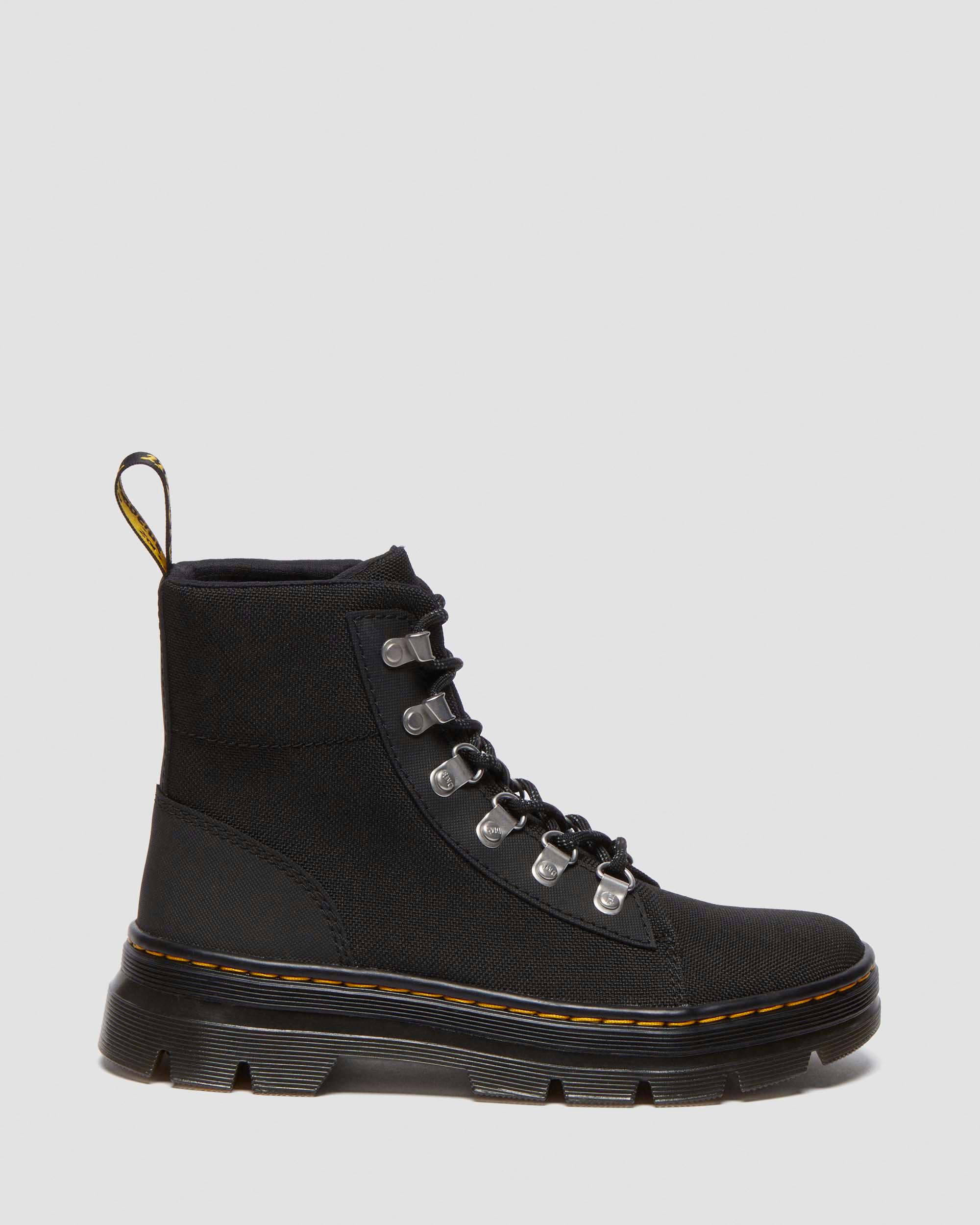 Tough enough for anything. Comfortable enough for every day. These boots are the ultimate in all-weather utilitarian footwear. Built from a mix of tough-yet-light poly and Ajax leather, the 6-tie boots are decked out with tonal D-rings and hiker hooks alongside our signature markings. Ajax is a PU-coated split leather with a subtle geometric emboss Extra Tough Poly is an extra tough, synthetic woven fabric with exceptional strength and elasticity Utility-inspired — with DM’s attitude. Our relaxed Tract outsole is tough and light, with pavement-ready durable cemented construction and deep indentations for improved traction Construction - Made with a comfortable, durable cemented construction Footbed - Wider and a more rounded toe shape Material Ajax + Extra Tough Poly - a PU-coated split leather with a subtle geometric emboss, paired with an extra tough, synthetic woven fabric with exceptional strength and elasticity. Care Instructions Wipe away dirt using a damp cloth. For tougher stains, use a small amount of mild soap. Construction Cemented - the sole is cemented to the upper, durable and flexible for all day comfort. Product code 31924001 Women's Casual Boots & Shoes