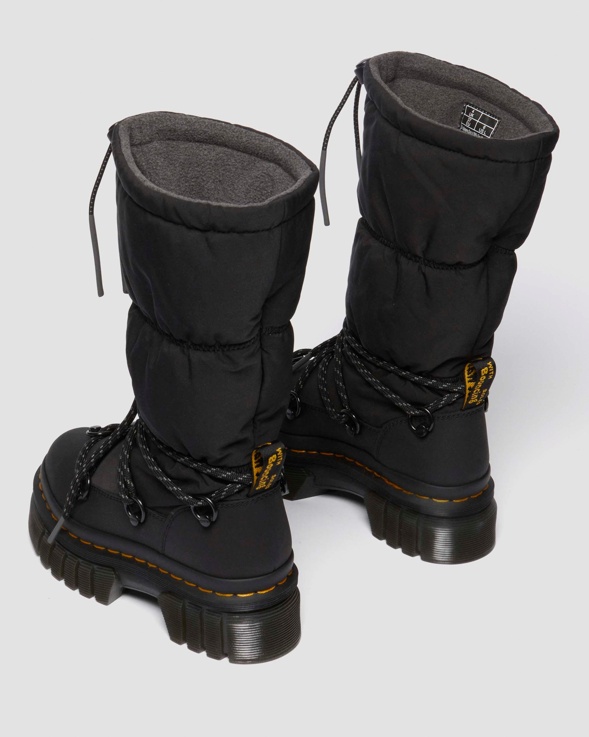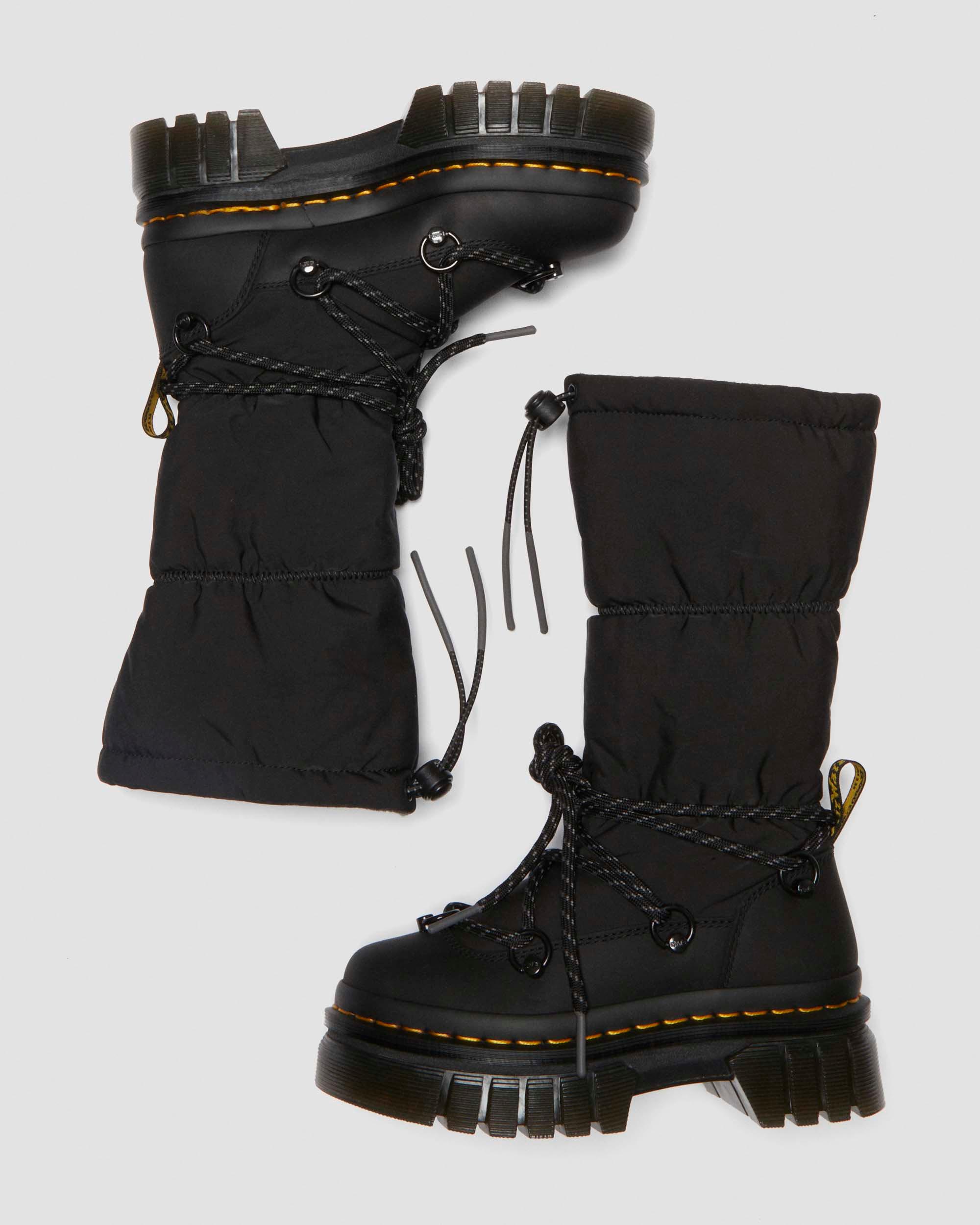 Built to withstand the elements. And demand attention. Standing on a chunky-yet-lightweight Quad Neoteric sole with exaggerated cleats, the Audrick Padded Hi boot subverts silhouettes without forgetting DM’s heritage. Make a statement in our maximalist design with a fleece-lined Poly Woven puffer upper and adjustable thick lace fastenings inspired by mountaineering styles. Features a water, salt and grit-resistant leather designed to get the better of winter. Snowplow is a water-resistant edition of our classic Crazy Horse leather, with an oily finish and a rugged, beaten-up appearance. Taller. Lighter. Bolder. This lightweight platform sole combines lightweight EVA with rugged PVC. Marked with our signature grooving and deep cleats. Our Goodyear-welted lines are heat-sealed and reinforced with our signature welt stitch Care Instructions Wipe away dirt with a damp cloth. Construction Goodyear Welted - the upper and sole are heat-sealed and sewn together, providing more comfort and durability for years to come. Product code 32052001 Gifts For All