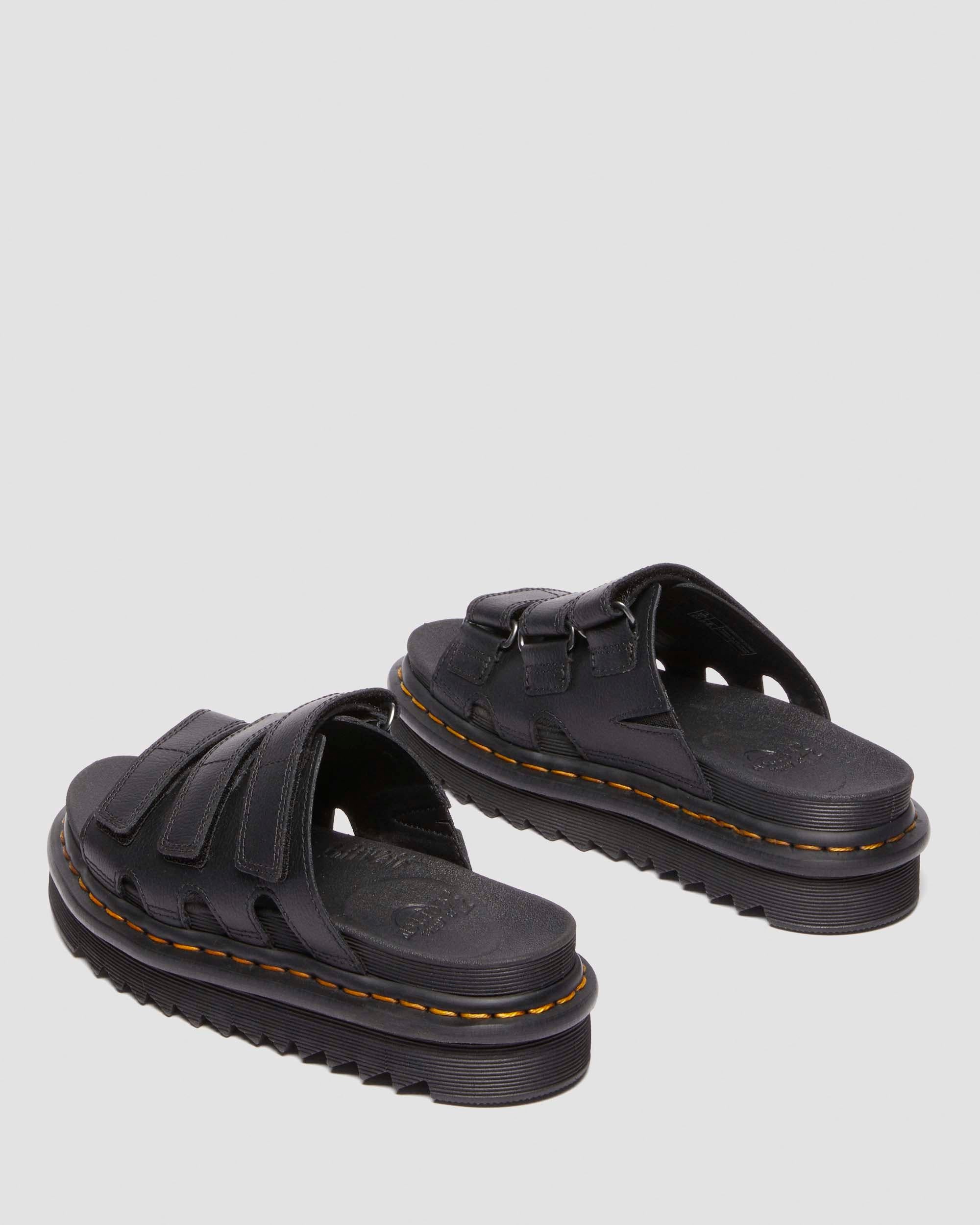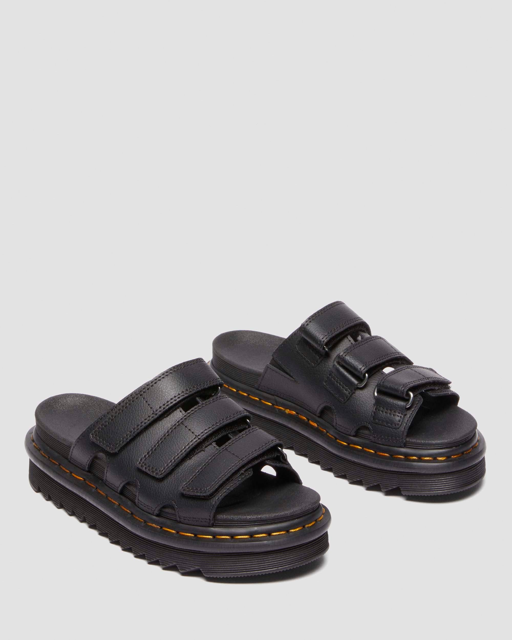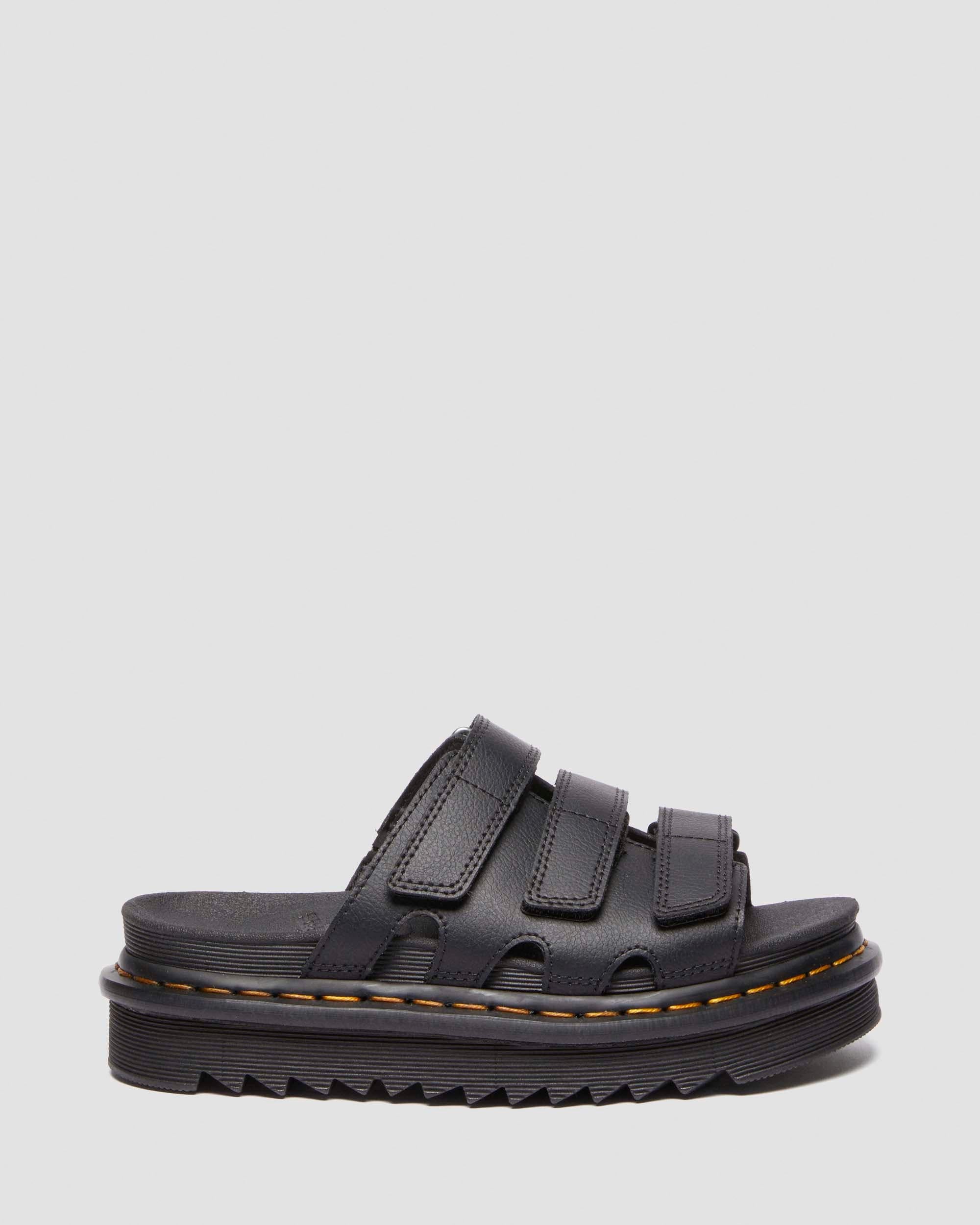 Slide into summer. Our new Raine Slide sandal combines a slider�s easy on/off convenience with our lightweight EVA Zebrilus sole and a comfortable SoftWair footbed. The upper has 3 adjustable Ripstop straps to help you find the perfect fit. The sole is marked with grooving and secured with DM�s yellow welt stitching. Material Athena - a smooth PU coated leather with matte finish. Care Instructions Wipe away dirt using a damp cloth. Construction Net Fit is a type of welted construction with a sole stuck on and heat sealed via the gasket Product code 40522001 Women's Platform Sandals