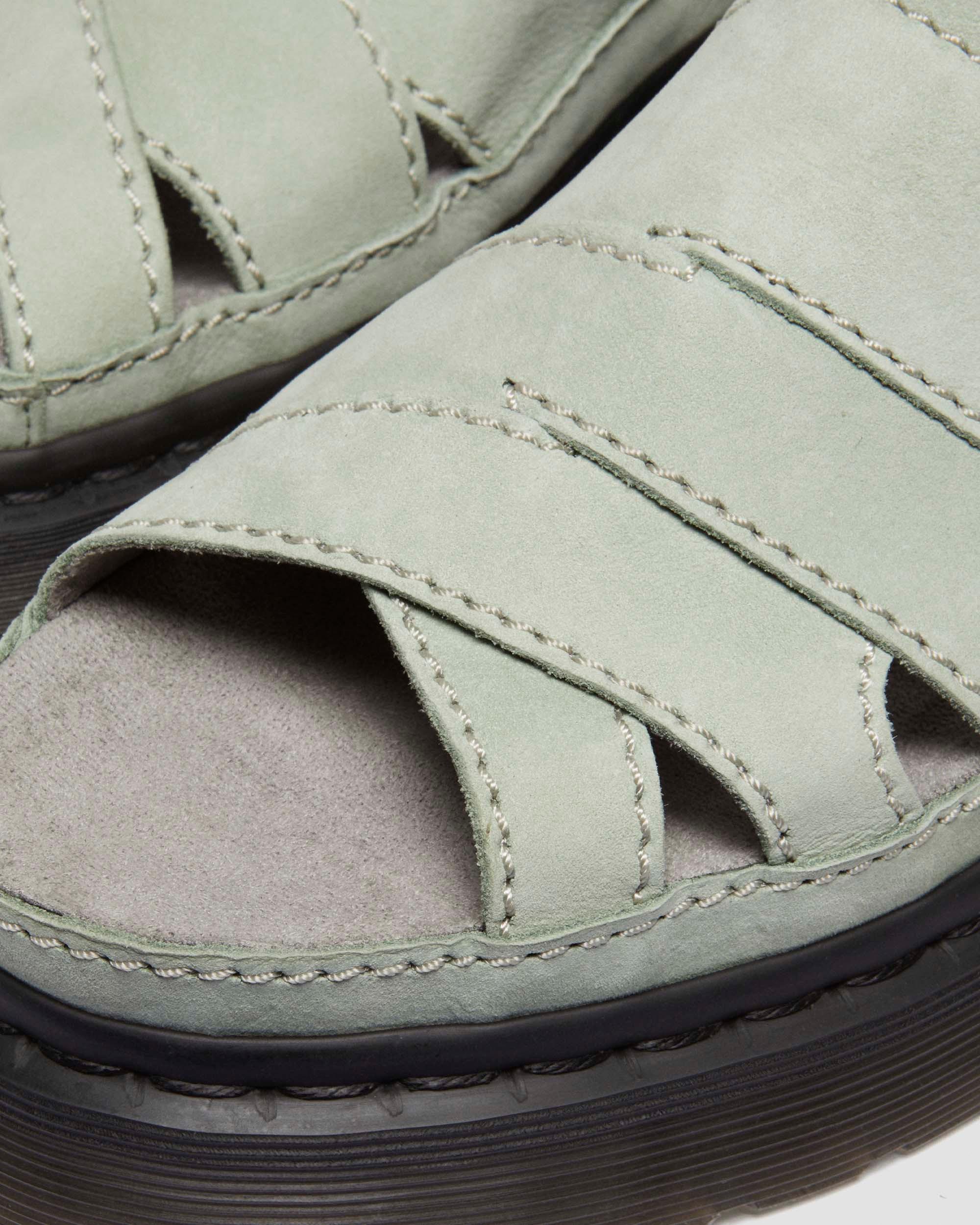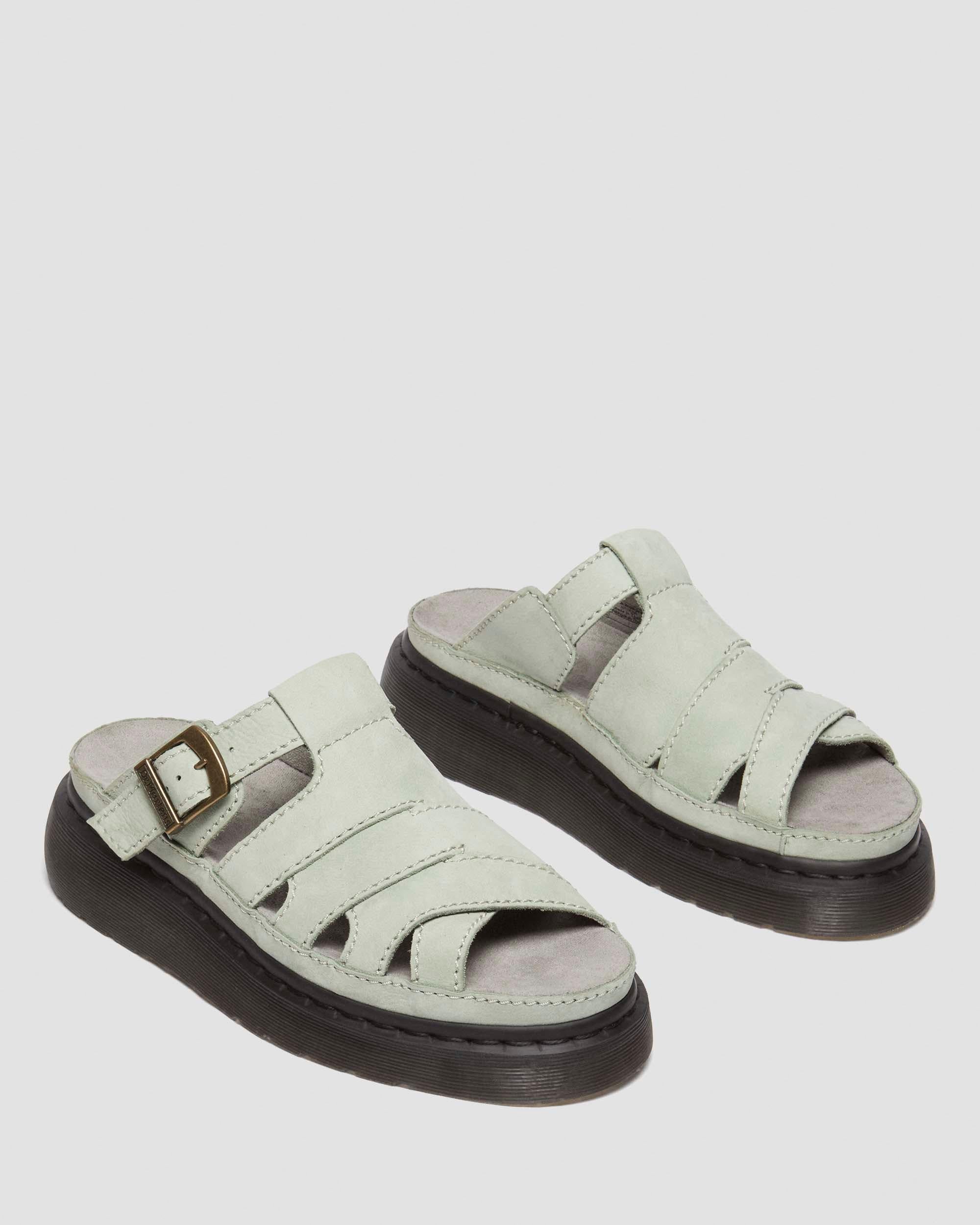 Air-cushioned and air-conditioned. The Maxxy Slide sandal is a 90s-inspired design you won’t want to take off. The ventilated upper is made with naturally tumbled Buttersoft nubuck leather in sage green. Built with a suede-covered foam footbed for enhanced comfort and an adjustable buckle to help you find the perfect fit. Our grooved, air-cushioned Quad Shore platform sole is secured with a durable Goodyear welt and sewn with black welt stitching. Material Premium naturally tumbled nubuck with excellent hand feel. Care Instructions Clean away dirt using a damp cloth and allow to dry, then apply Dr.Martens Wonder Balsam, add to shoes using the sponge applicator supplied with the product. Construction Goodyear Welted - the upper and sole are heat-sealed and sewn together, providing more comfort and durability for years to come. Product code 40528300 Men's Sale