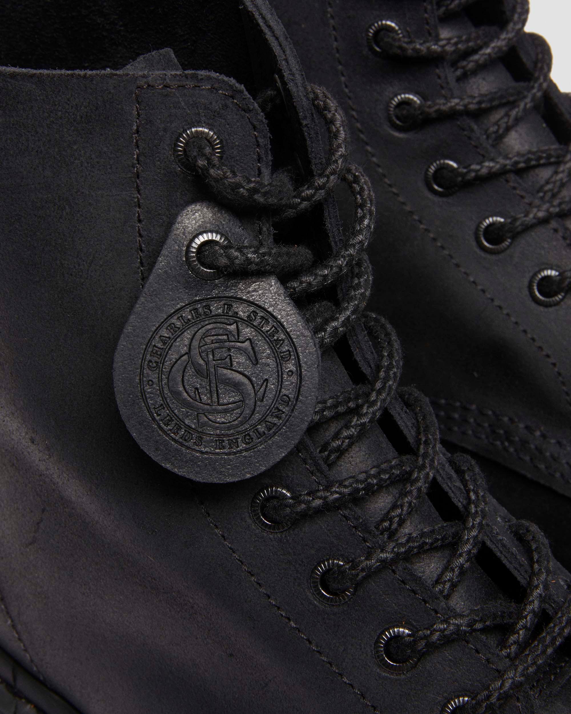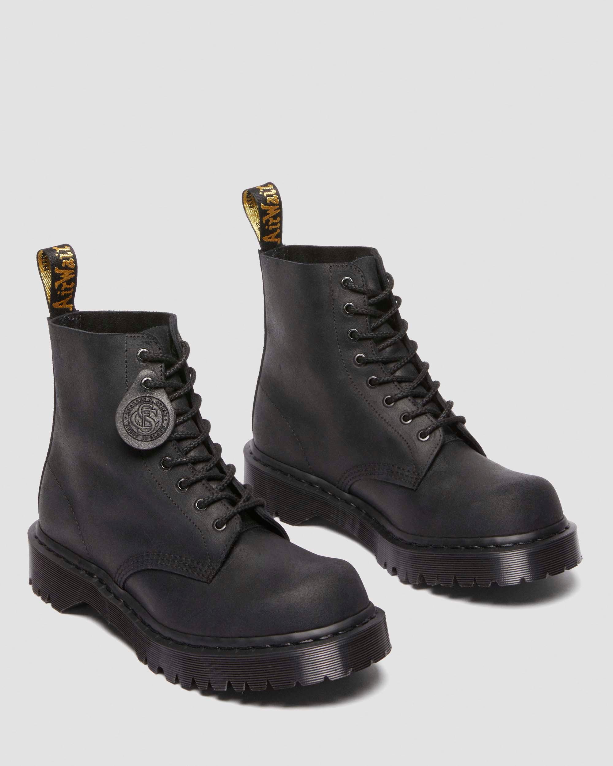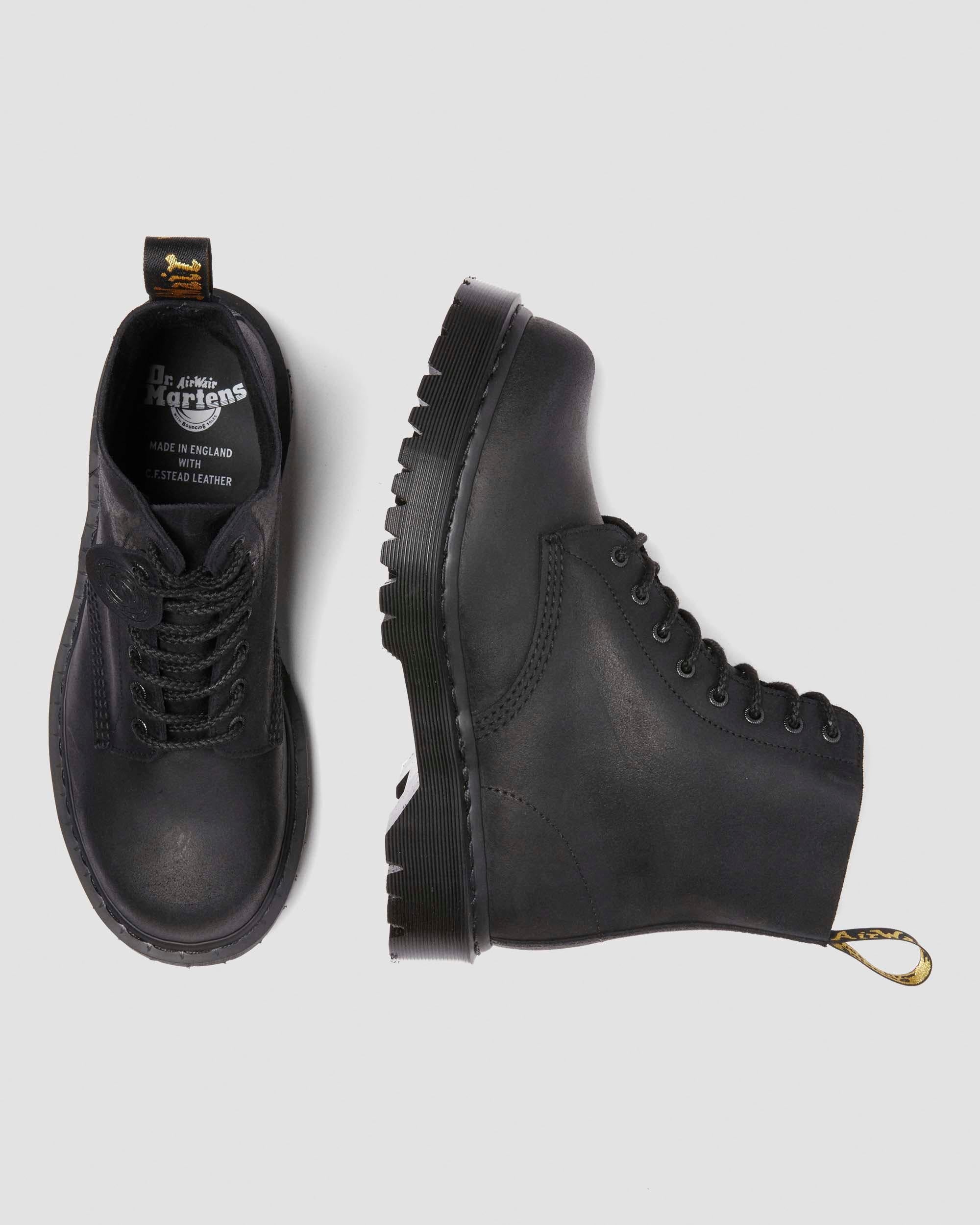 Bump up the volume. The classic 1460 boot inflated and exaggerated with a workwear-inspired bump toe design in monochrome black-on-black. Constructed from rugged Waxy Commander leather in our original English factory for premium durability. Raised on an added-height Bex outsole and secured with a stealth welt stitch. Finished with tonal braid laces and hardware. Marked as Made in England with a black and gold heel loop. Material Heavy weight deeply waxed suede with distressed two tone look Construction Goodyear Welted - the upper and sole are heat-sealed and sewn together, providing more comfort and durability for years to come. Product code 40602001 Made In England