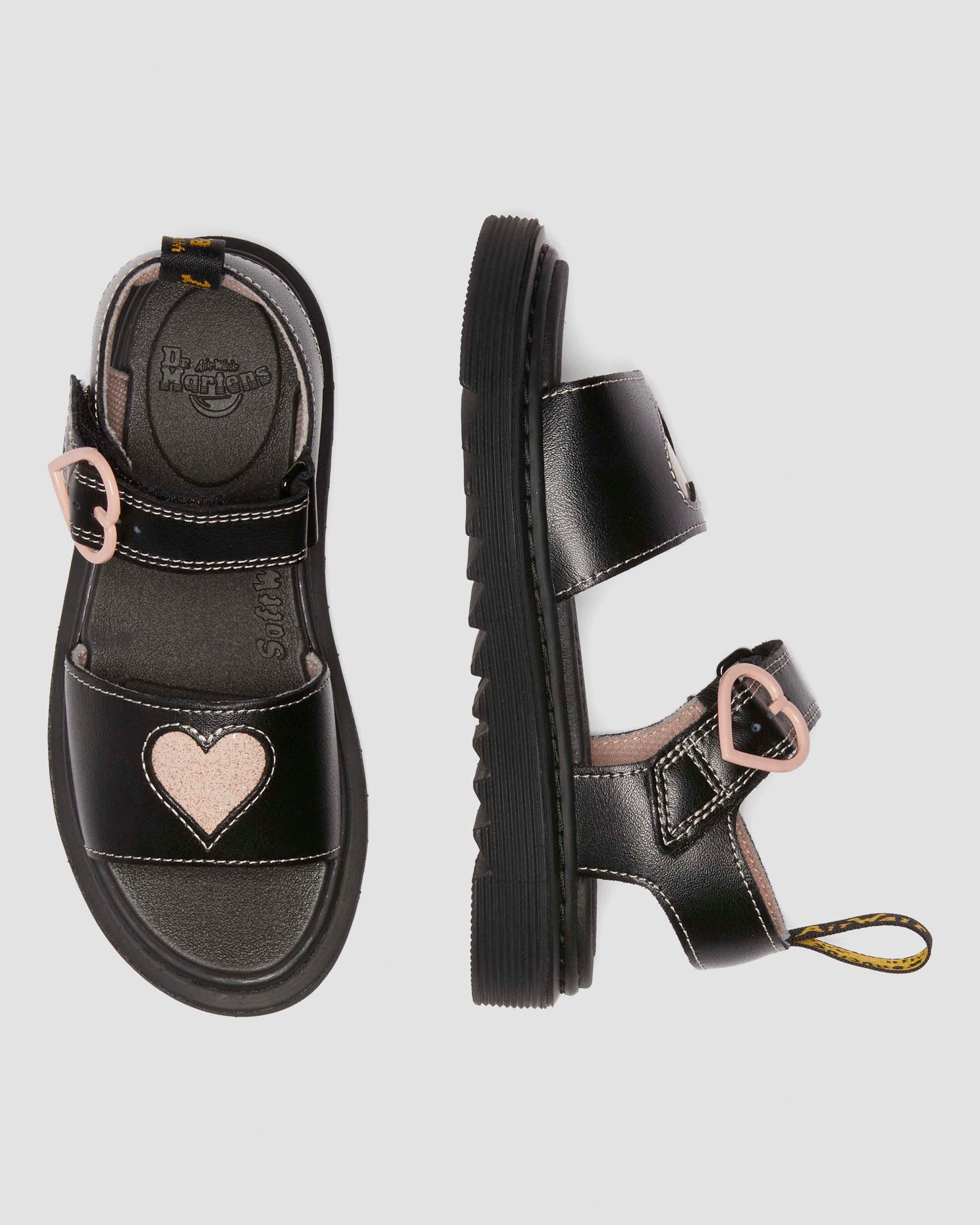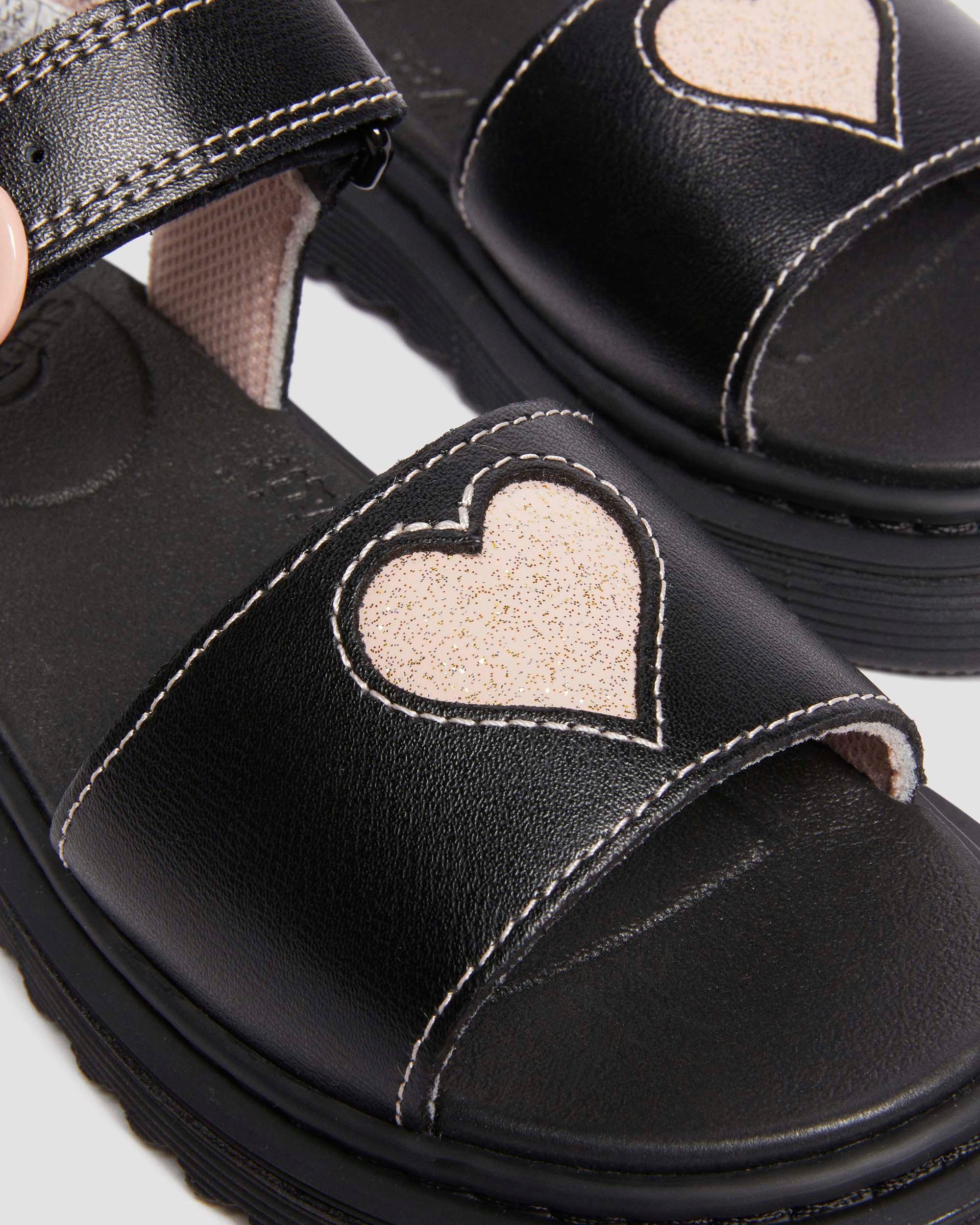 The Marlowe Hearts is a statement sandal with contrast cut-out hearts and a matching heart buckle on the adjustable rip-tap straps. Built from Nebula Glitter leather and set on a tonal lightweight sole for comfortable wear all summer long. Material PU coated casual leather with subtle grain print. Nebula Glitter - PU Coated Suede with a metallic shimmer effect. Care Instructions Wipe away dirt with a damp cloth. Construction Cemented - the sole is cemented to the upper, a durable and flexible construction for all day comfort. Product code 40778001 Sale