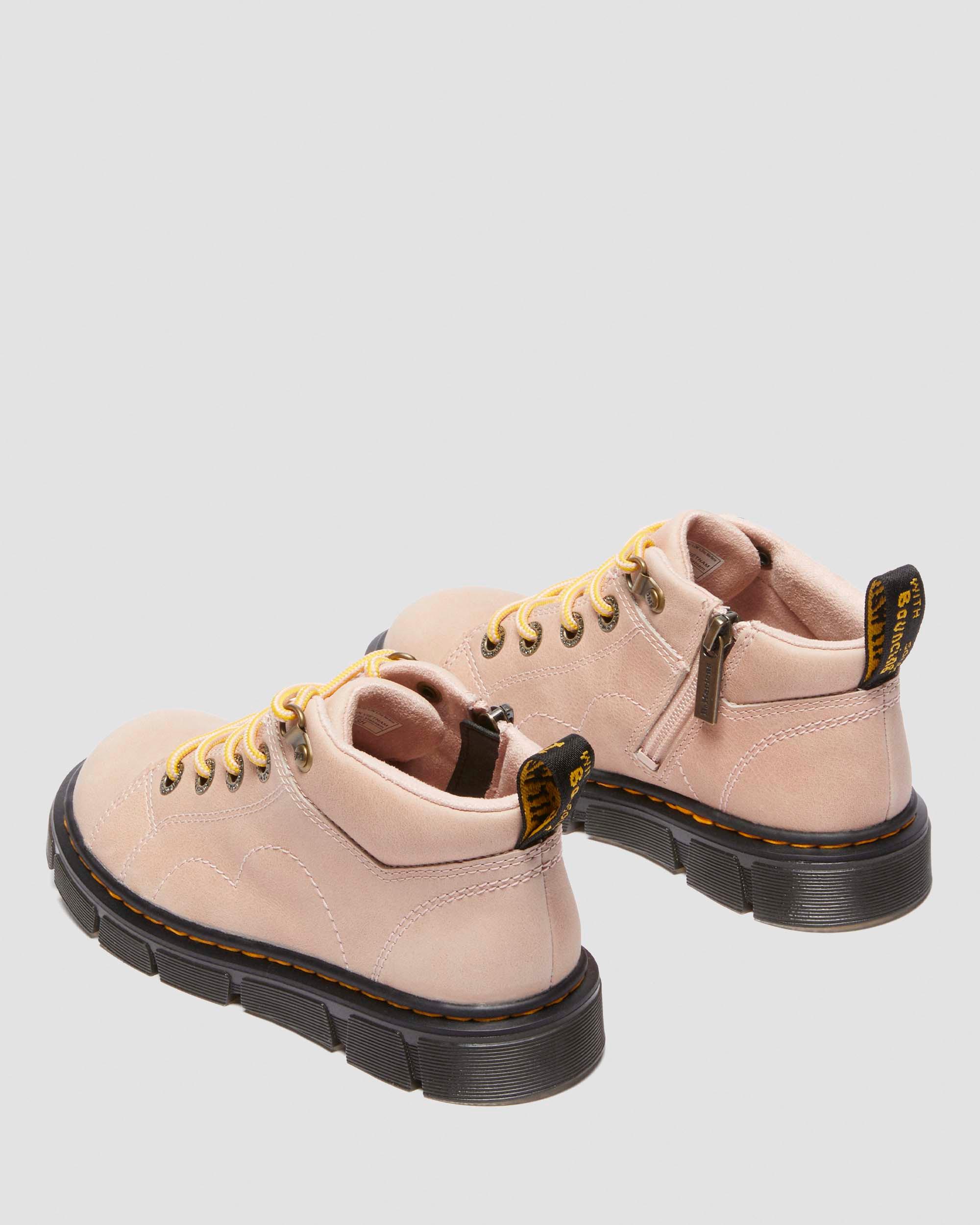 Made for growing rebels, the Raffe boot take cues from our classic Church monkey boot. Set on a flexible smoke Raffe sole, they’re kitted out with branded eyelets, a zip pull, and archival stitch details across the full grain Wilderness leather uppers. A padded ankle collar gives little feet extra comfort and flecked laces complete the utilitarian look. Material A Full Grain Nappa type leather with a waxed finish to give depth & character. Care Instructions Clean away dirt using a damp cloth and allow to dry, then apply Dr.Martens Wonder Balsam, add to shoes using the sponge applicator supplied with the product. Construction Cemented - the sole is cemented to the upper, a durable and flexible construction for all day comfort. Product code 40866650 Sale
