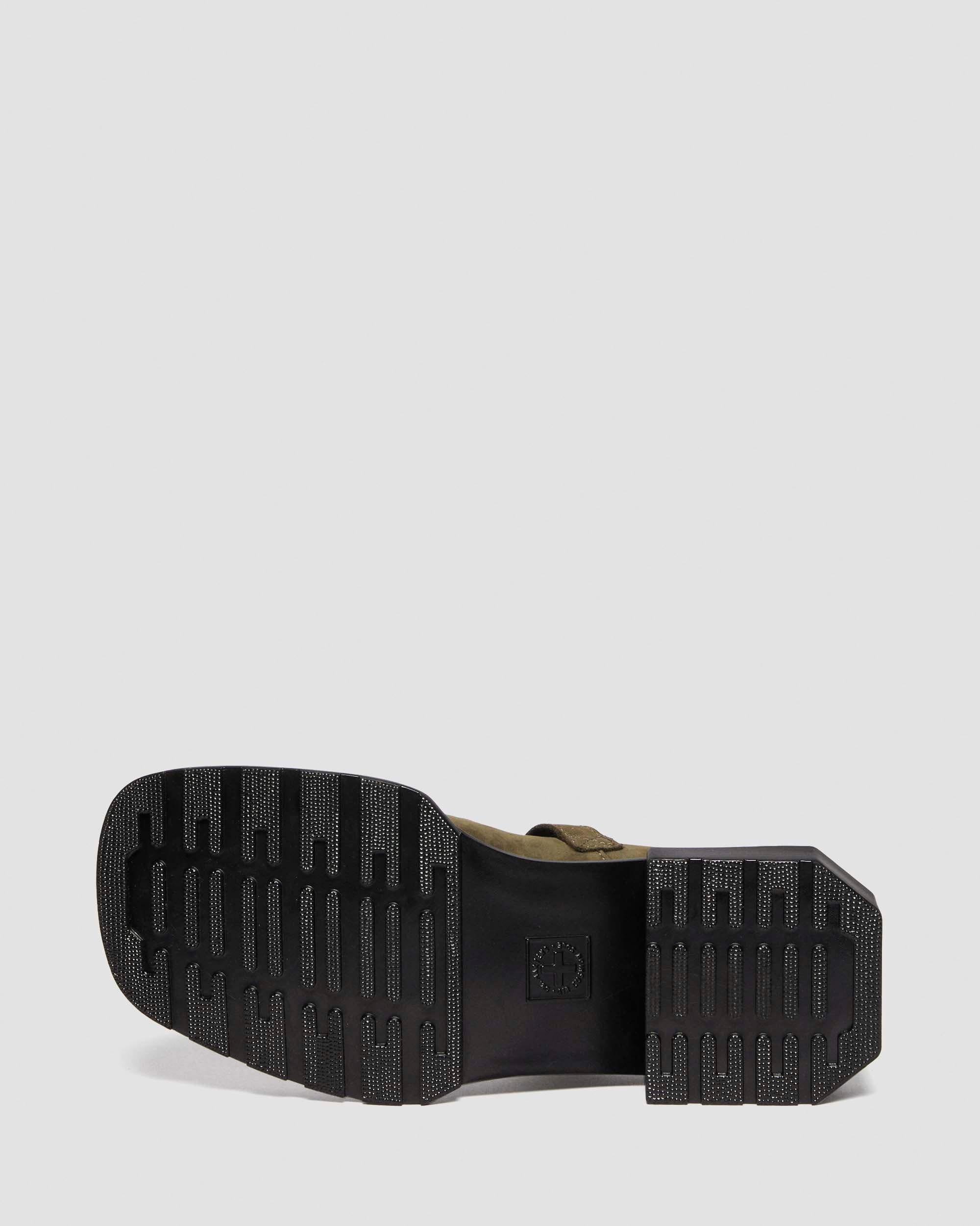 Be square. The Maybole Mary Jane shoe is an unconventional take on the classic heeled Mary Jane silhouette. An extended, angular new sole emphasises and exaggerates the square toe upper. The low-profile sole is marked with our signature grooving pattern, with distinctive corners around the outside of the heel. The strap is secured with a single, adjustable branded buckle. Material Premium naturally tumbled nubuck with excellent hand feel. Care Instructions Clean away dirt using a damp cloth and allow to dry, then apply Dr.Martens Wonder Balsam, add to shoes using the sponge applicator supplied with the product. Construction Cemented - the sole is cemented to the upper, a durable and flexible construction for all day comfort. Product code 40963300 Square Toe Boots and Shoes