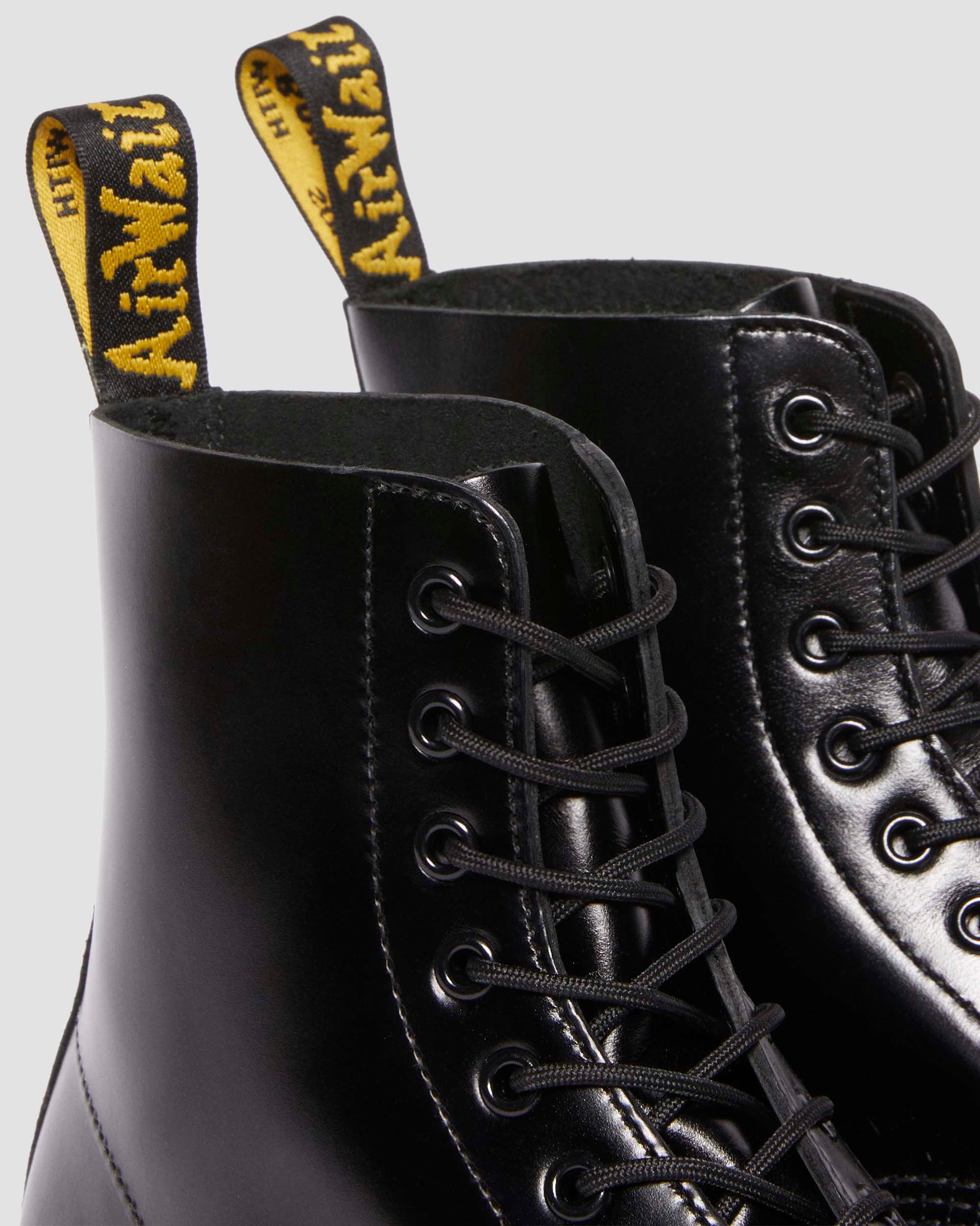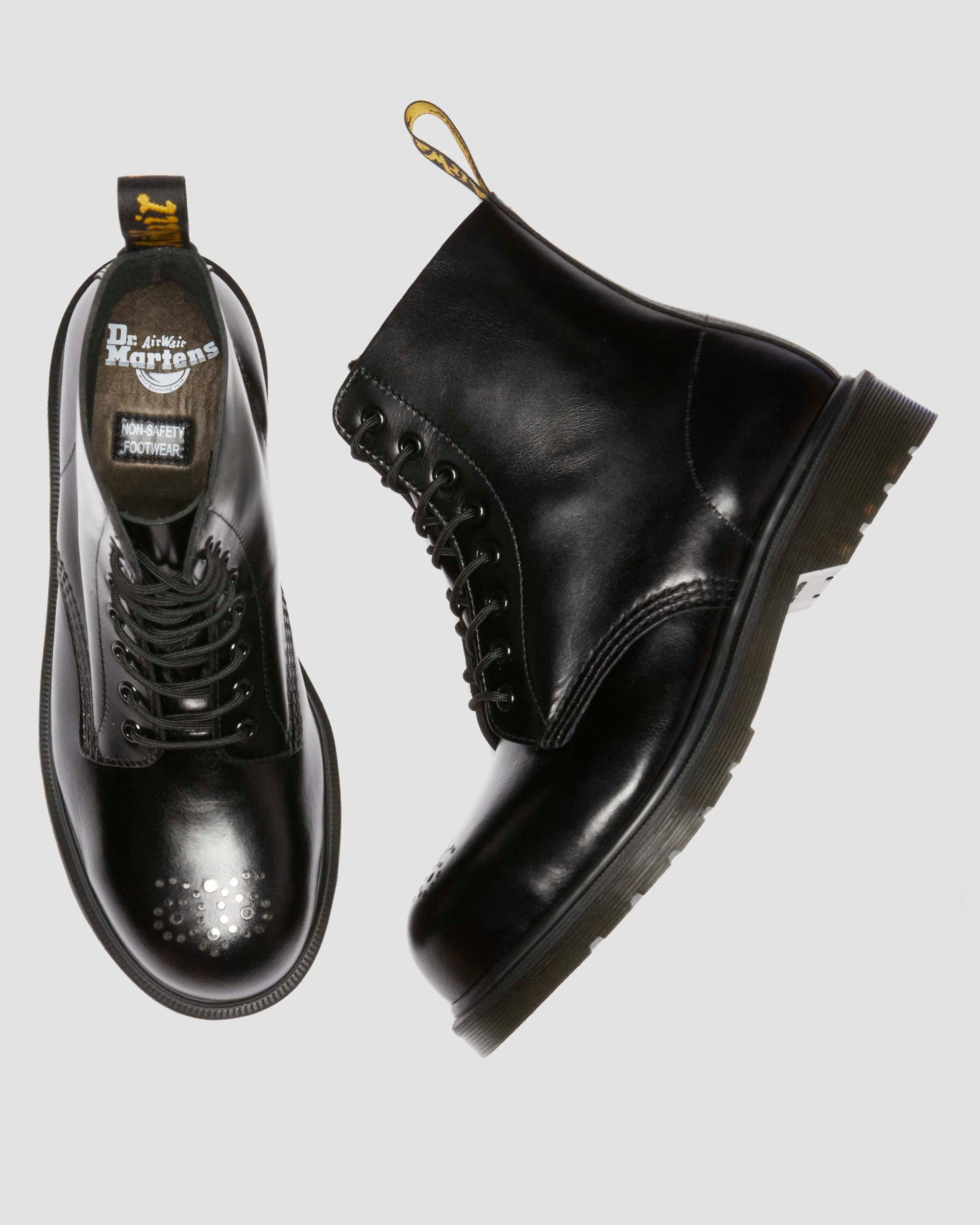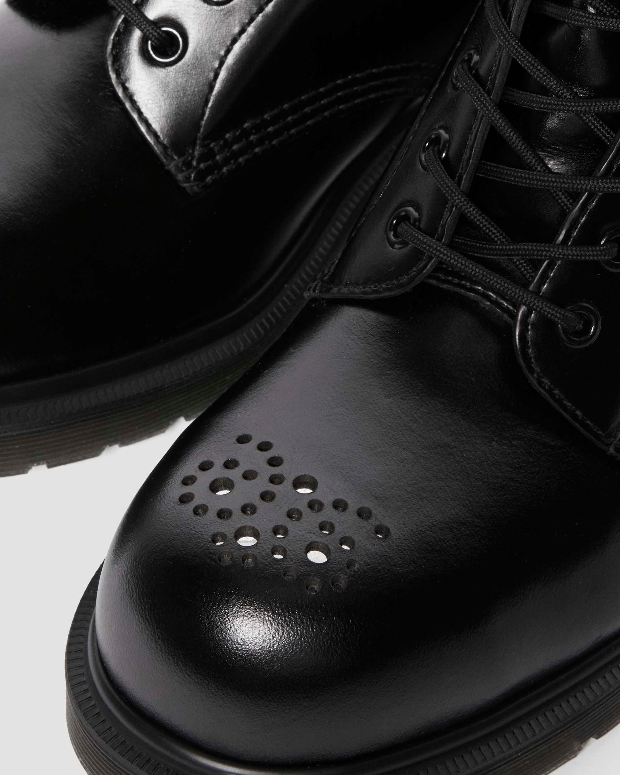 Refined industrial design. Our all-black 1460 boot exposes a workwear-inspired steel toe cap through brogue detailing. Built from soft, smooth Analine leather. Set on a classic DMS sole secured with a stealth plain welt. Finished with tonal laces and hardware. Signed with an AirWair heel loop. Material Heavy Smooth Analine leather with strong wax coat and subtle pull up effect Care Instructions Clean away dirt using a damp cloth and allow to dry, then apply Dr.Martens Wonder Balsam, add to shoes using the sponge applicator supplied with the product. Construction Goodyear Welted - the upper and sole are heat-sealed and sewn together, providing more comfort and durability for years to come. Product code 41001001 Men's Sale