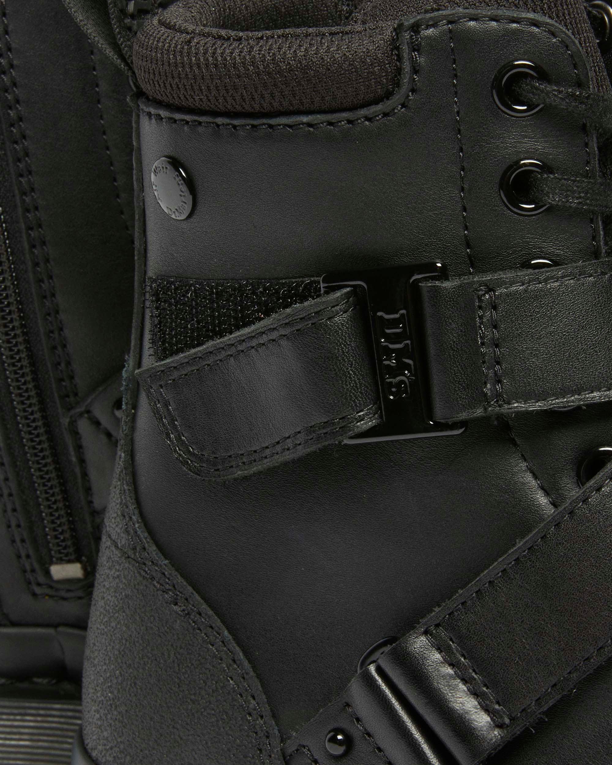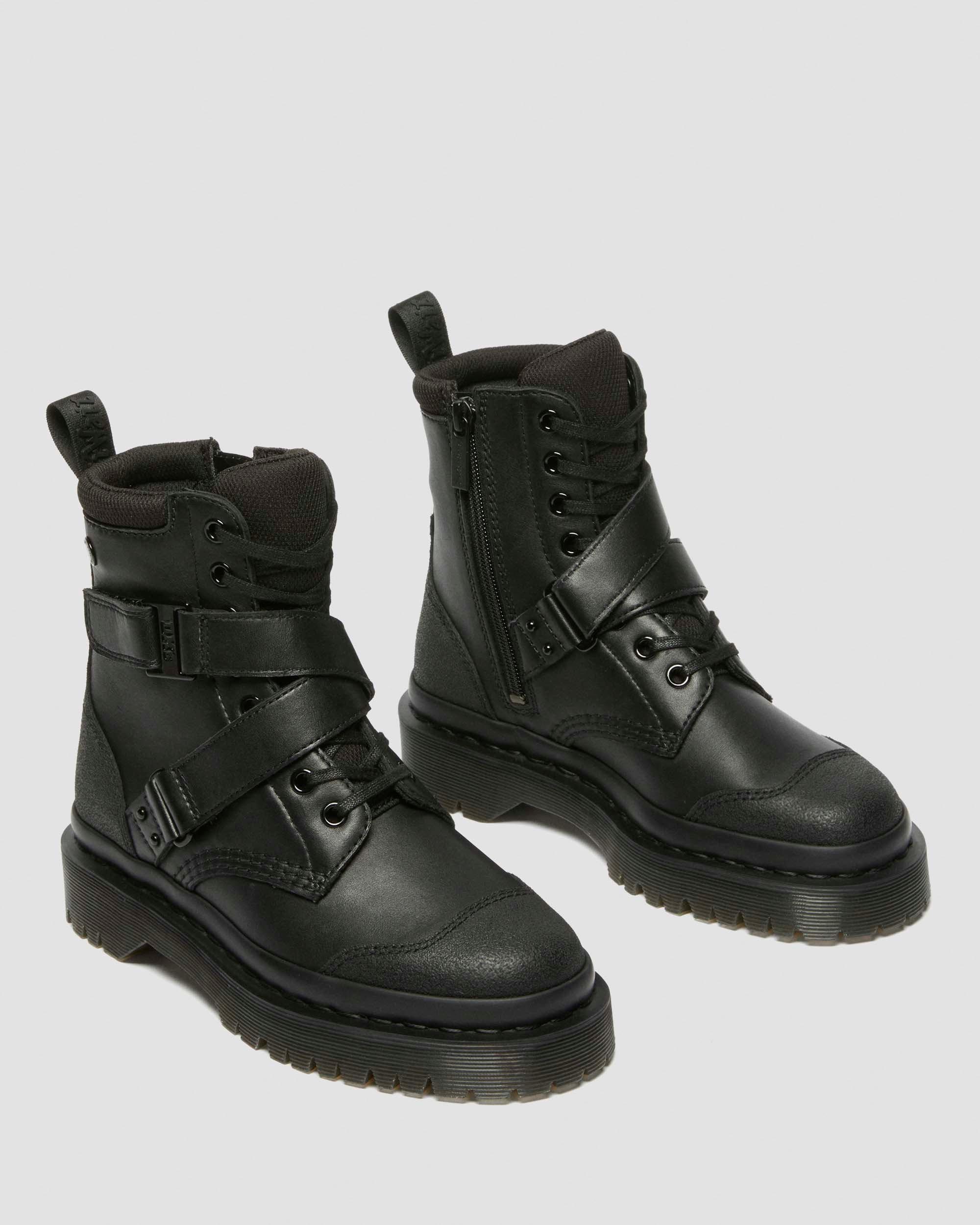 Lace up. Strap in. Our latest iteration of the 1460 boot comes topped with adjustable straps that wrap around the upper. Flat laces elevate the 8-eye silhouette, and a fully monochrome finish includes an all-black heel tab, hardware and stitching. The style is welted onto a raised Bex sole offering a slight lift. Care Instructions Wipe away dirt using a damp cloth. Apply a neutral or correct colored wax based shoe polish. Buff with a Dr. Martens Shoe Brush to restore shine as desired. Construction Goodyear Welted - the upper and sole are heat-sealed and sewn together, providing more comfort and durability for years to come. Product code 41014002 Men's Sale