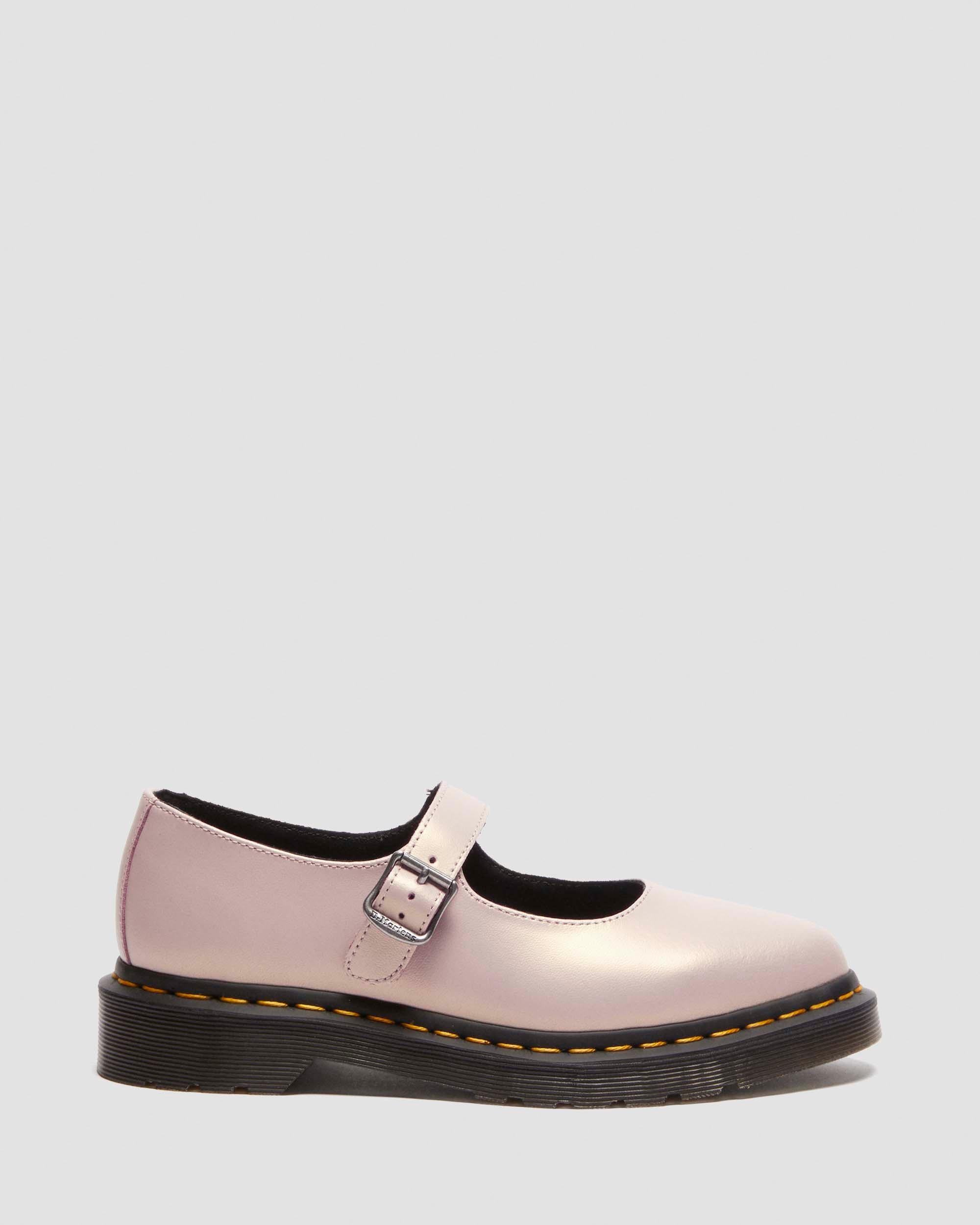 Get to the point. The Elphie ballet flat is our twist on a classic. Less dainty. More Doc’s. A pointed ballet flat shoe made from powder pink Shift leather with an iridescent finish. Fastened with a single strap with a DM’s branded buckle. The tapered sole is marked with DM’s signature grooving pattern and secured with yellow welt stitching. Material PU Coated Suede with a metallic shimmer effect Care Instructions Wipe away dirt with a damp cloth. Construction Goodyear Welted - the upper and sole are heat-sealed and sewn together, providing more comfort and durability for years to come. Product code 41092650 Men's Sale