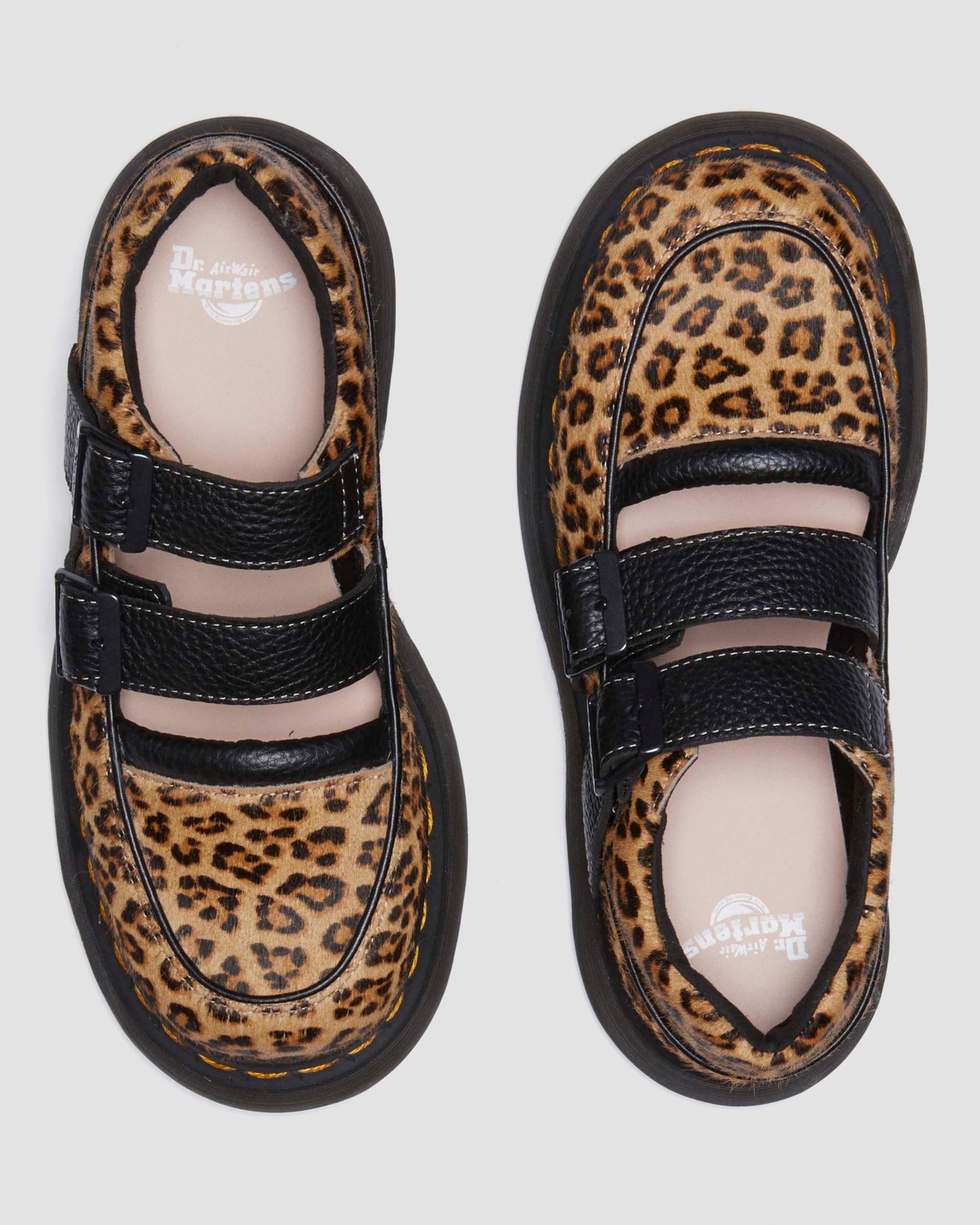 Buzzing from the sole up. The Buzz Mary Jane shoe stands on our new inflated Buzz sole. A barrel-edge PVC platform marked with DM’s grooving, yellow welt stitching, and a leaf pattern on the undersole. The upper is made from leopard print Hair On leather with a comfortable padded collar. Fastened with 2 adjustable leather straps with branded clasps. Material Genuine hair-on Cow leather with a Leopard Print. Care Instructions Brush gently with soft hair brush only Construction Goodyear Welted - the upper and sole are heat-sealed and sewn together, providing more comfort and durability for years to come. Product code 41128200 Gifts For All