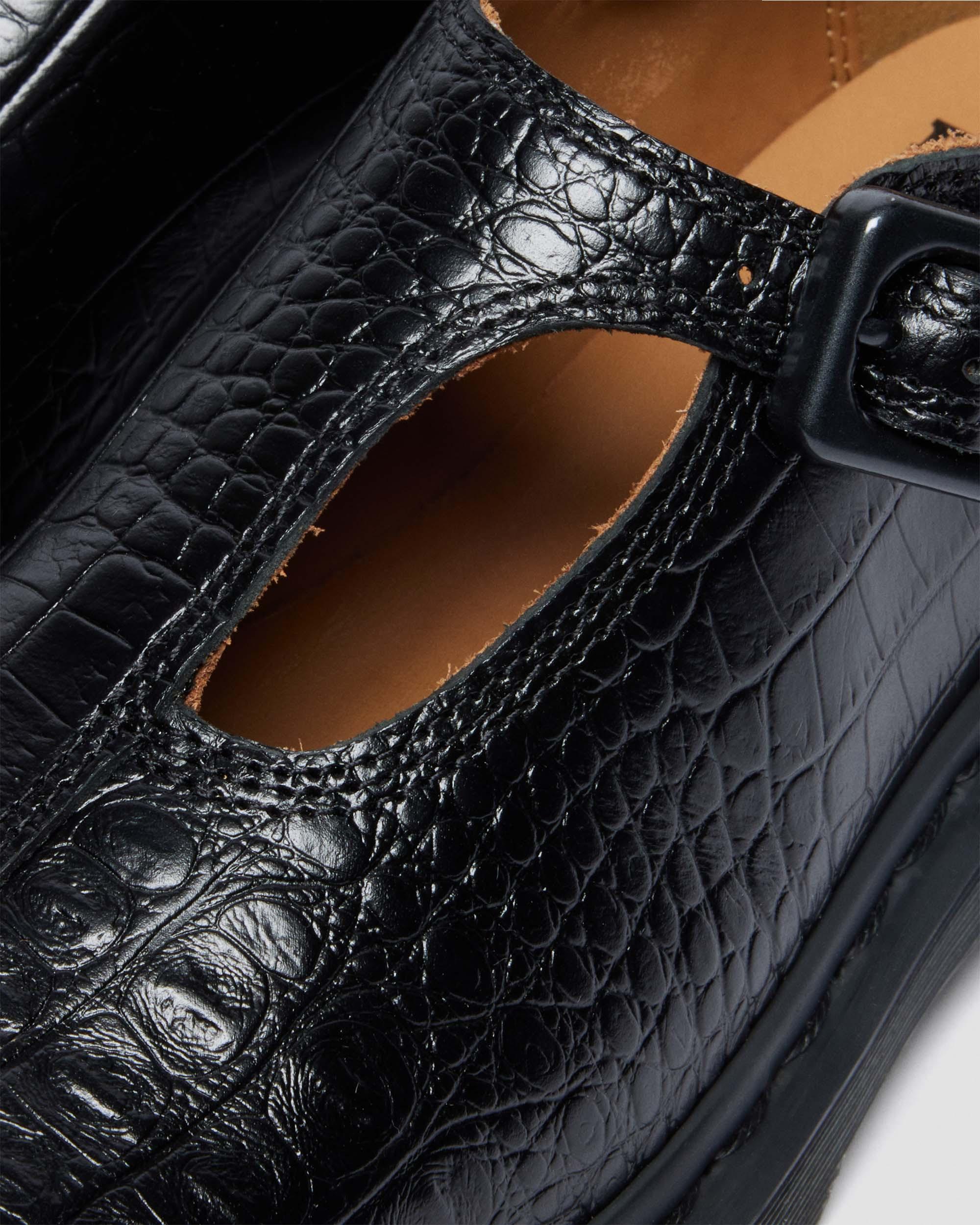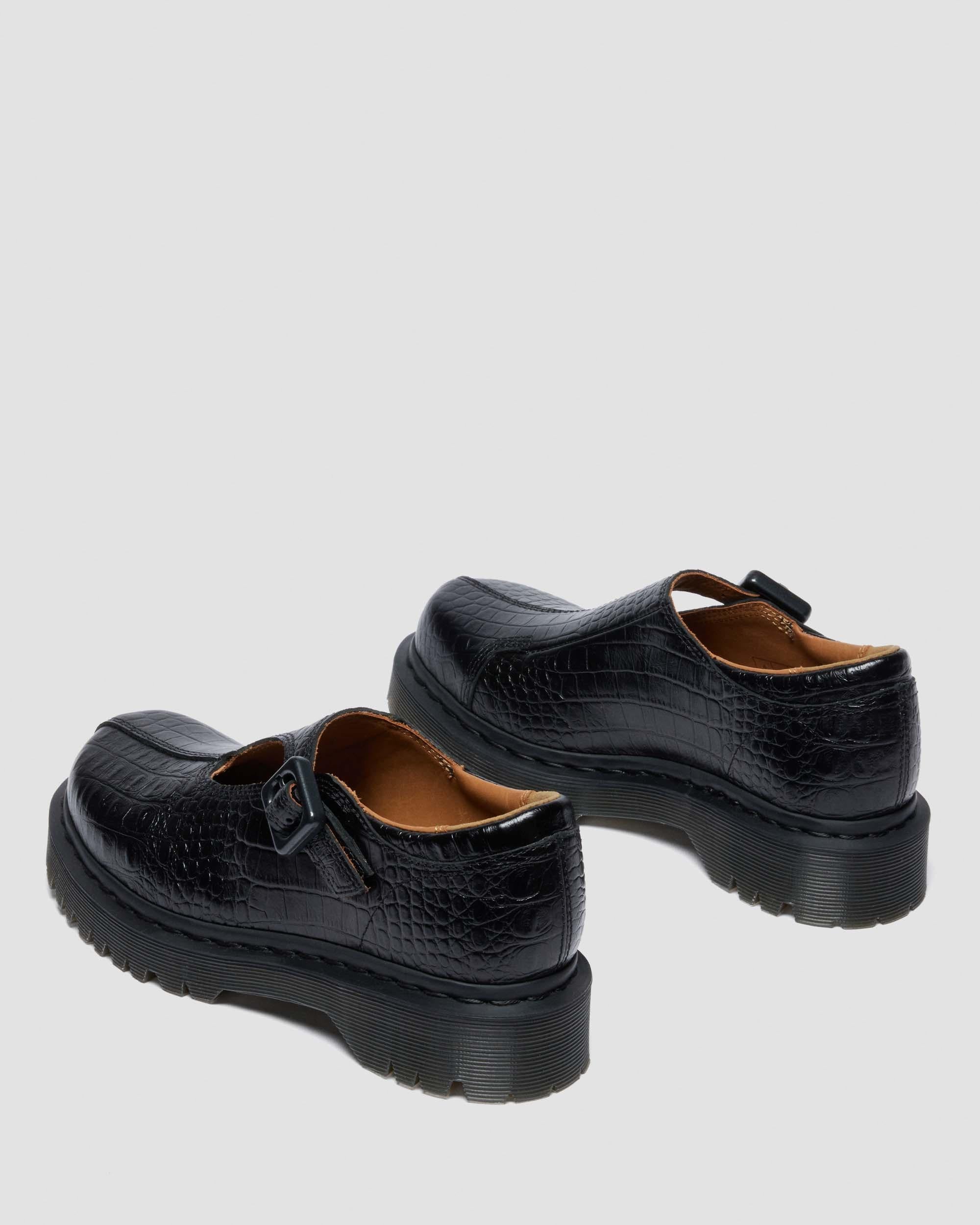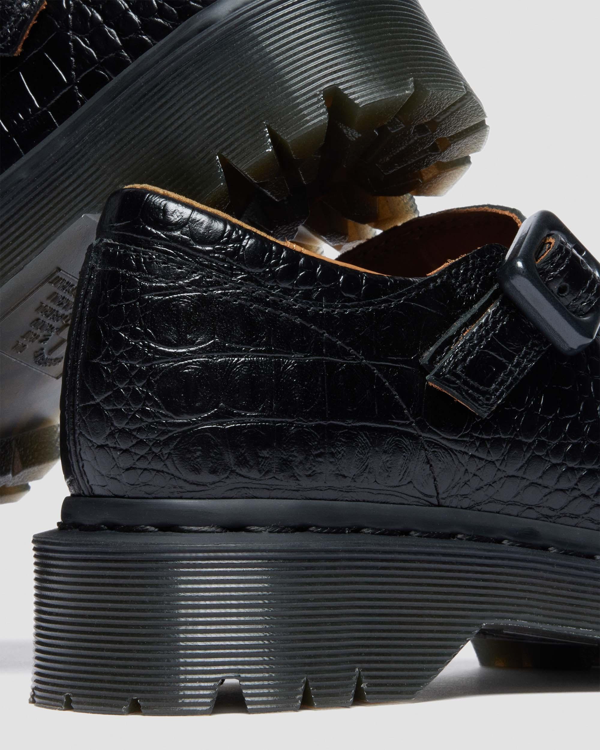 A new angle for DM’s shoe. The Rejena Mary Jane subtly squares the bump toe design for a sleek new form. Expertly crafted from Analine leather embossed with a crocodile skin design. The asymmetric shoe is fitted with a single buckle and off-center cut out for a refined silhouette. Set on an extra height Bex sole in smoke with a black welt stitch. Material Croc Embossed Analine leather with strong wax coat and subtle pull up effect Care Instructions Clean away dirt using a damp cloth and allow to dry, then apply Dr.Martens Wonder Balsam, add to shoes using the sponge applicator supplied with the product. Construction Goodyear Welted - the upper and sole are heat-sealed and sewn together, providing more comfort and durability for years to come. Product code 41254001 Gifts For All