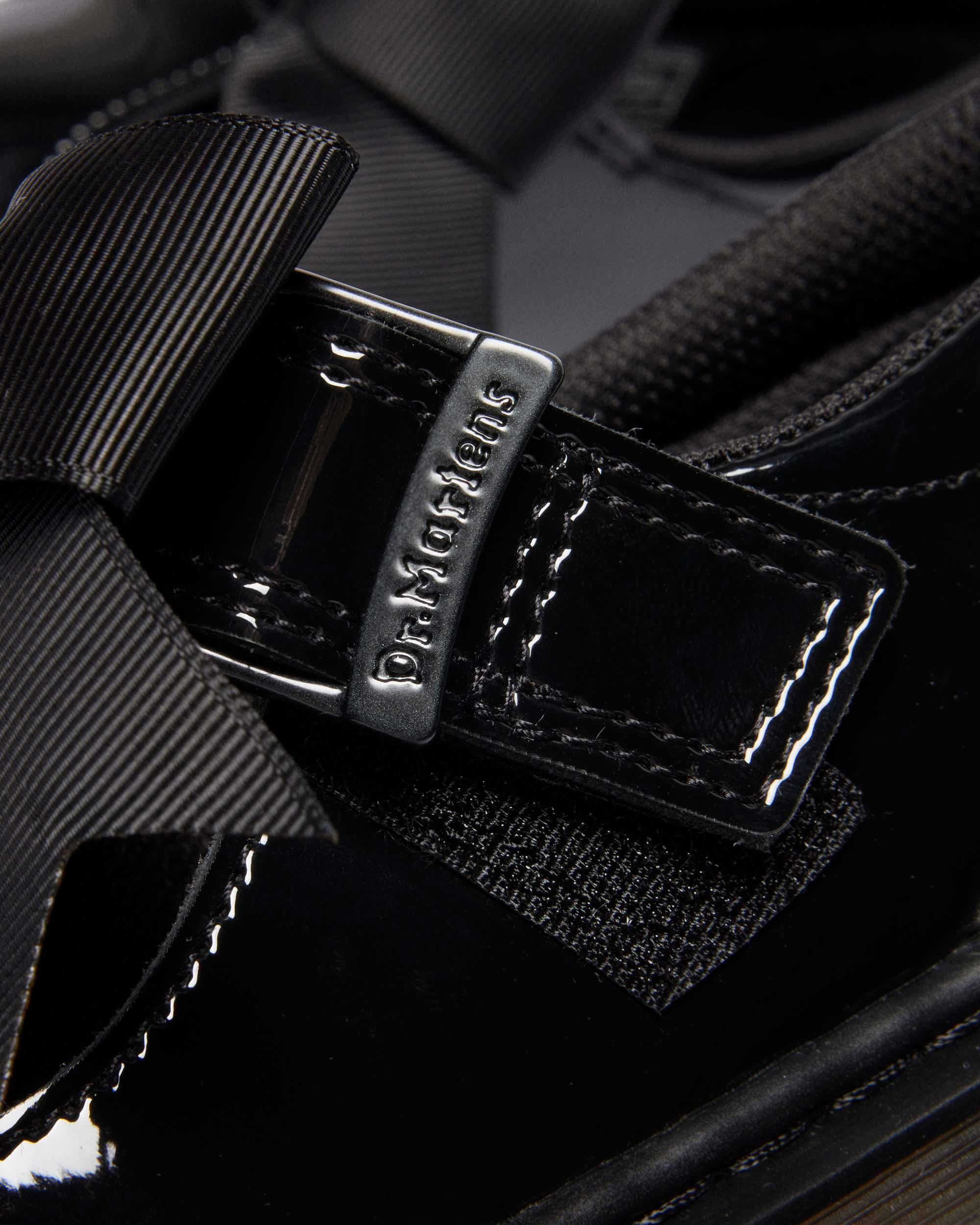 Shined up and bow-tied. The Polley II Bow shoe wraps up durable construction and play-ready attitude. Black Patent Lamper leather gives the shoe a polished look. Across the upper, you’ll find a riptape fastening strap, oversized grosgrain bow and a heart-shaped rivet. A wingtip and shaped heel counter sculpt the back of the shoe, and a cemented smoke DMS Kids sole with grooving guarantees comfort with every wear. Material A leather with a classic patent effect. Care Instructions Wipe away dirt with a damp cloth. Spray Dr. Martens Patent Leather Cleaner evenly on to footwear wiping off any excess with a clean cloth. Once dry, buff vigorously to desired shine with a Dr. Martens Shoe Brush. Construction Cemented - the sole is cemented to the upper, a durable and flexible construction for all day comfort. Product code 41476001 Gifts For All