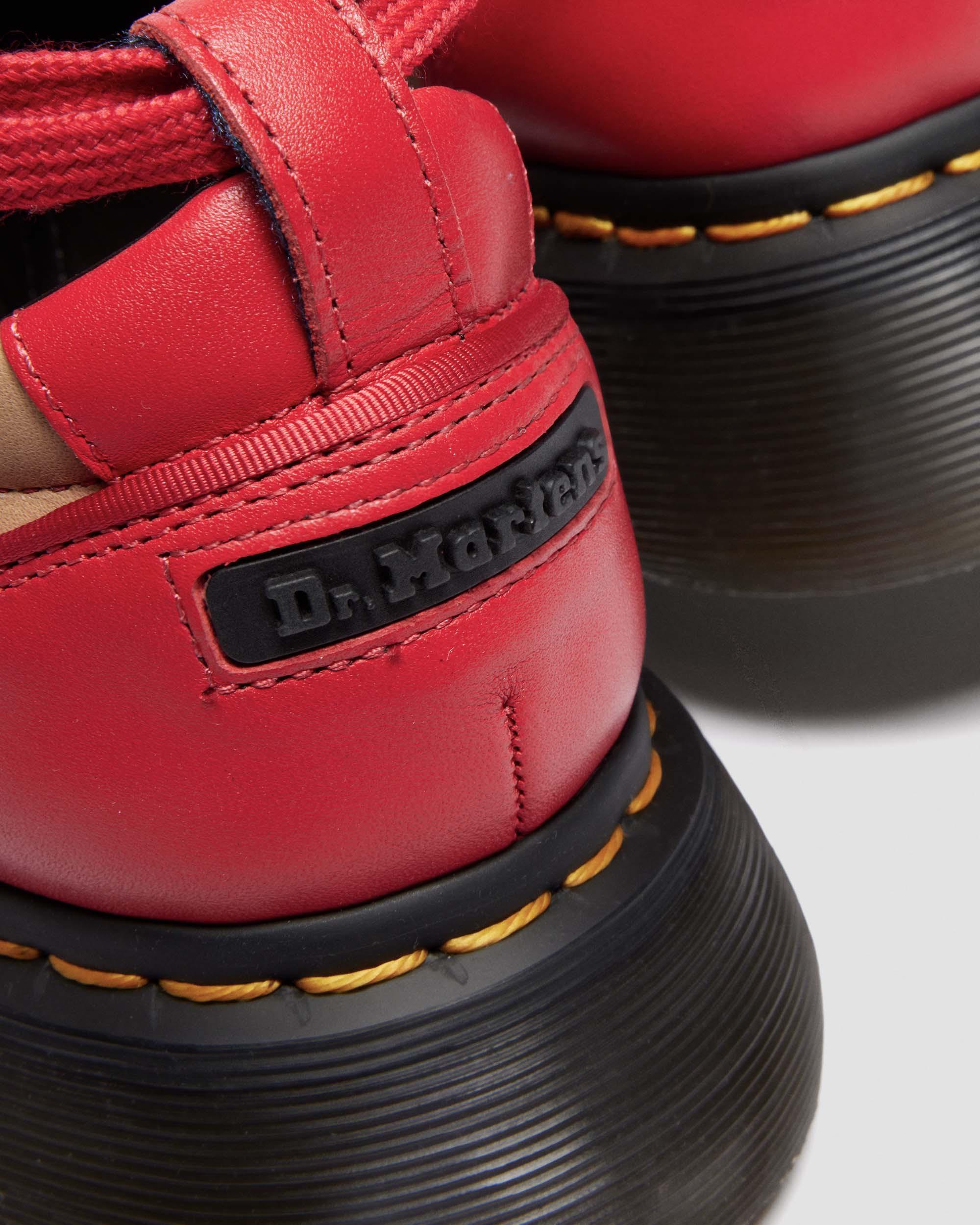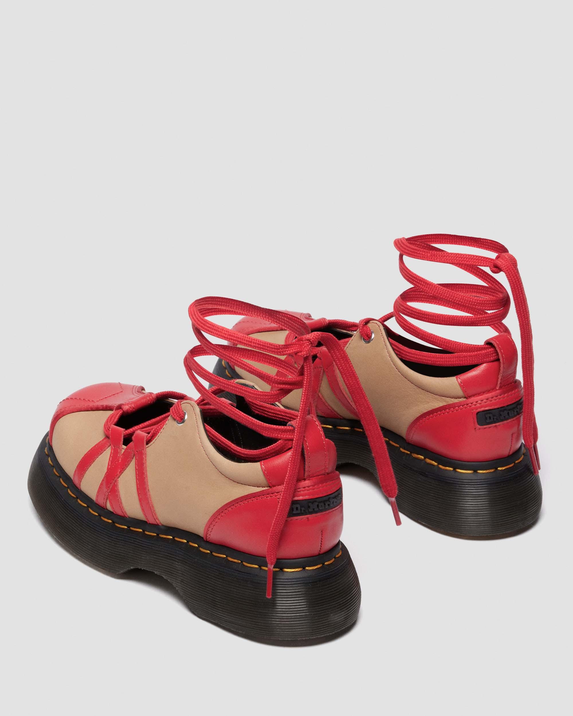 Our 90s-inspired Buzz sole meets its perfect match in a new ballerina-style lace-up shoe that combines delicate details with exaggerated proportions. Made with a combination of Analine and Nappa Lux leather with contrasting colours across the upper. Crafted with a cut-out vamp and extra-long, wraparound red laces. Our barrel edge platform Buzz sole is marked with DM’s grooving, yellow welt stitching, and statement leaf pattern on the undersole. Material Heavy Smooth Aniline leather with strong wax coat and subtle pull up effect. Nappa Lux is a classic Nappa leather — soft and smooth to the touch. Care Instructions Clean away dirt using a damp cloth and allow to dry, then apply Dr.Martens Wonder Balsam, add to shoes using the sponge applicator supplied with the product. Construction Goodyear Welted - the upper and sole are heat-sealed and sewn together, providing more comfort and durability for years to come. Product code 41611600 Platforms