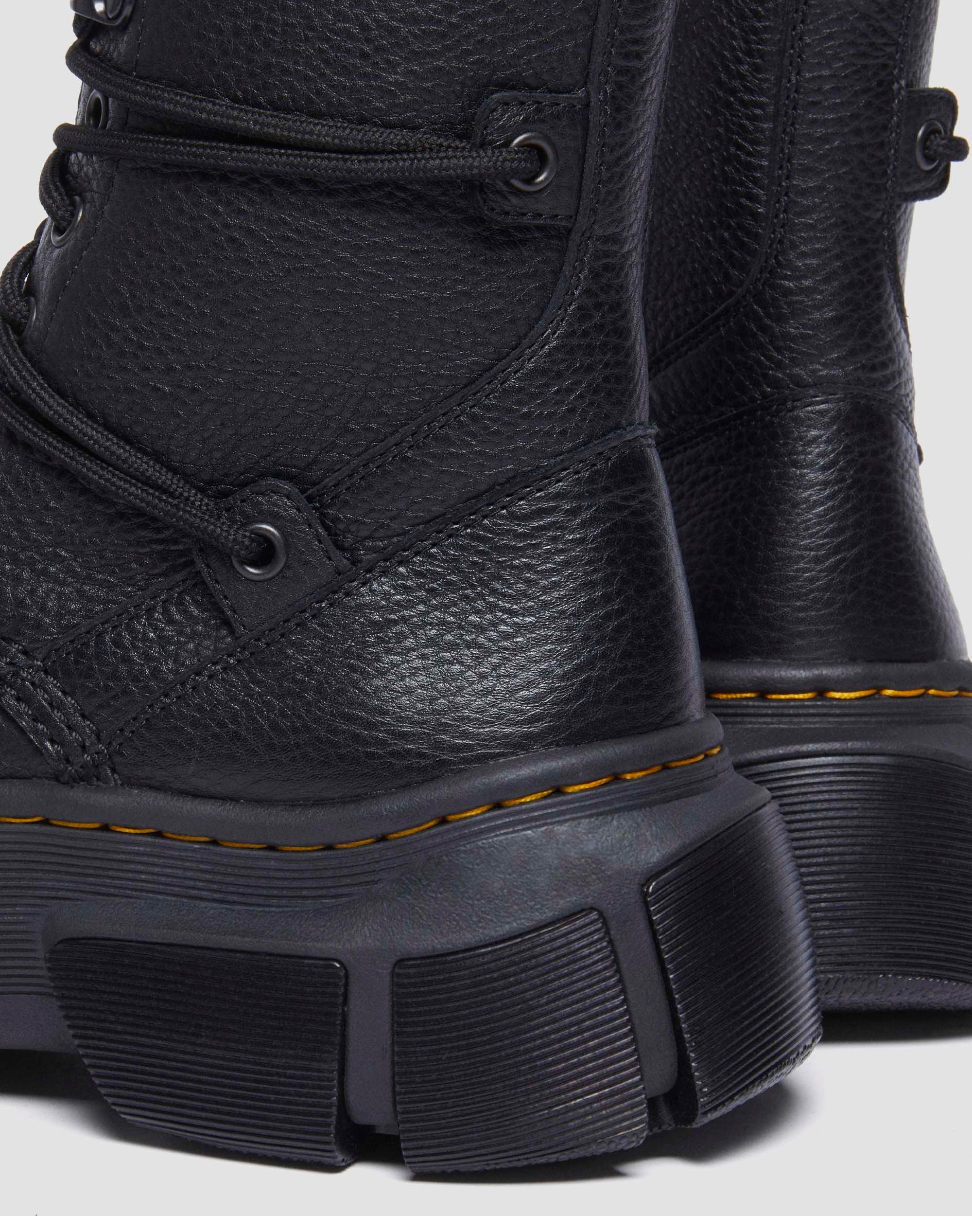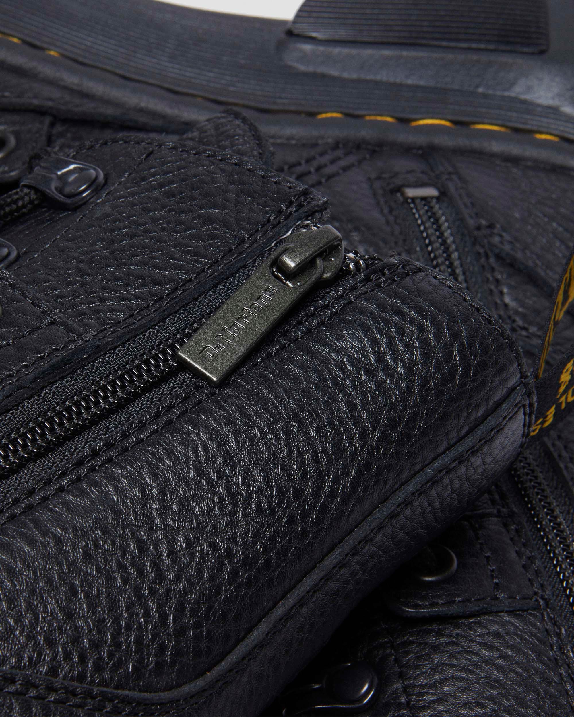 Big sole. XL comfort. The DMXL sole is made to move — looks tough, feels easy. Our 8-eye boot is reimagined with our blown-out DMXL sole. Combining lightweight EVA with durable PVC pods and an exaggerated tread. Fitted with a SoftWair insole for cushioning and support on the move. The boot has a lacing system that extends down the toe and around the sides of the boot for an extra-secure fit — finished with an inside zip so you can slip the boot off without unlacing. Made from soft Lunar and Rubber Grain leather with toecap stitch detailing. Signed with yellow stitching and our black and yellow heel loop. Material Lunar - Soft full grain Nappa Leather with Milled appearance. Rubber Grained Leather - PU coated leather with emboss design. Care Instructions Clean away dirt using a damp cloth and allow to dry, then apply Dr.Martens Wonder Balsam, add to shoes using the sponge applicator supplied with the product. Construction Goodyear Welted - the upper and sole are heat-sealed and sewn together, providing more comfort and durability for years to come. Product code 41646001 Lighter Weight Boots & Shoes