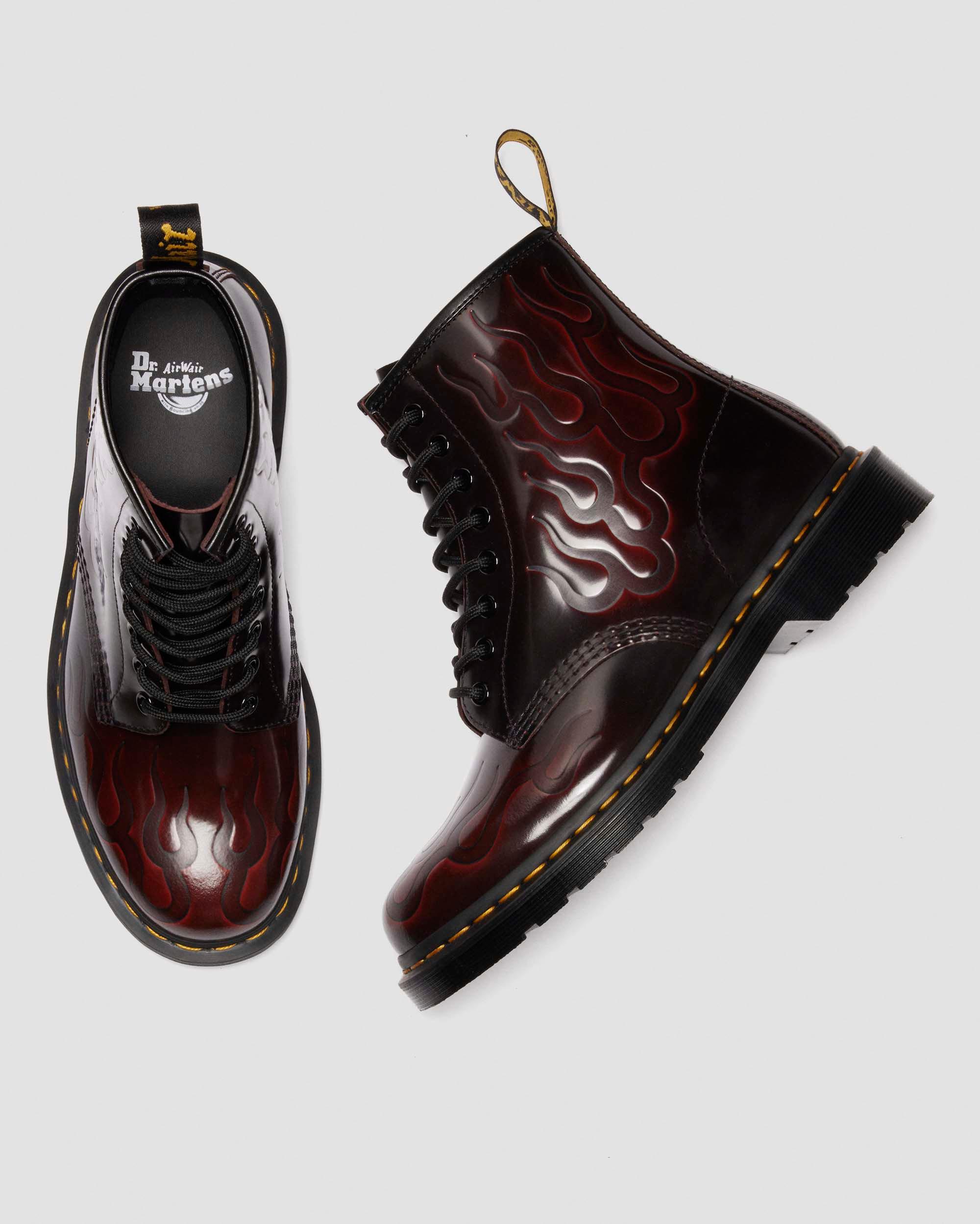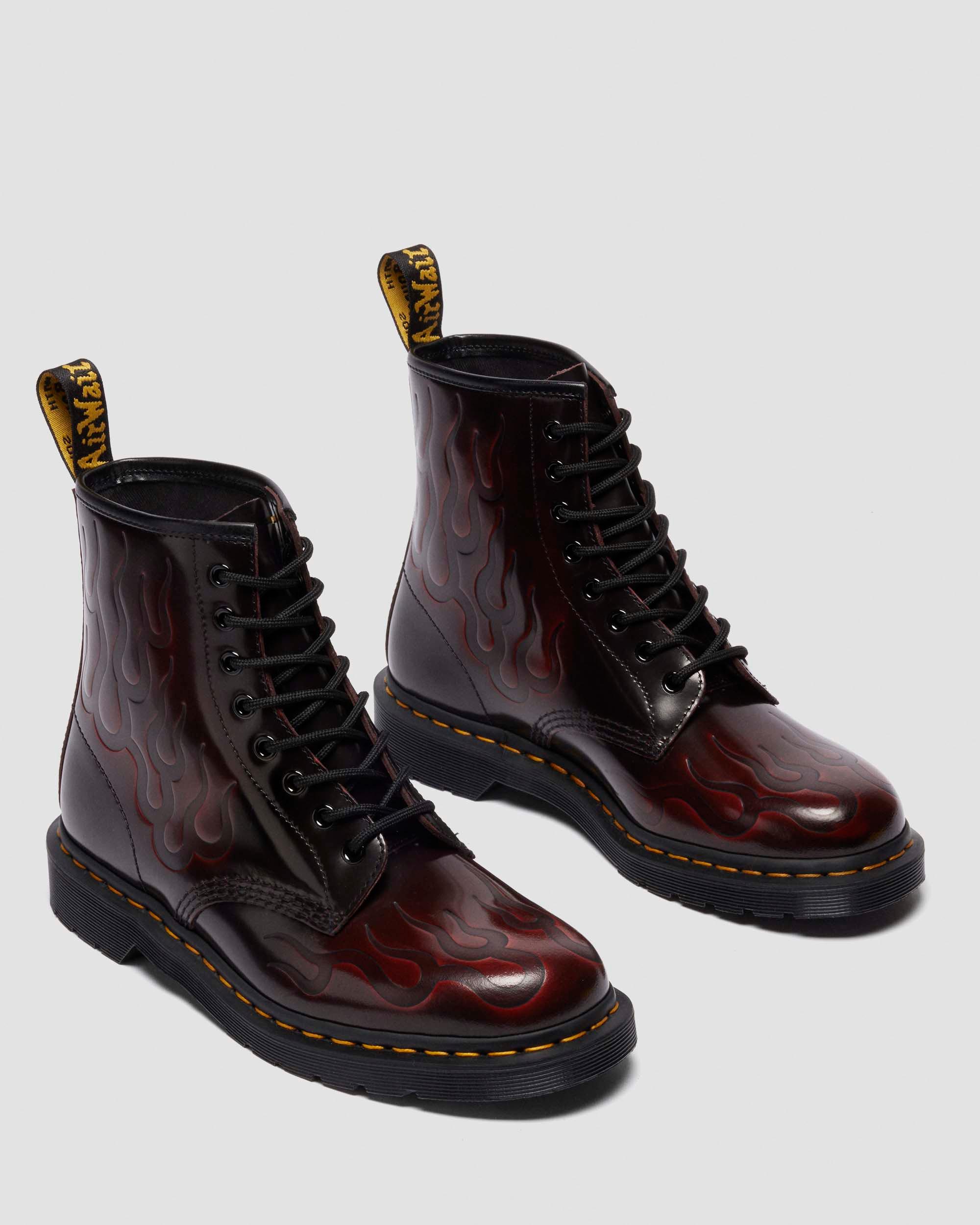 Scorched leather. Timeless design. The 1460 Inferno boot is forged with flame-etched two-tone Arcadia leather. The leather’s rub off characteristic means the color will gradually shift over time as the topcoat wears off to reveal the cherry red base color. The boot stands on our heat-sealed, air-cushioned DMS sole, marked with distinctive grooving and a yellow welt stitch. Finished with our scripted black and yellow heel loop. Material A high-shine leather with a base dye and contrasting topcoat, which is rubbed off to reveal the underlying color. Care Instructions Clean away dirt using a damp cloth, allow to dry. Care should be taken when using any cleaners, as this could impact the 2 tone effect. Do not use any leather cleaners on this leather they could damage the 2 tone effect. Construction Goodyear Welted - the upper and sole are heat-sealed and sewn together, providing more comfort and durability for years to come. Product code 41764600 Gifts For All