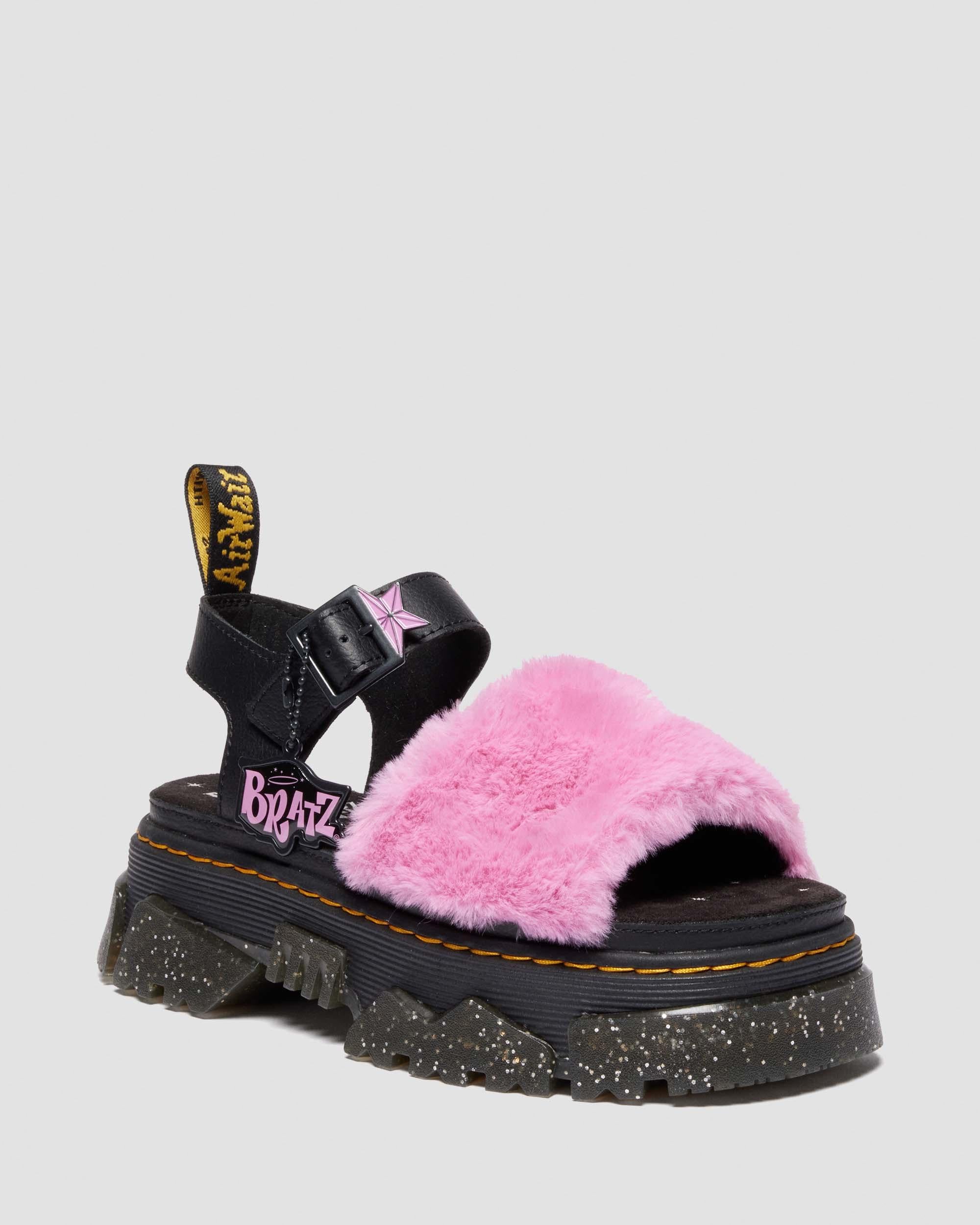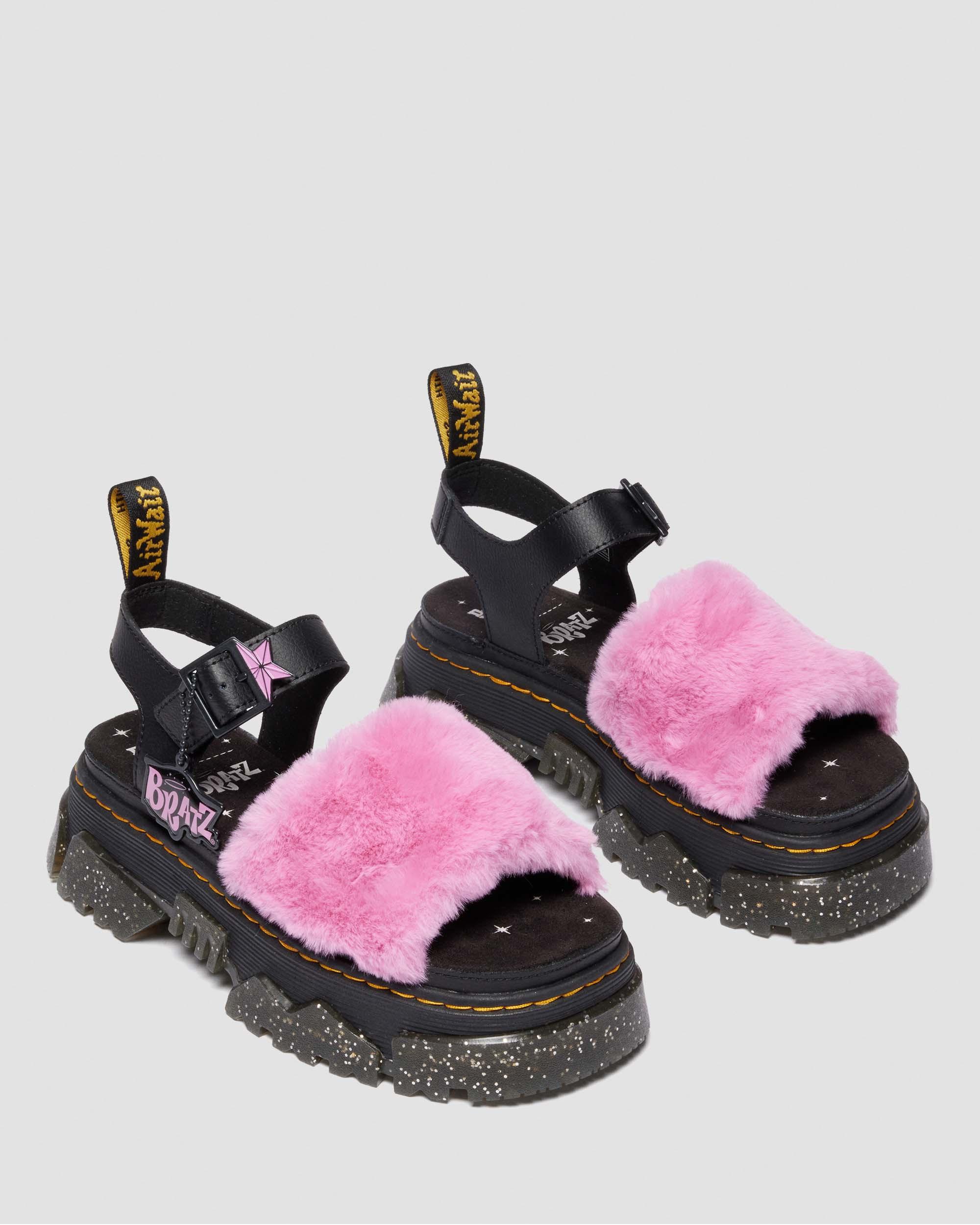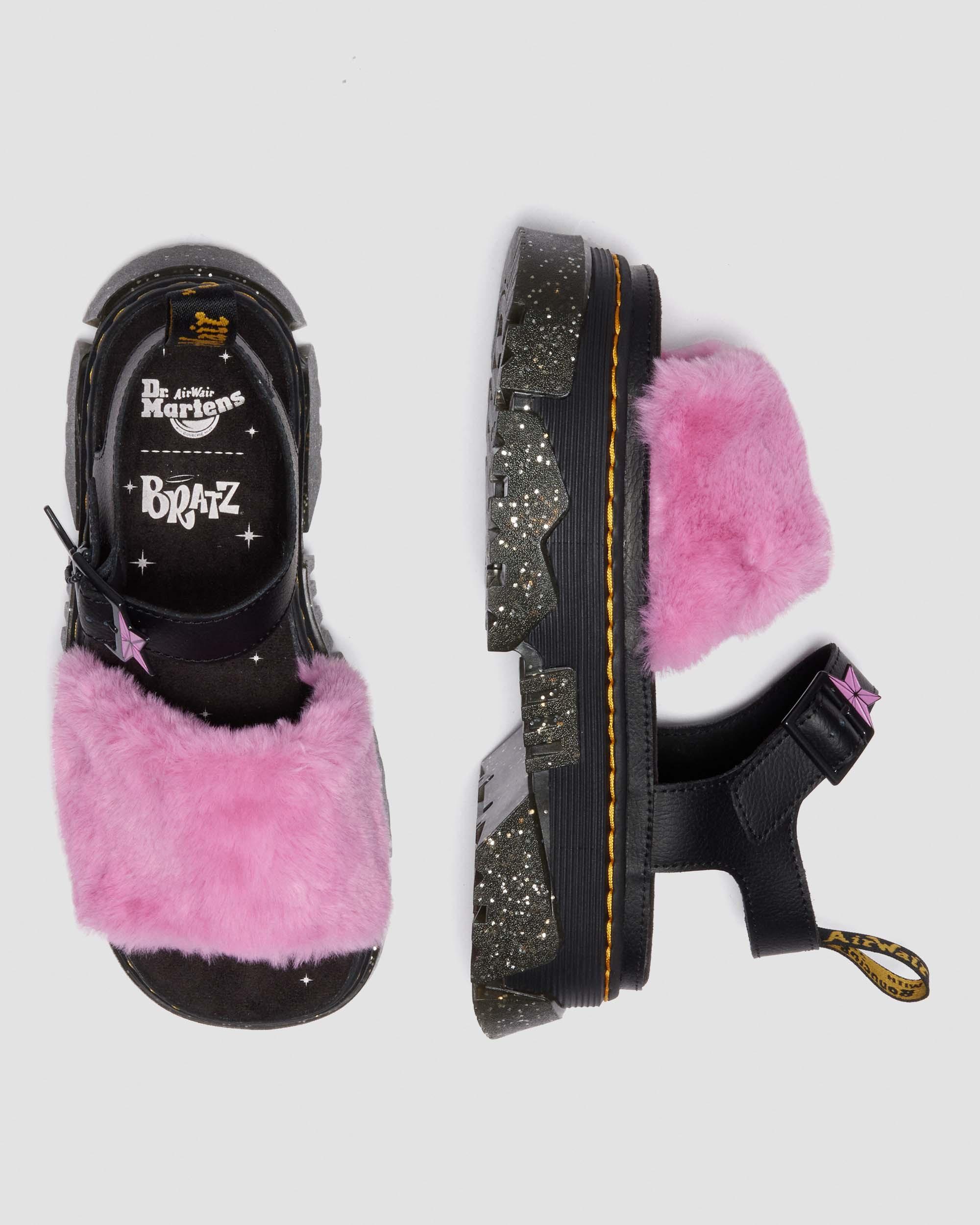 Ready for my close-up. Our newest sandal sole gets a Bratz-approved update in the Mattison Strap sandal. The Mattison is an unmissable new platform sole – designed in comfortable EVA with an exaggerated PVC tread that extends up the side walls to create a jagged pattern. This one gets a dose of bratitude with a glittery sole and a fluffy faux-fur strap across the foot. It’s finished with a star buckle, a Bratz dog tag charm, and signature DM’s details in the heel loop and yellow stitch. Material Milo Fur - Faux fur. Athena - Smooth PU Coated Leather with a Matt Finish. Care Instructions Wipe away dirt with a damp cloth. Construction Cemented - the sole is cemented to the upper, a durable and flexible construction for all day comfort. Product code 41788650 Women's Platform Sandals