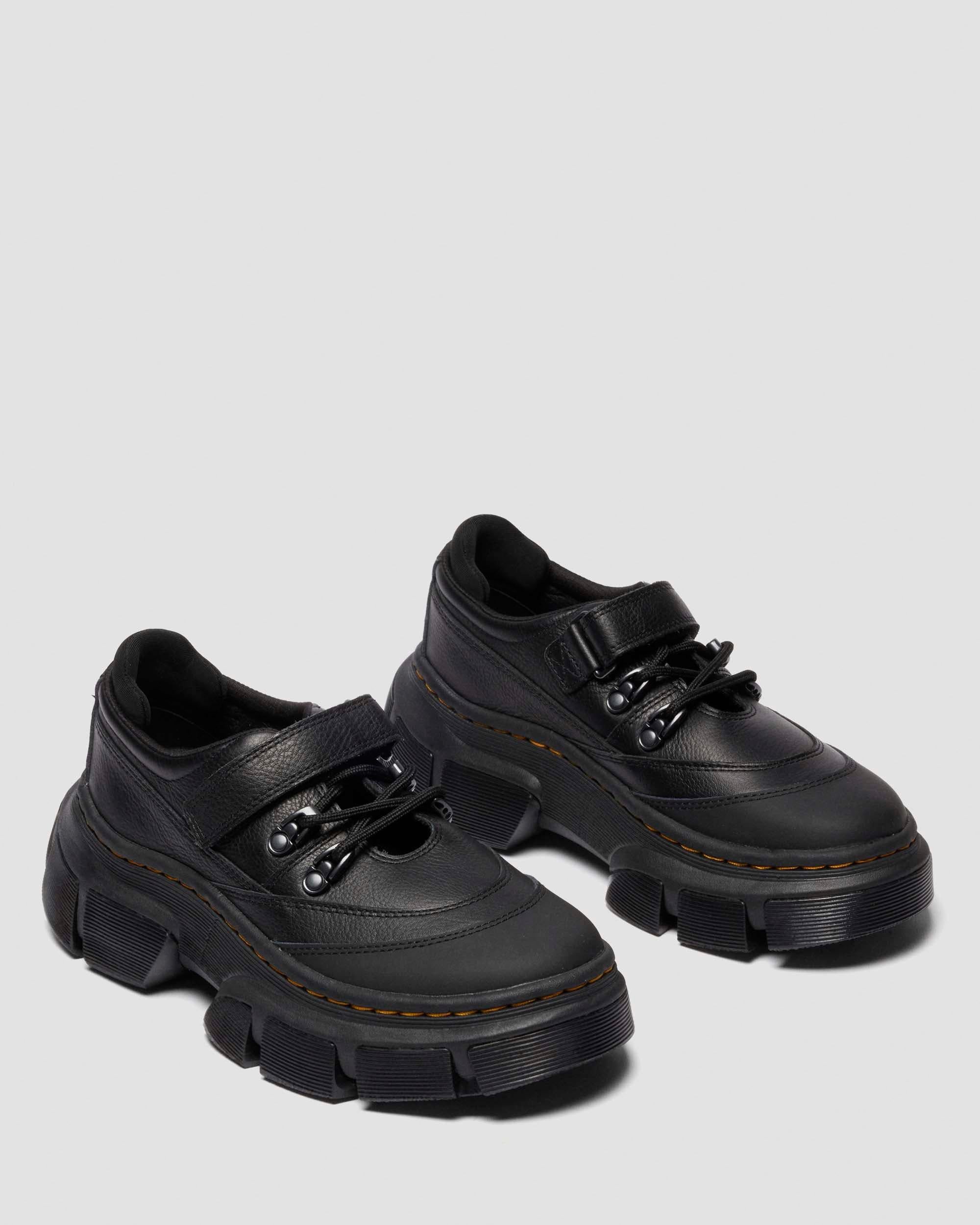 A bolder build. The DMXL Mary Jane steps into new territory with tougher detailing and easy wearability. With a combination of supple Virginia leather, Rubberised leather, durable Neoprene and Flat Stretch PU for a structure that's strong but flexible. The upper has a branded velcro strap, tonal stitching and cord lace. And the exaggerated lightweight DMXL sole features classic grooving and our signature yellow welt stitching. Material Virginia is a soft pebbled leather that’s supple right out the box. Rubberised leather is a PU-coated suede with a protective finish that’s tactile and wet weather-ready. Care Instructions Clean away dirt using a damp cloth and allow to dry, then apply Dr.Martens Wonder Balsam to Virginia Leather, add to shoes using the sponge applicator supplied with the product. Construction Cemented - the sole is cemented to the upper, a durable and flexible construction for all day comfort. Product code 42060001 Gifts For All