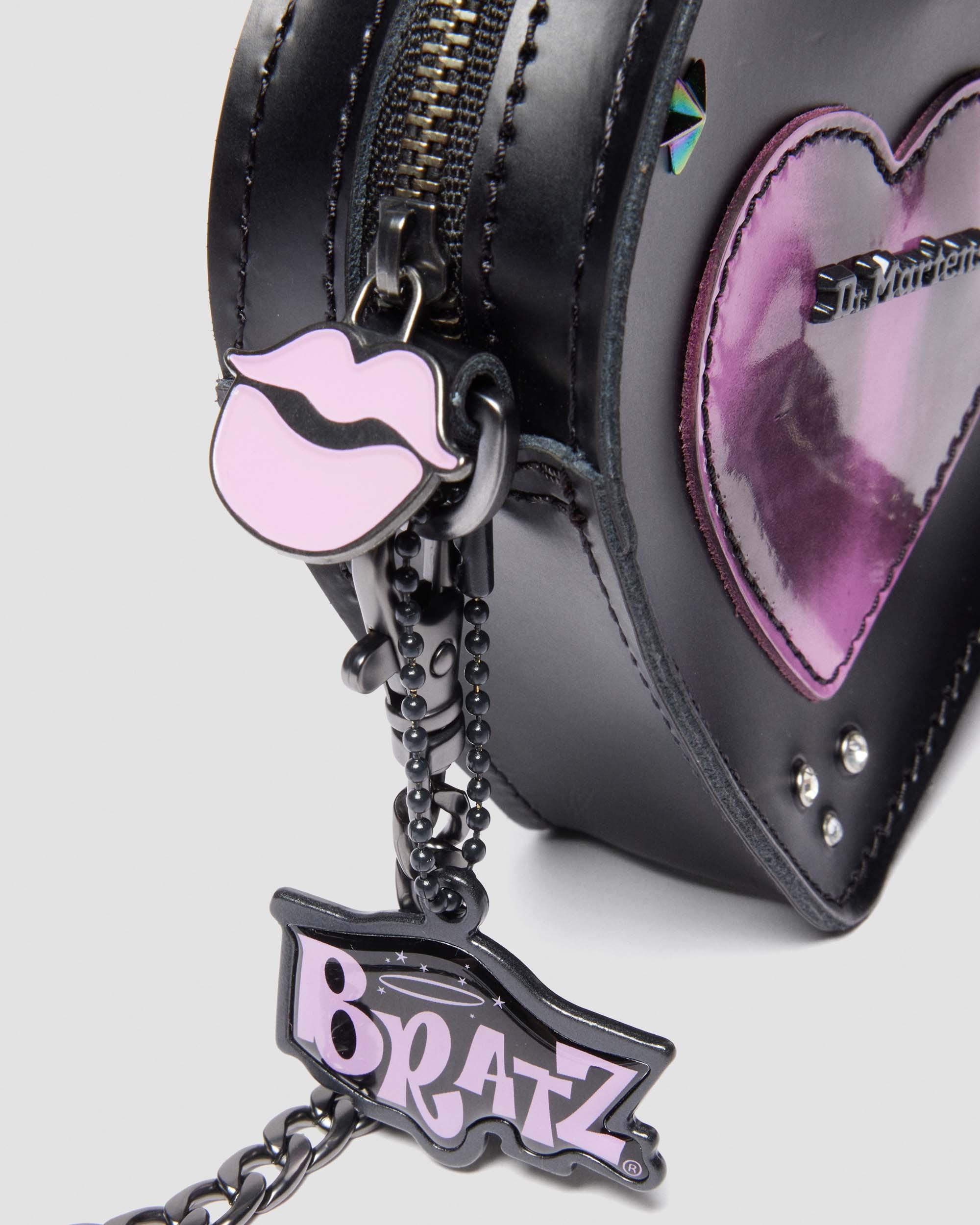 Don’t theorize - accessorize. This Micro Heart Bag may be small, but it’s big enough to hold your passion for fashion. The heart-shaped bag is crafted from black Kiev and purple Arcadia leather, finished with diamante detailing and studded accents. Mix and match with two different crossbody straps – a chain strap and a Bratz purple webbing strap. The zip-up bag is finished with a Bratz dog tag charm and Dr. Martens hardware. Material Kiev - PU Coated Version of our classic Smooth leather. Arcadia - Hi Shine Classic 2 tone rub off leather - the 2 tone effect is created in the final shoeroom treatment to reveal contrast colour particulary in toe area. Care Instructions Wipe away dirt using a damp cloth. We do not recommend the use of leather cleaners, as it could damage the finish. Product code 42384001 Gifts For All