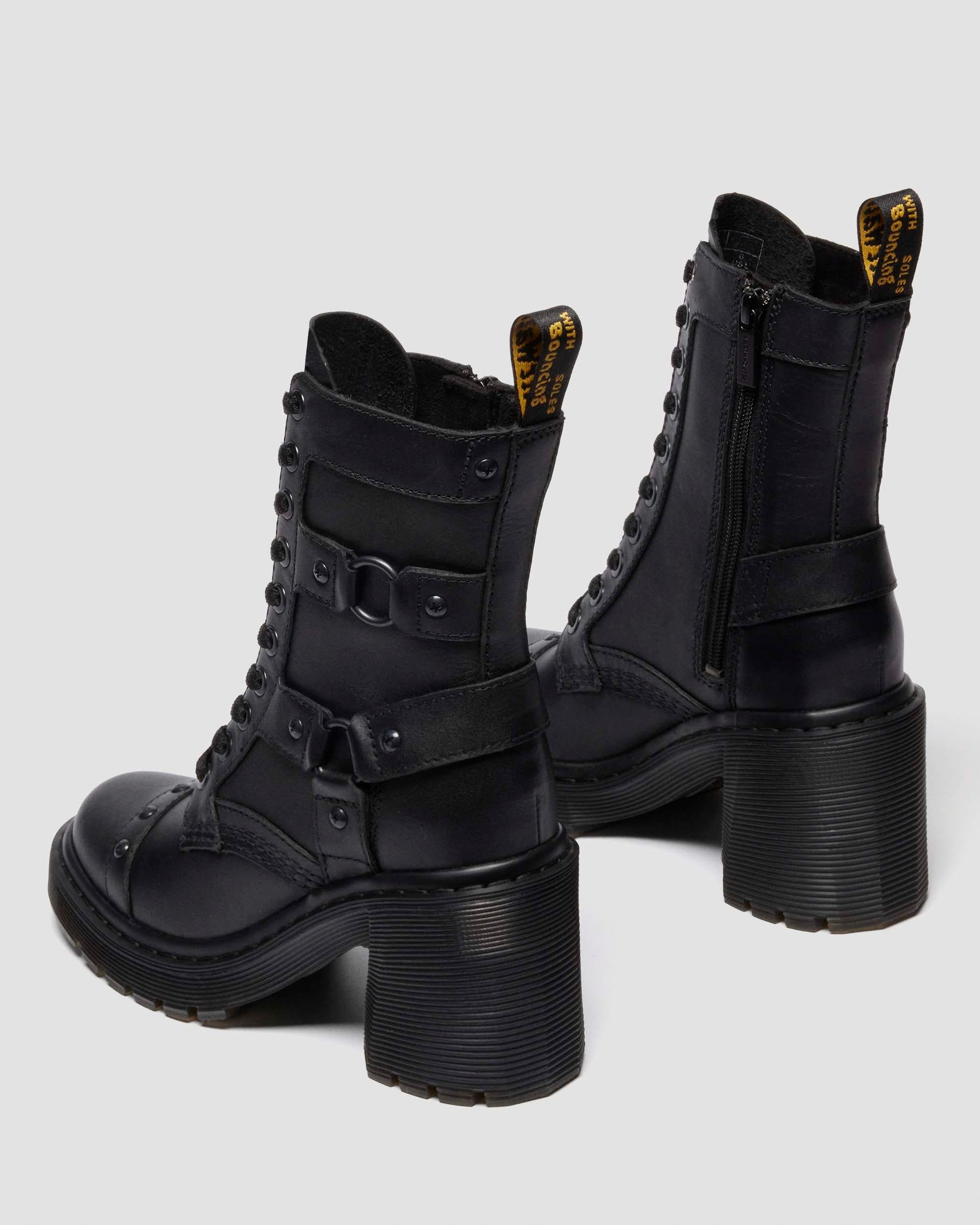 Harness your edge – at a height. The Chesney Harness 10-eye boot is reworked with a strap-led update. Soft and smooth, Sendal leather forms the foundation of the boot. Crafted to stay true to the Chesney silhouette, we accessorized it with antique black cross rivet hardware on harness detailing. With a side zip for easy fastening, our scripted heel loop sits at the top of the boot, and our signature yellow faux stitching lines the welt. The boot is finished with a black cemented Ardern sole – heeled and grooved for maximum impact with every step. Material Sendal is a high quality, naturally soft leather that’s smooth and hardwearing. Care Instructions Wipe away dirt using a damp cloth. Apply a neutral or correct colored wax based shoe polish. Buff with a Dr. Martens Shoe Brush to restore shine as desired. Construction Cemented - the sole is cemented to the upper, a durable and flexible construction for all day comfort. Product code 42613001 Trending Styles