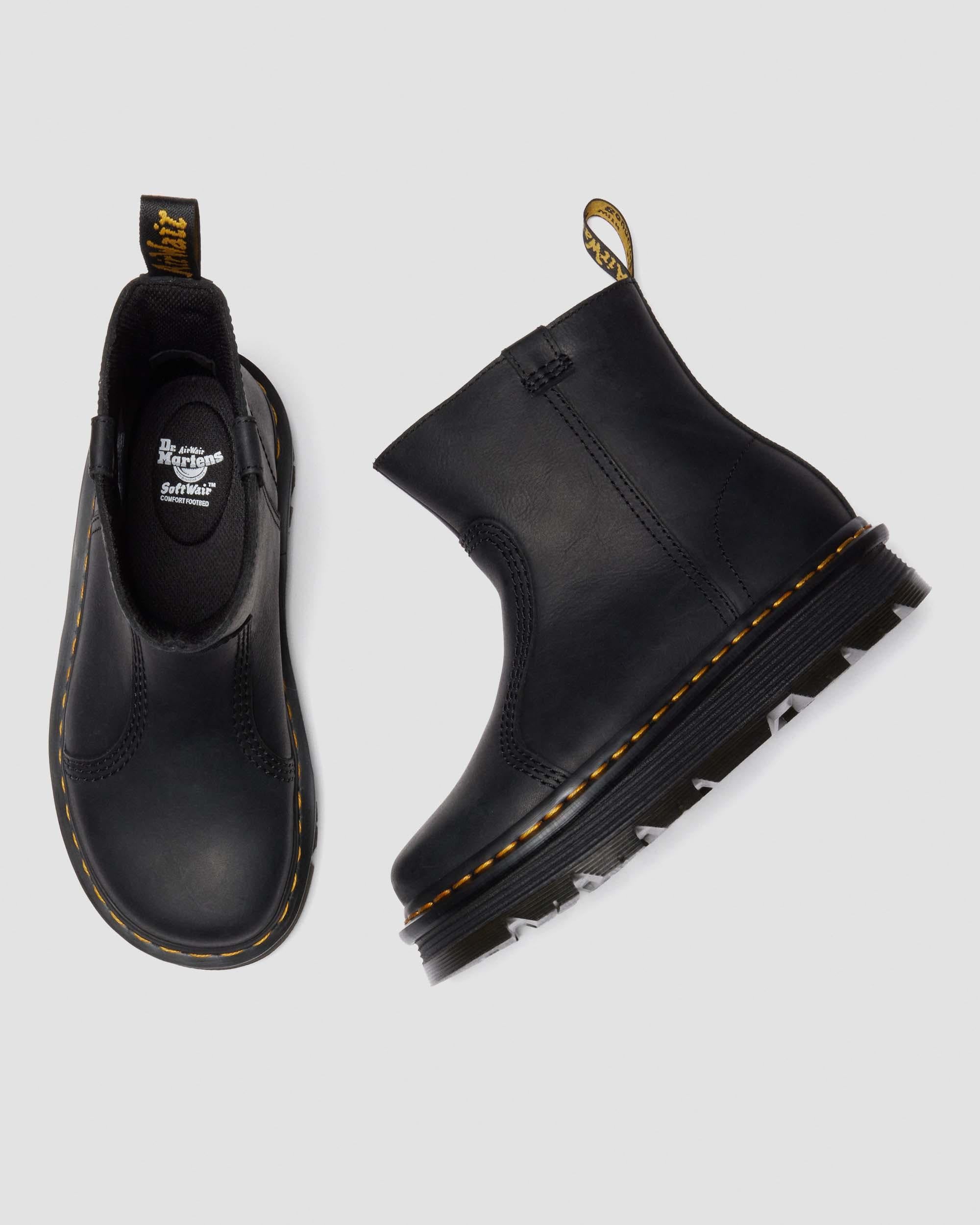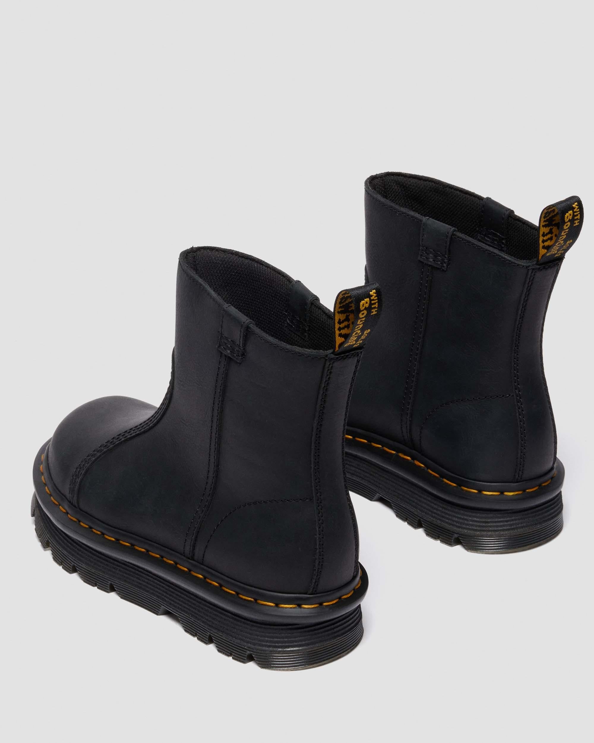 Easy comfort, easy go. Our new Zebzag Rigger boot has a silhouette inspired by industrial footwear — rebuilt for easy living and even easier styling. Made with rugged Wyoming leather with dual pull tabs on either side — so you can pull on and head out. The ergonomic Zebzag sole combines lightweight EVA and durable PVC to give your feet an easy ride without limiting your destination. And our SoftWair footbed adds extra cushioning. The sole boasts distinctive DM's signatures, with a bold tread pattern, exaggerated grooving, and our unmistakable yellow welt stitching. Material Wyoming - a slighty milled, snuffed leather, with a medium to heavy pull-up and a strong oily surface. Care Instructions Wipe away dirt using a damp cloth. Apply a neutral or correct colored wax based shoe polish. Construction Net Fit is a type of welted construction with a sole stuck on and heat sealed via the gasket Product code 42662001 Trending Styles