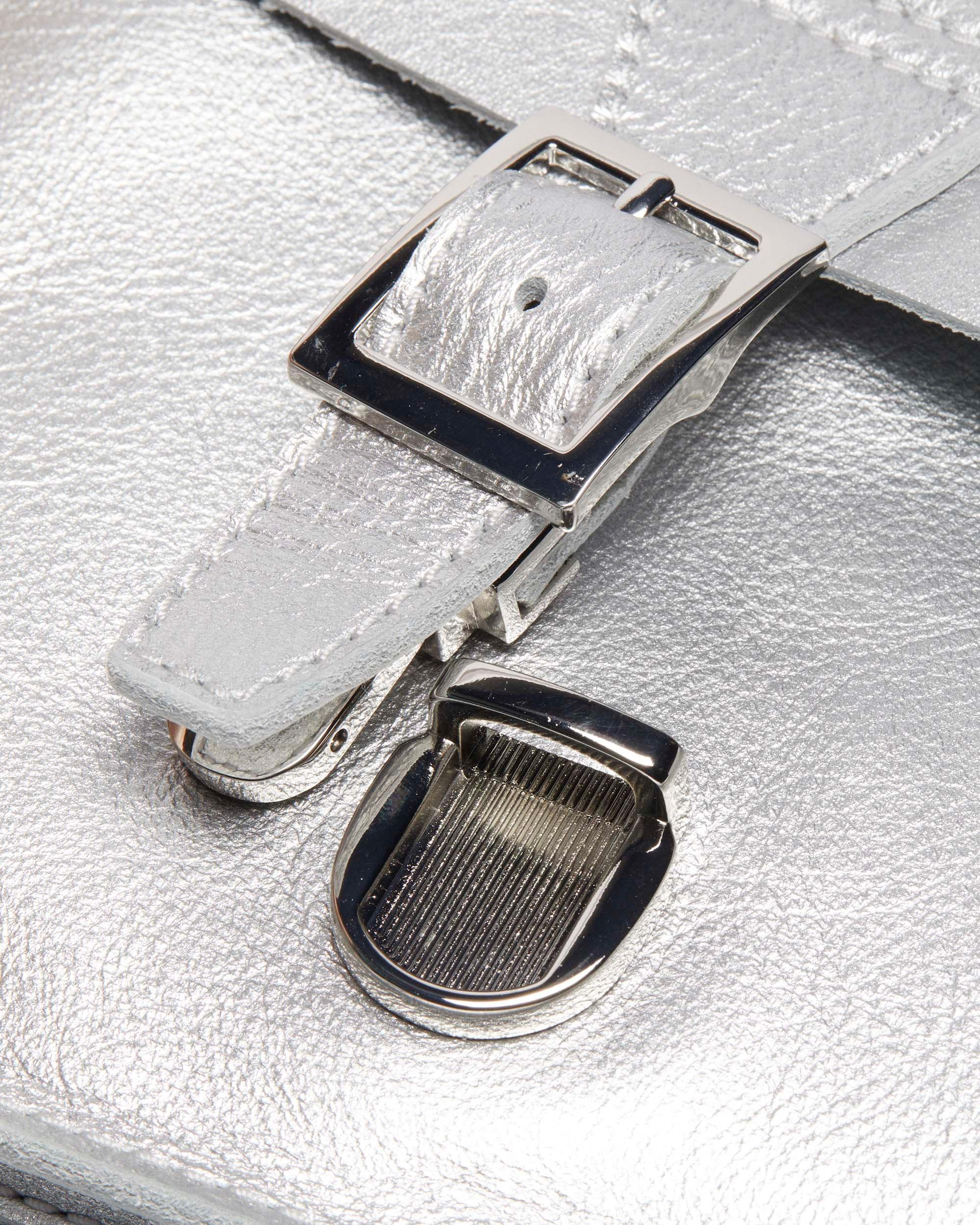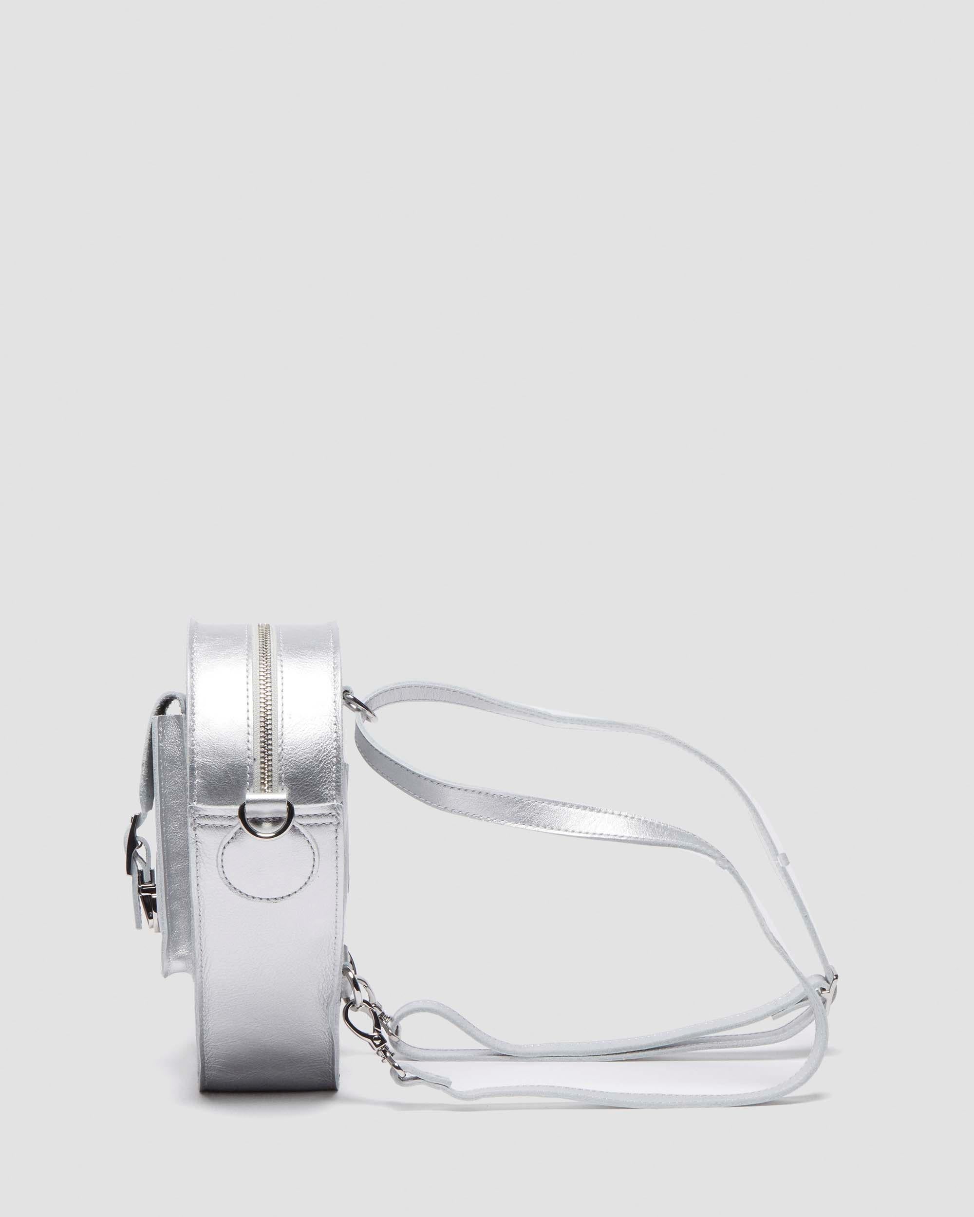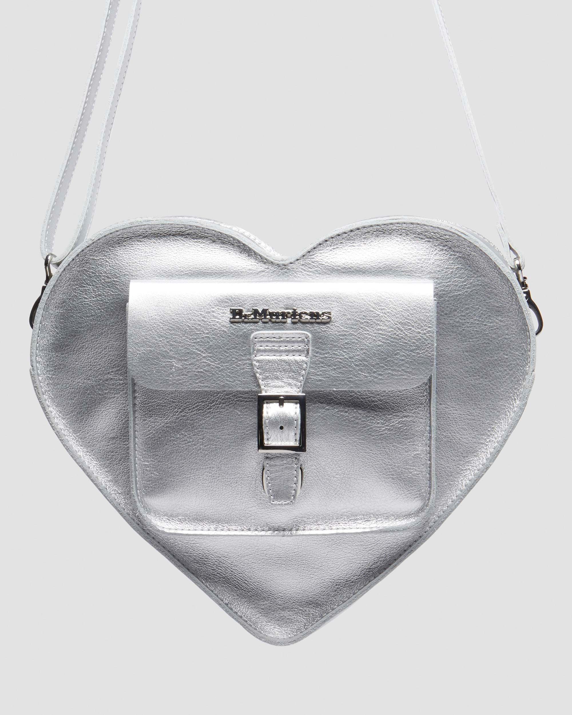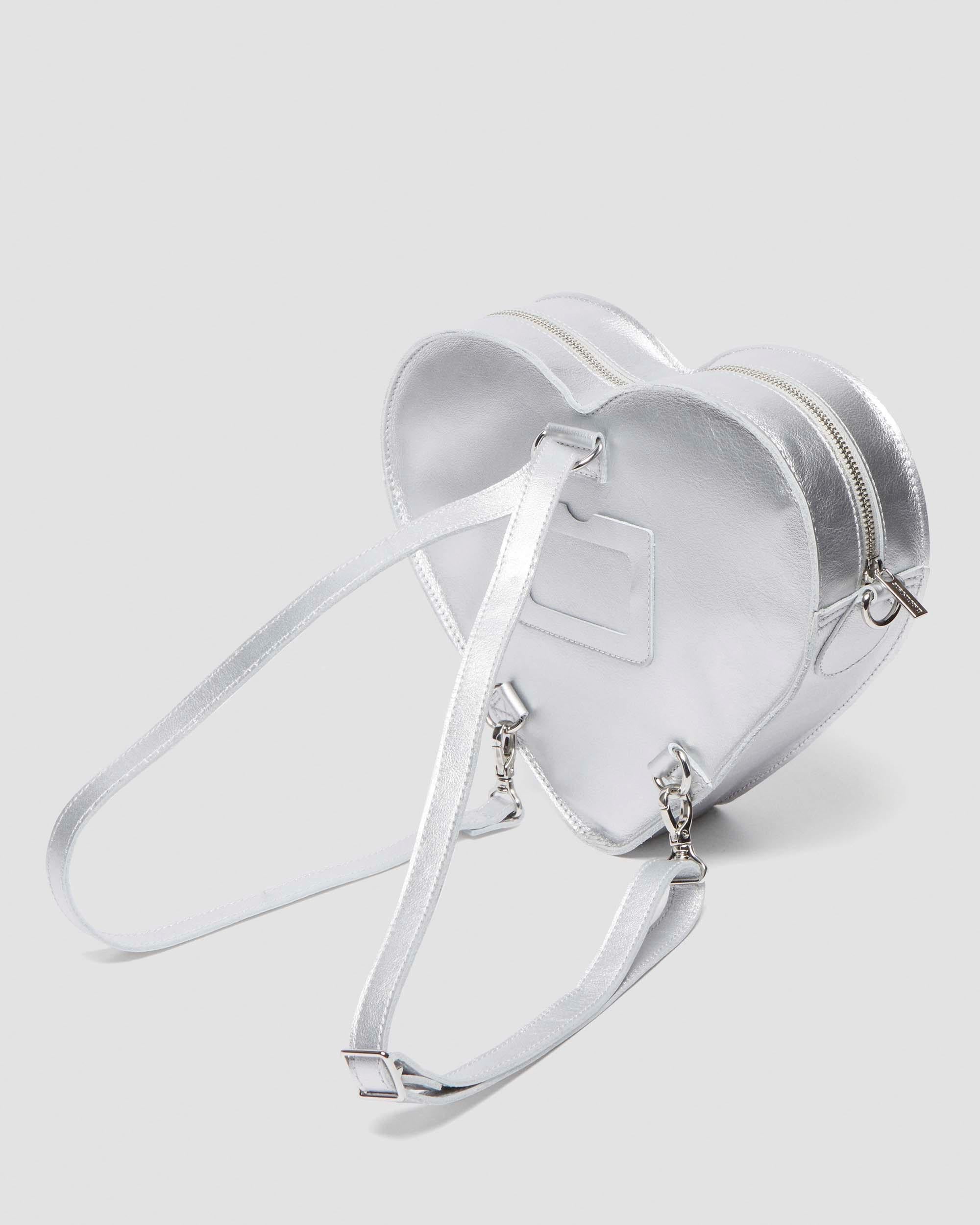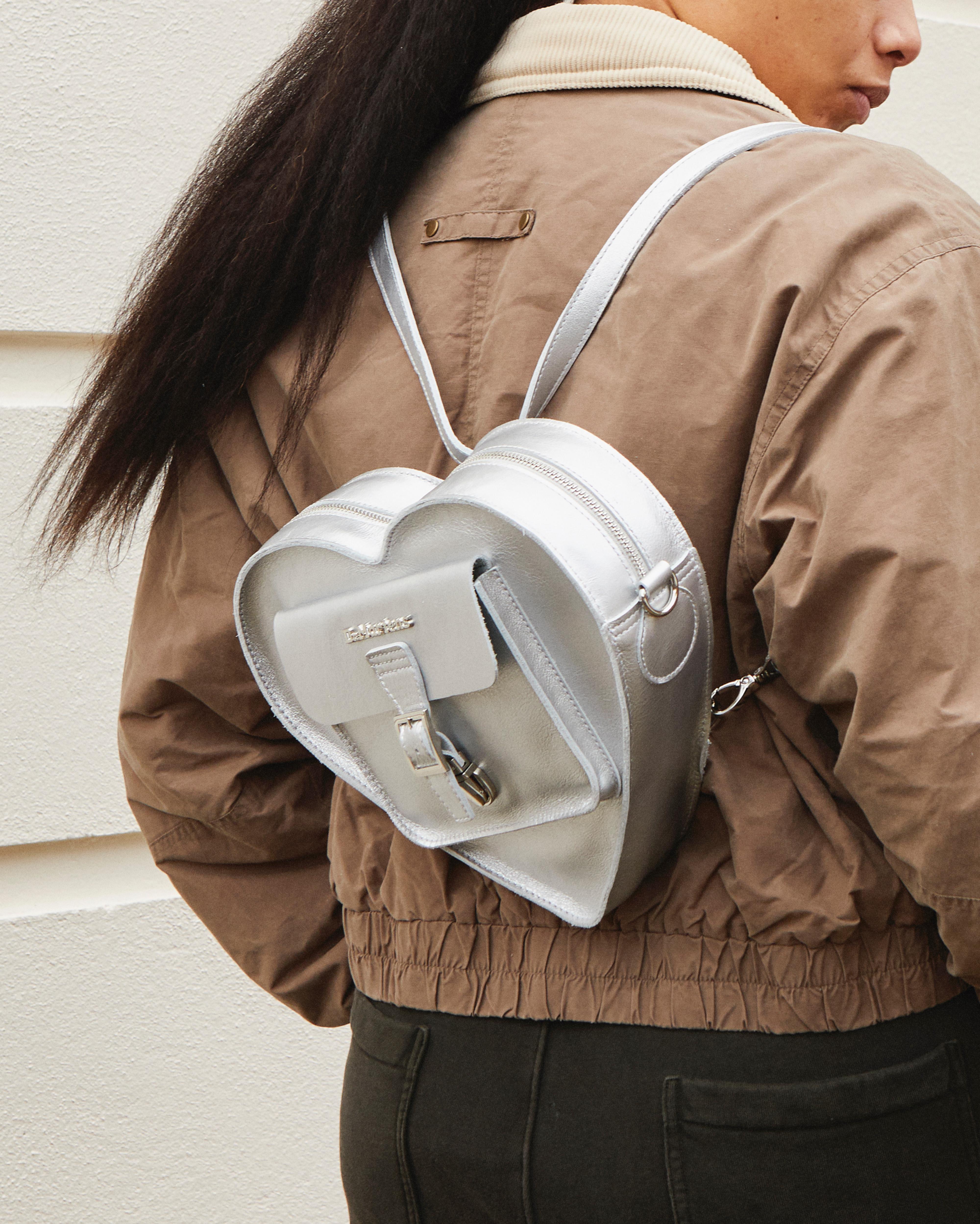 A party standout. The Heart backpack is constructed from milled metallic leather with a natural texture and statement shine. Fitted with matching gunmetal hardware, it has adjustable webbing straps inspired by our classic heel loops. The zip compartment keeps essentials secure and the lettering on the front marks it as DM’s. Milled Metallic is a naturally tumbled soft Nappa leather with a statement metallic finish. Product code AD015040 Men's Sale