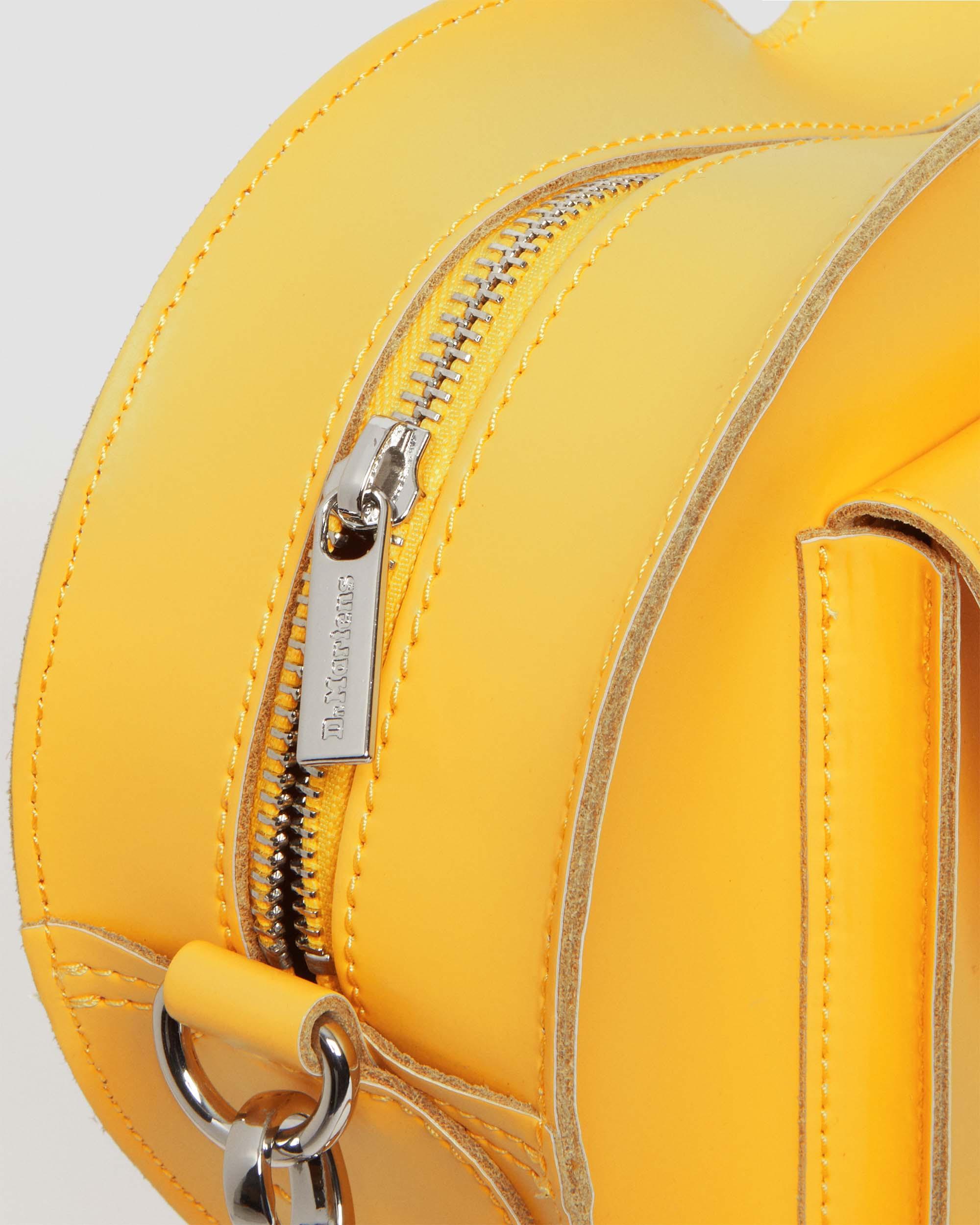 A vibrant Heart bag. Toughened up to DM's levels. Our crowd-favourite silhouette returns in rugged Kiev leather — fitted with a front zip pocket to keep essentials secure. One adjustable strap allows you to wear as a bag or backpack. Kiev is a hardwearing, rigid leather with a smooth surface and slight sheen Pocket and strap on black and white colors constructed from Patent leather Dimensions - 11 1/2 in. tall, 10 in. wide, 3 in. deep Material Kiev - A PU coated version of our classic Smooth leather. Care Instructions Wipe away dirt using a damp cloth. We do not recommend the use of leather cleaners, as it could damage the finish. Product code AD015703 Women's Bags